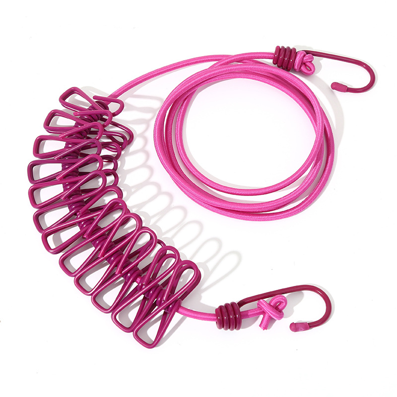 1310 带夹晾衣绳 旅行便携可伸缩防风晒衣绳 12个夹晾衣架晾衣绳