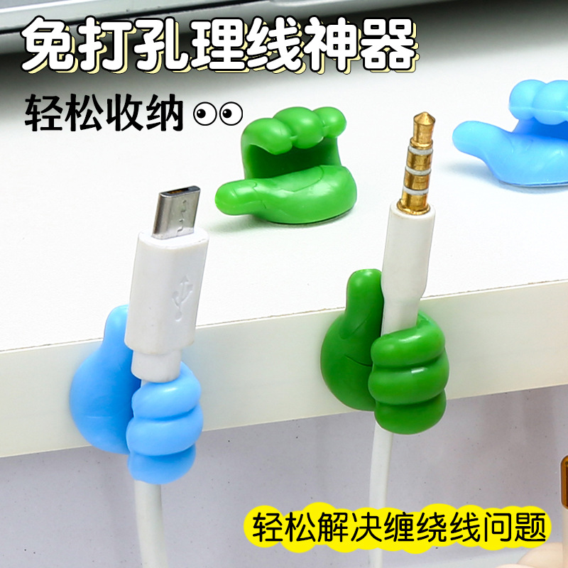 大拇指挂钩多功能数据线固定电线收纳强力粘胶免打孔集线器理线器