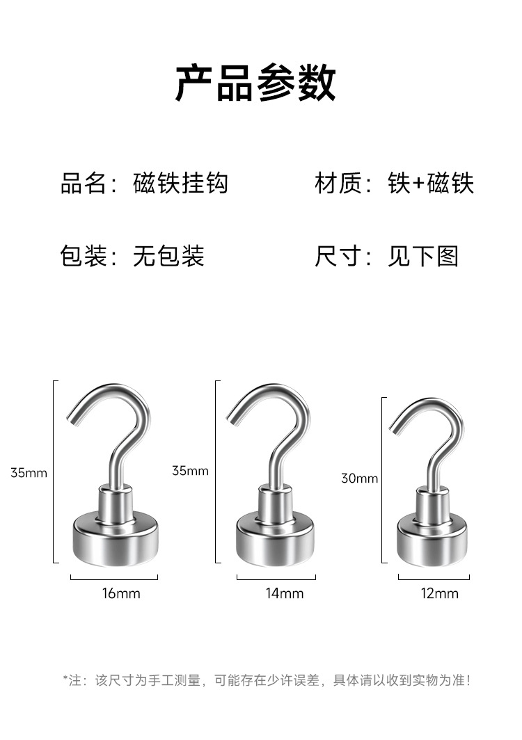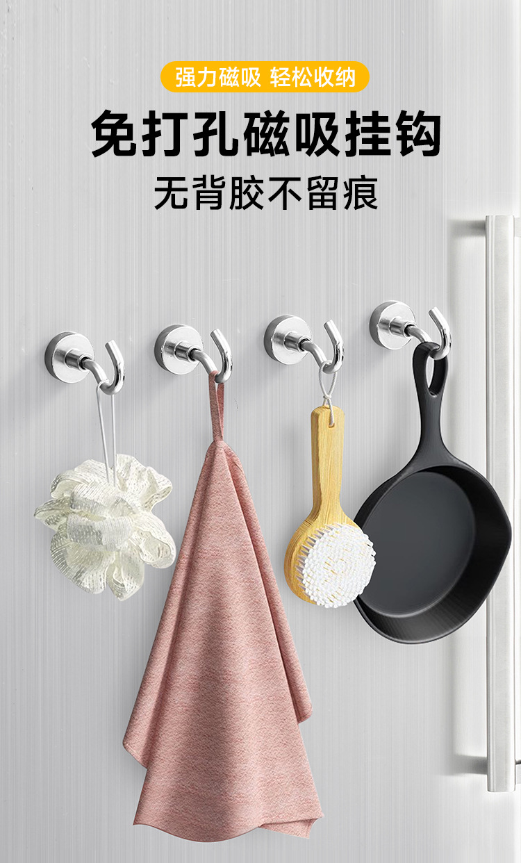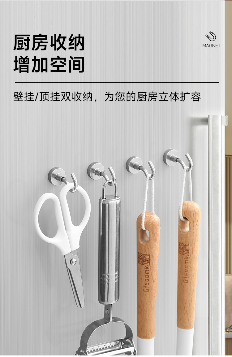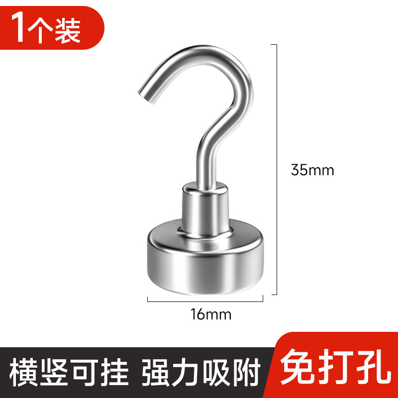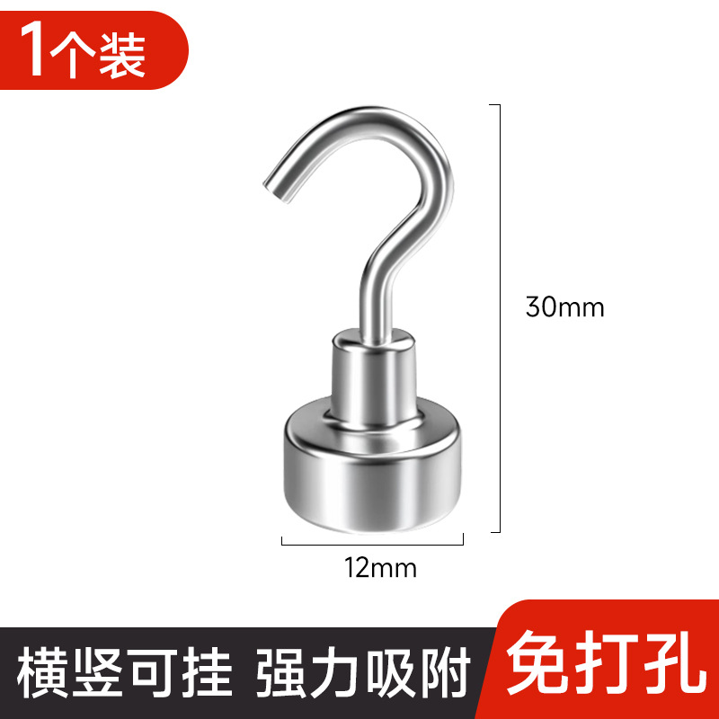 钕铁硼磁力挂钩厨房冰箱收纳无痕免打孔磁铁吸盘固定器强磁钩子