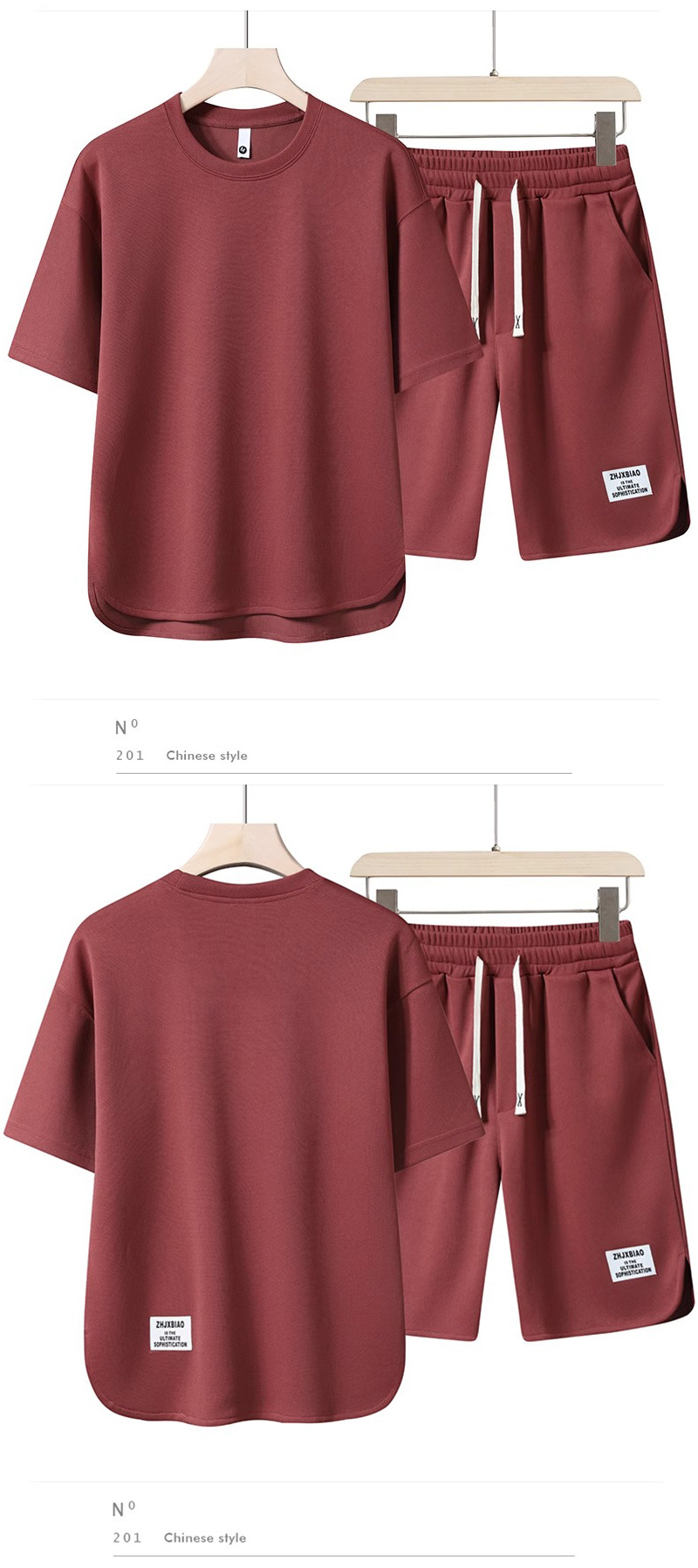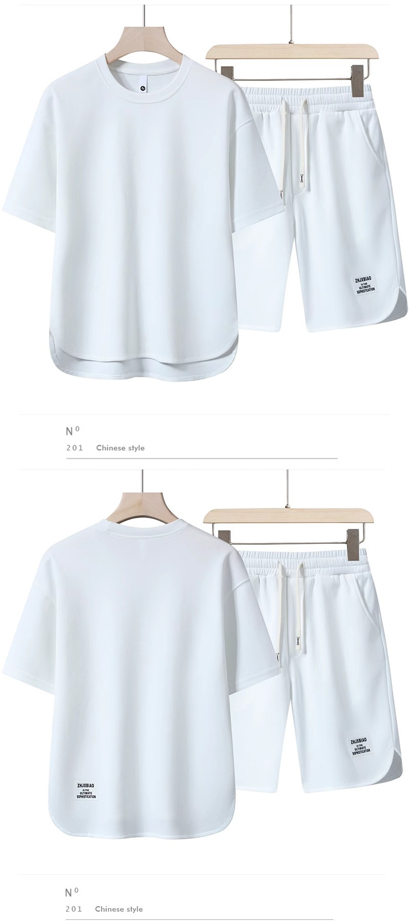 夏季男高端休闲运动套装青年宽松时尚百搭短裤圆领短袖T恤两件套