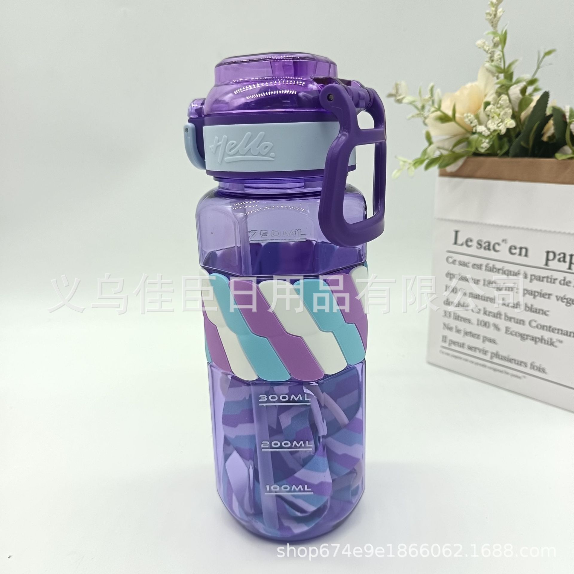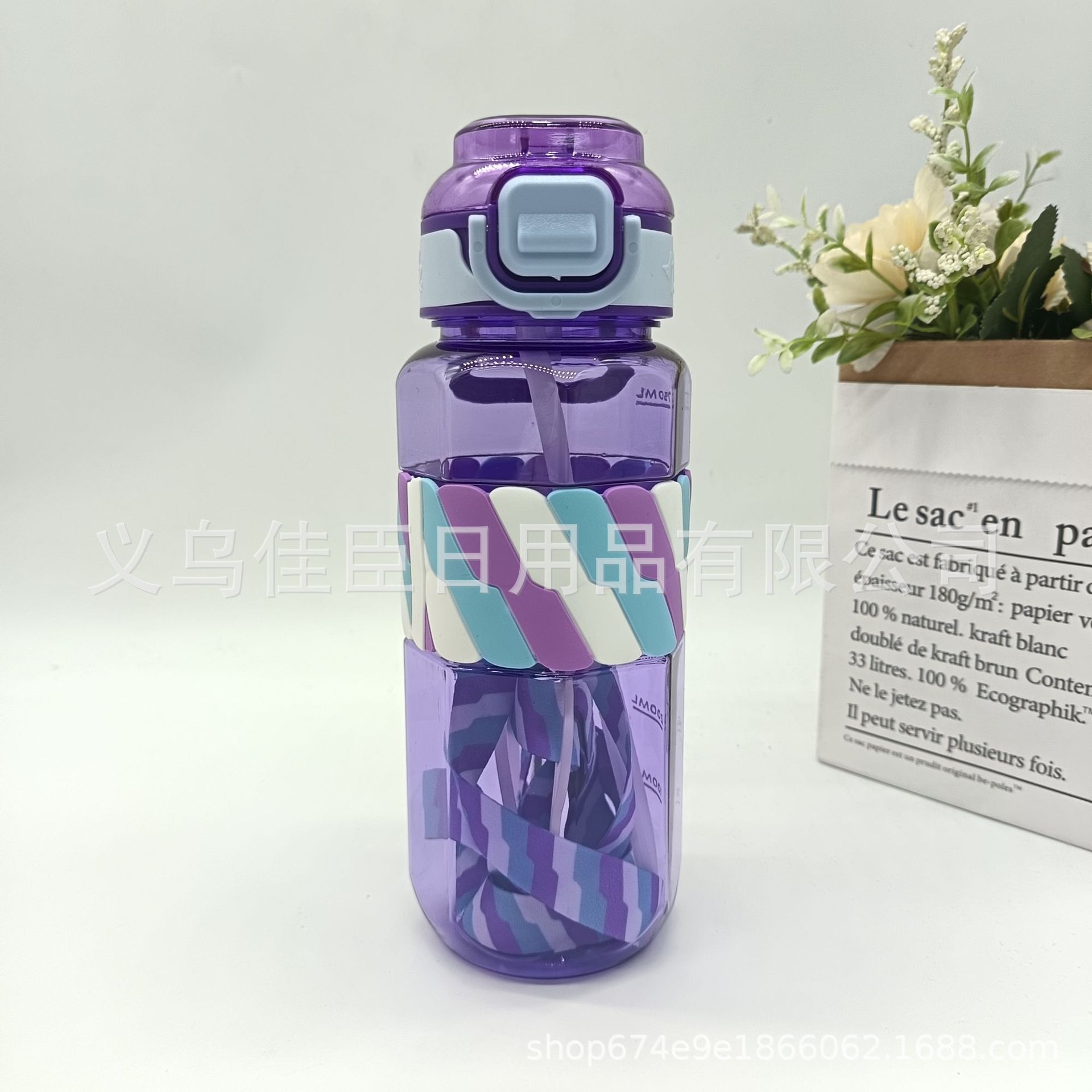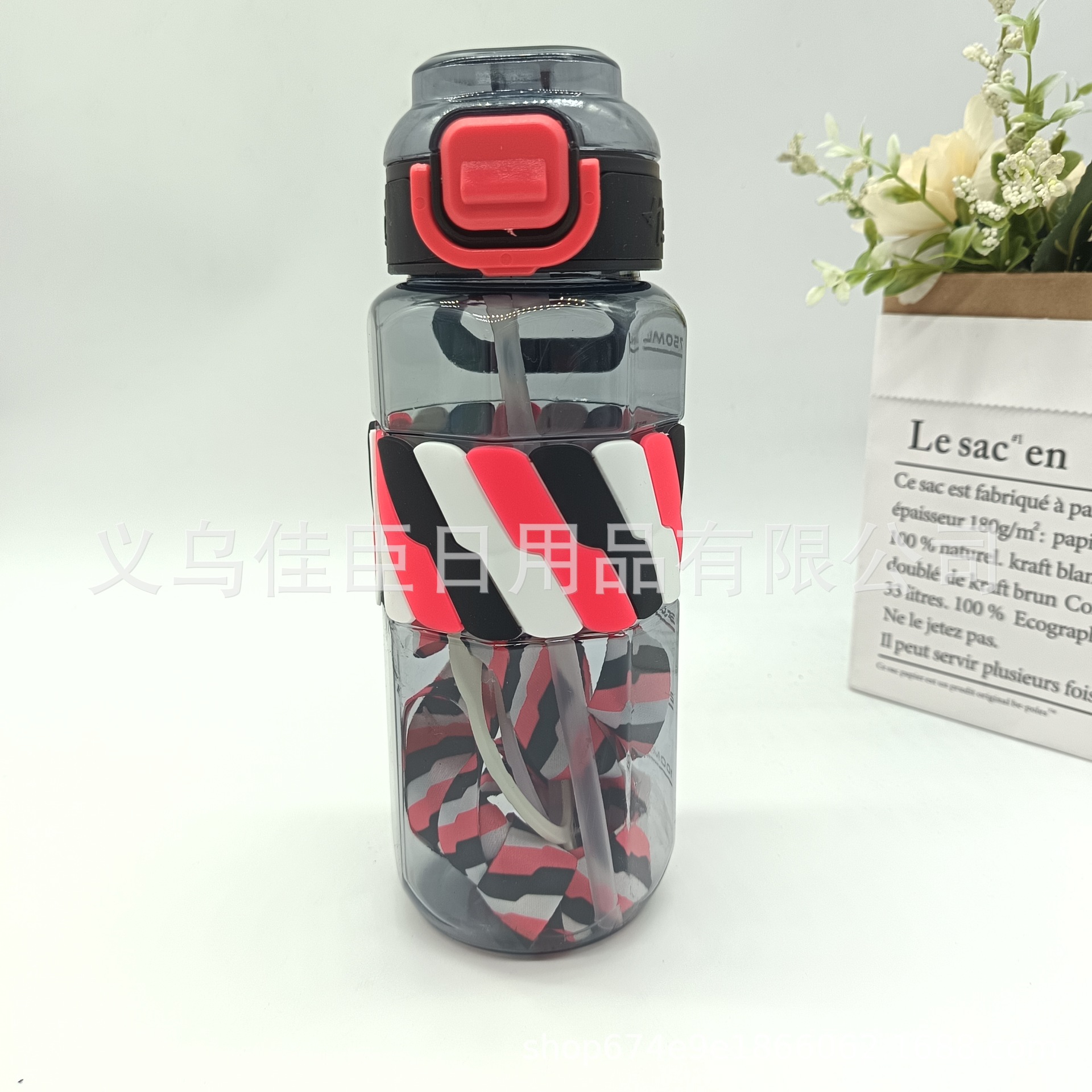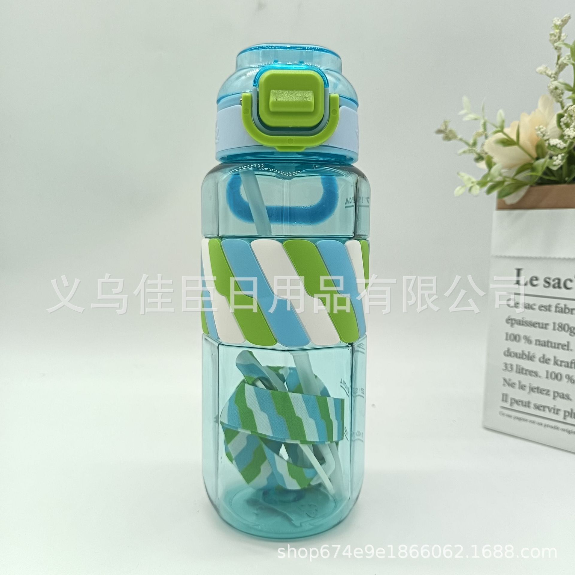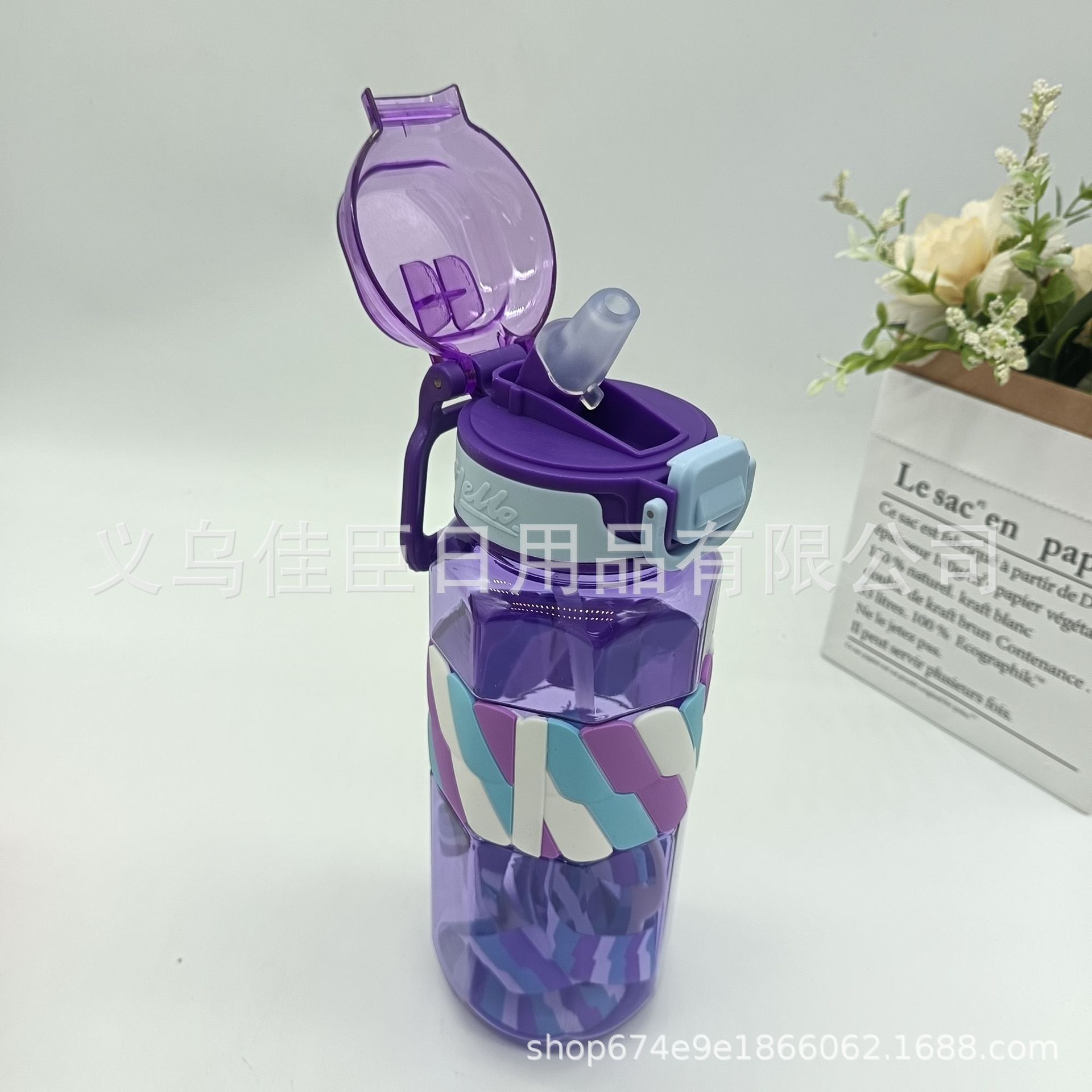 亚马逊夏季新款太空杯八角弹跳盖吸管杯塑料学生户外运动防摔水杯