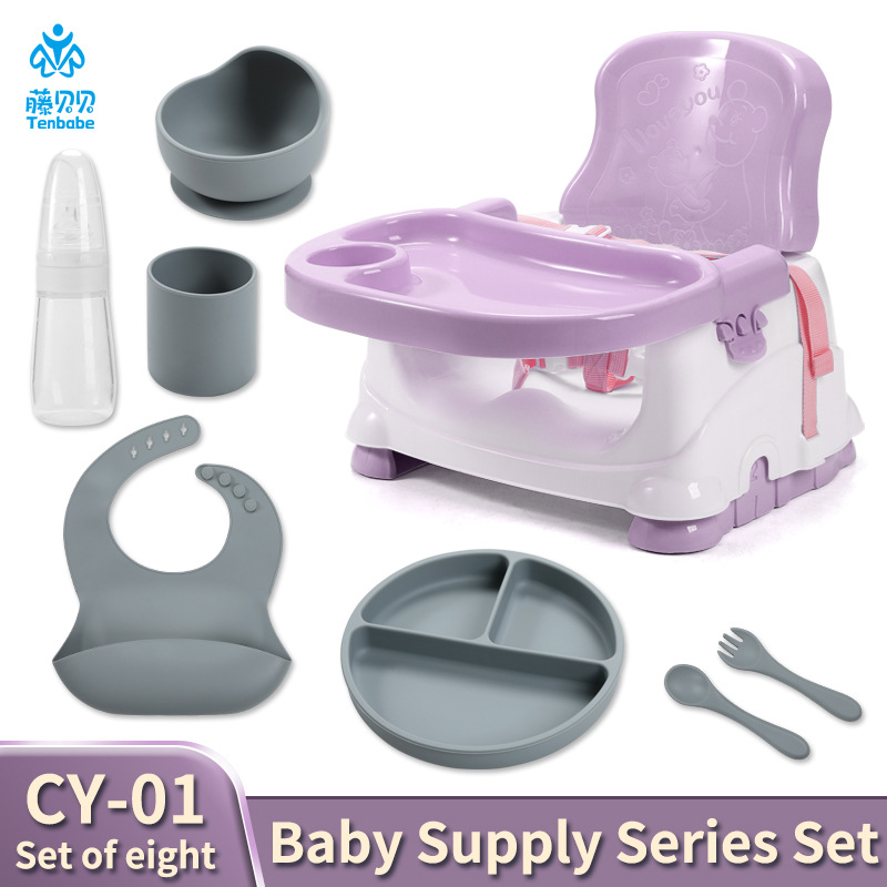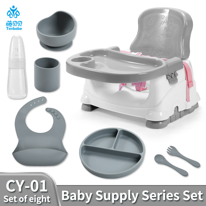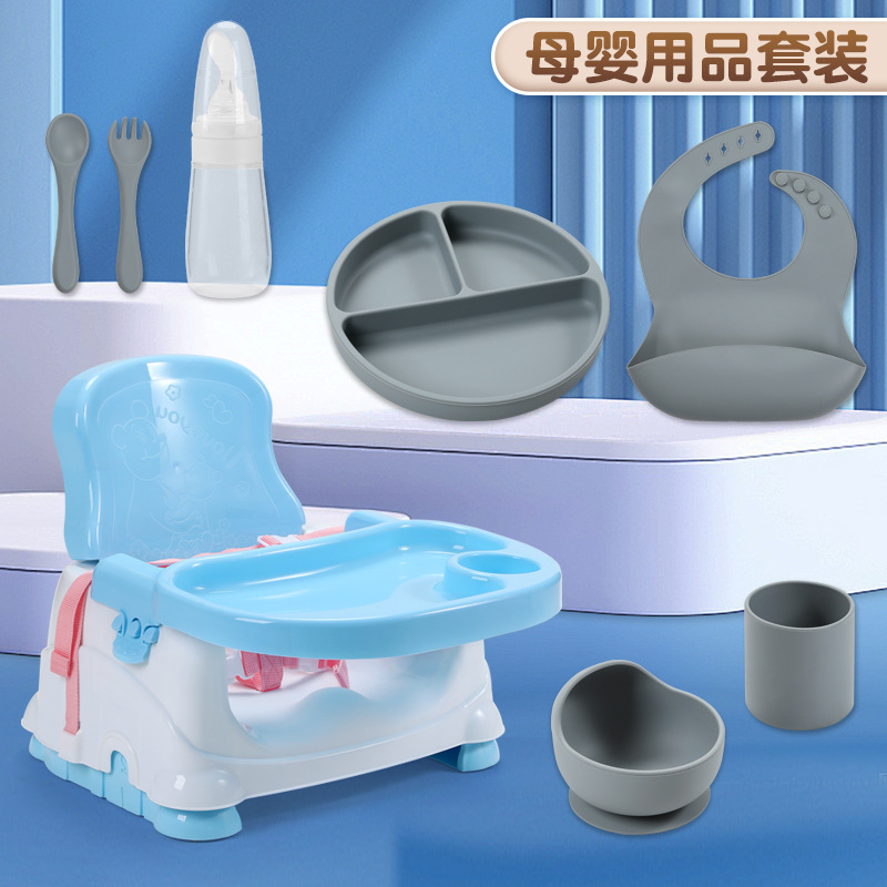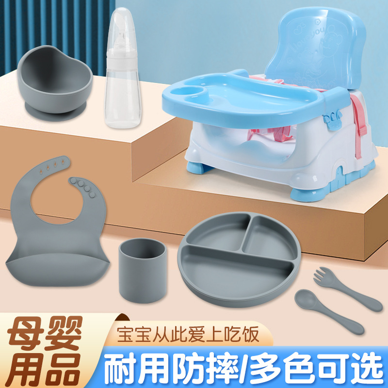 可折叠家用外出升降宝宝餐椅子跨境彩盒儿童餐具餐椅套装