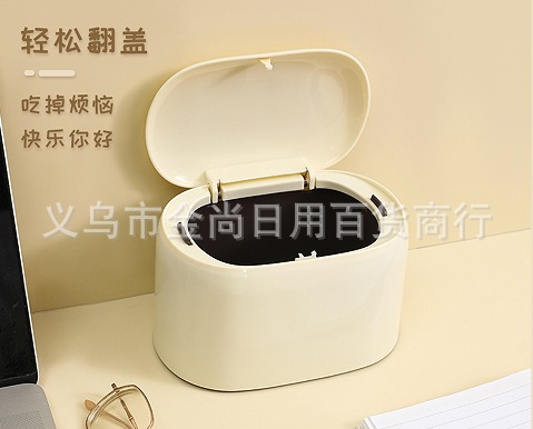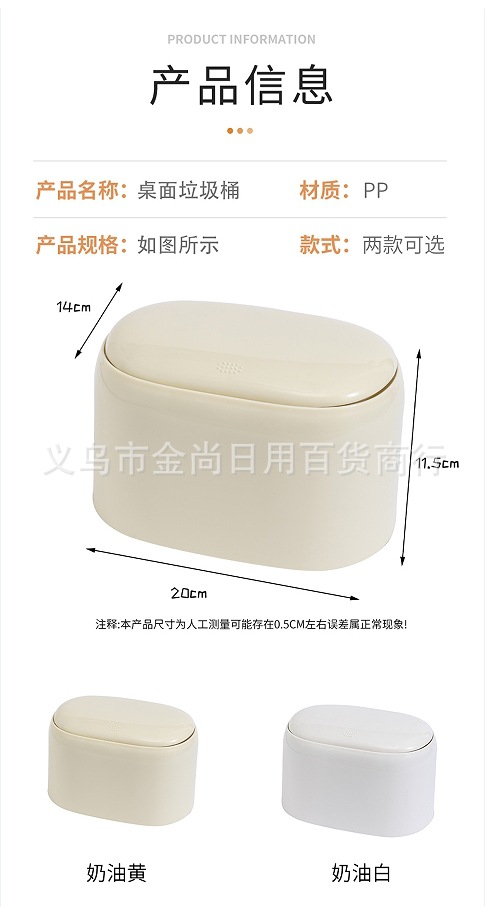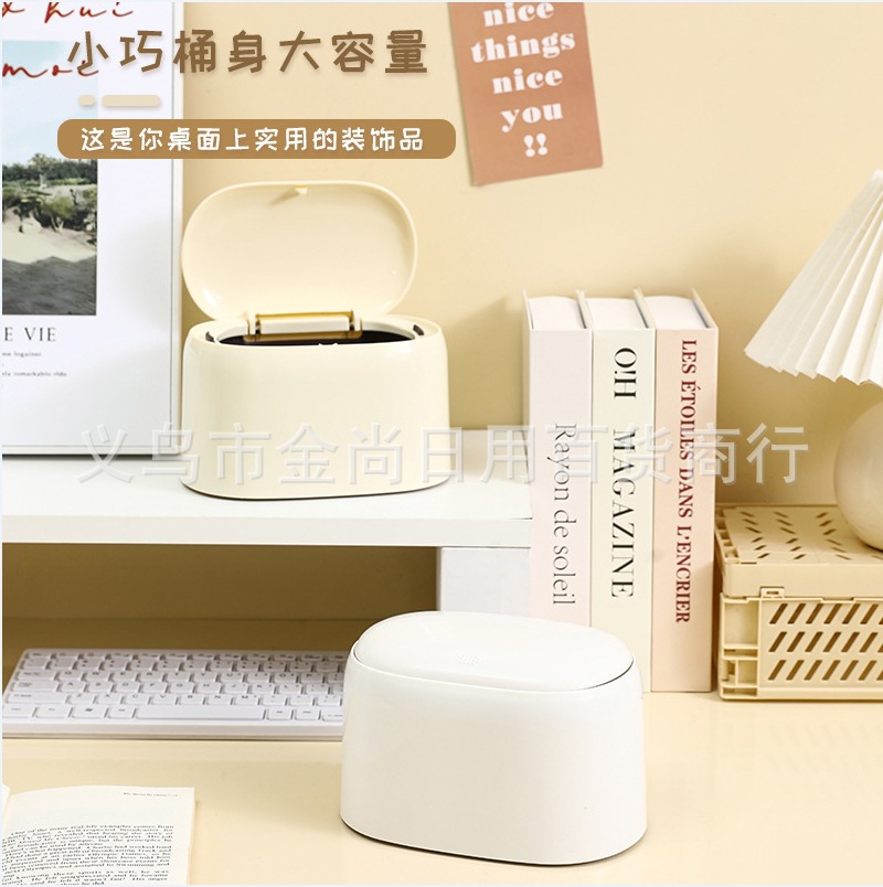 自主设计 奶油风桌面按压垃圾桶 高颜值家用台面办公室小是收纳桶