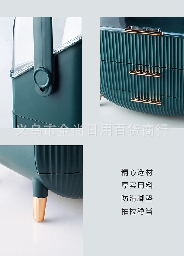 跨境手提轻奢风化妆品收纳盒HIPS+PS材质化妆品多层分类收纳盒
