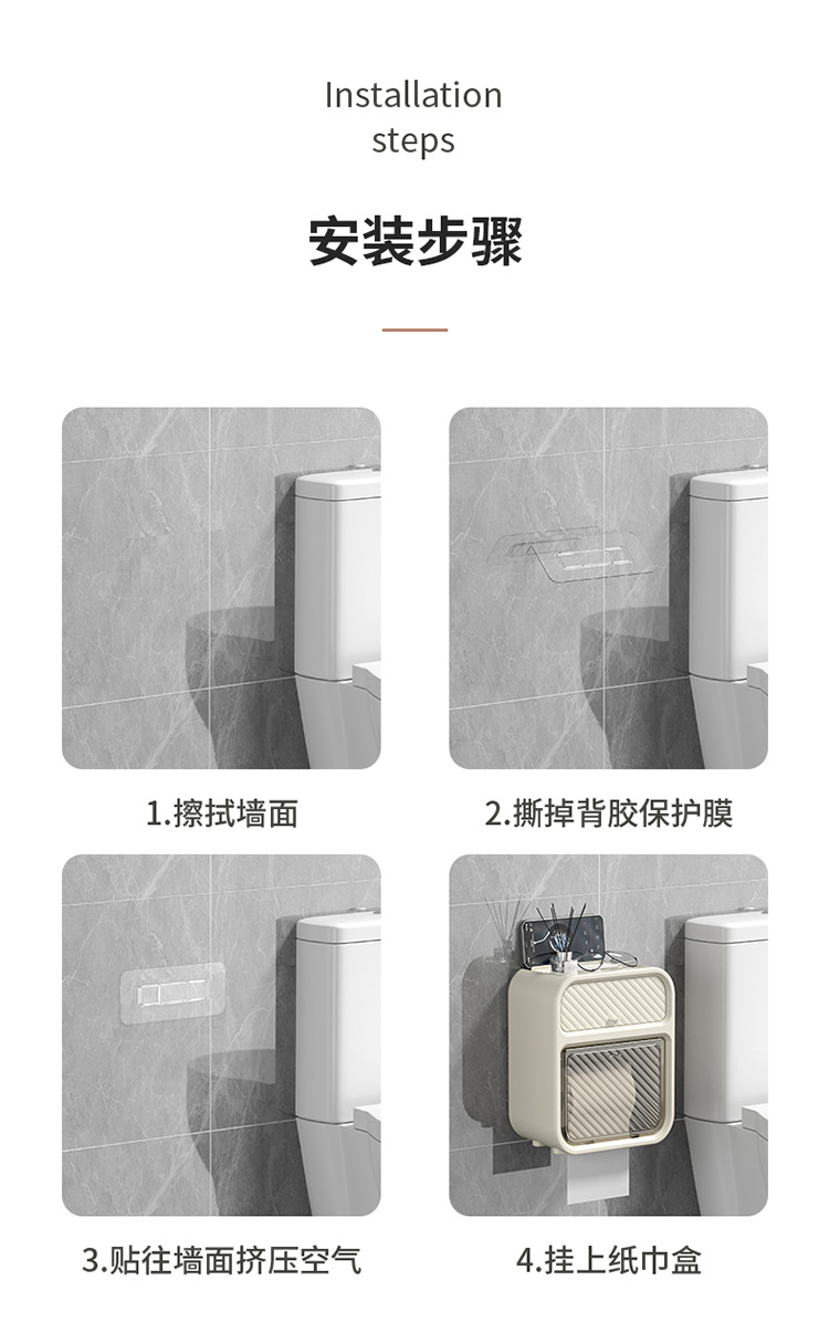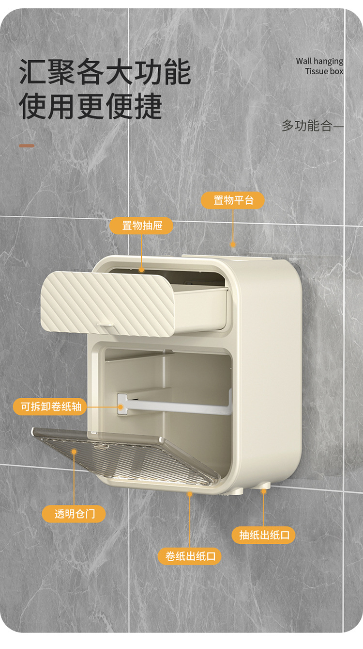 卫生间纸巾盒免打孔防水厕纸盒厕所壁挂式卷纸架抽纸卫生纸置物架