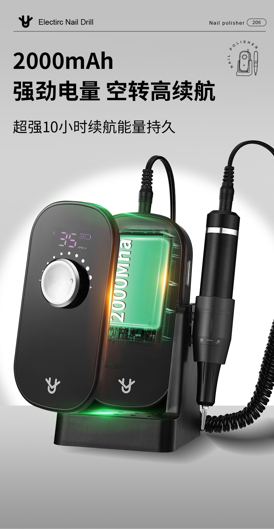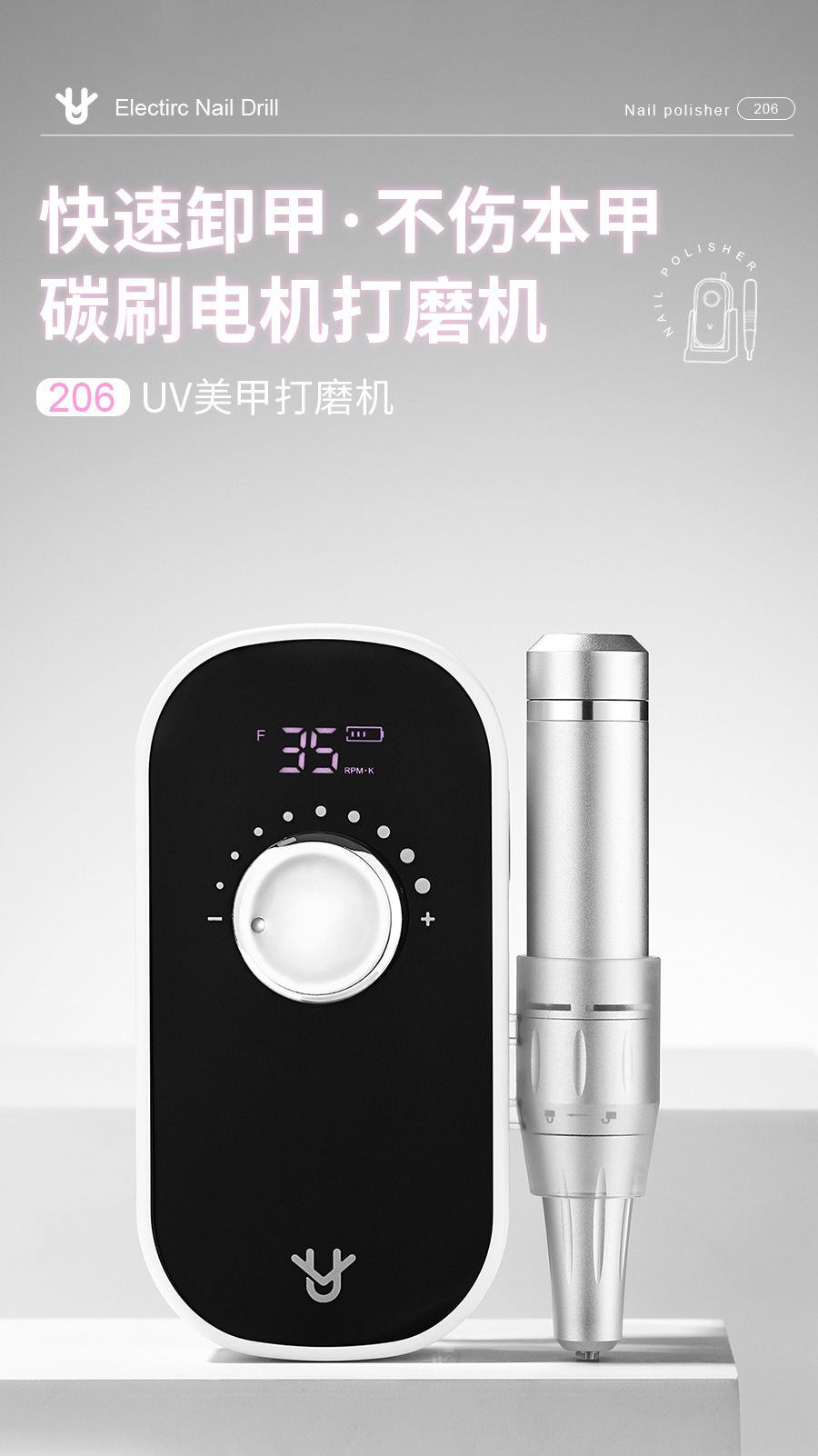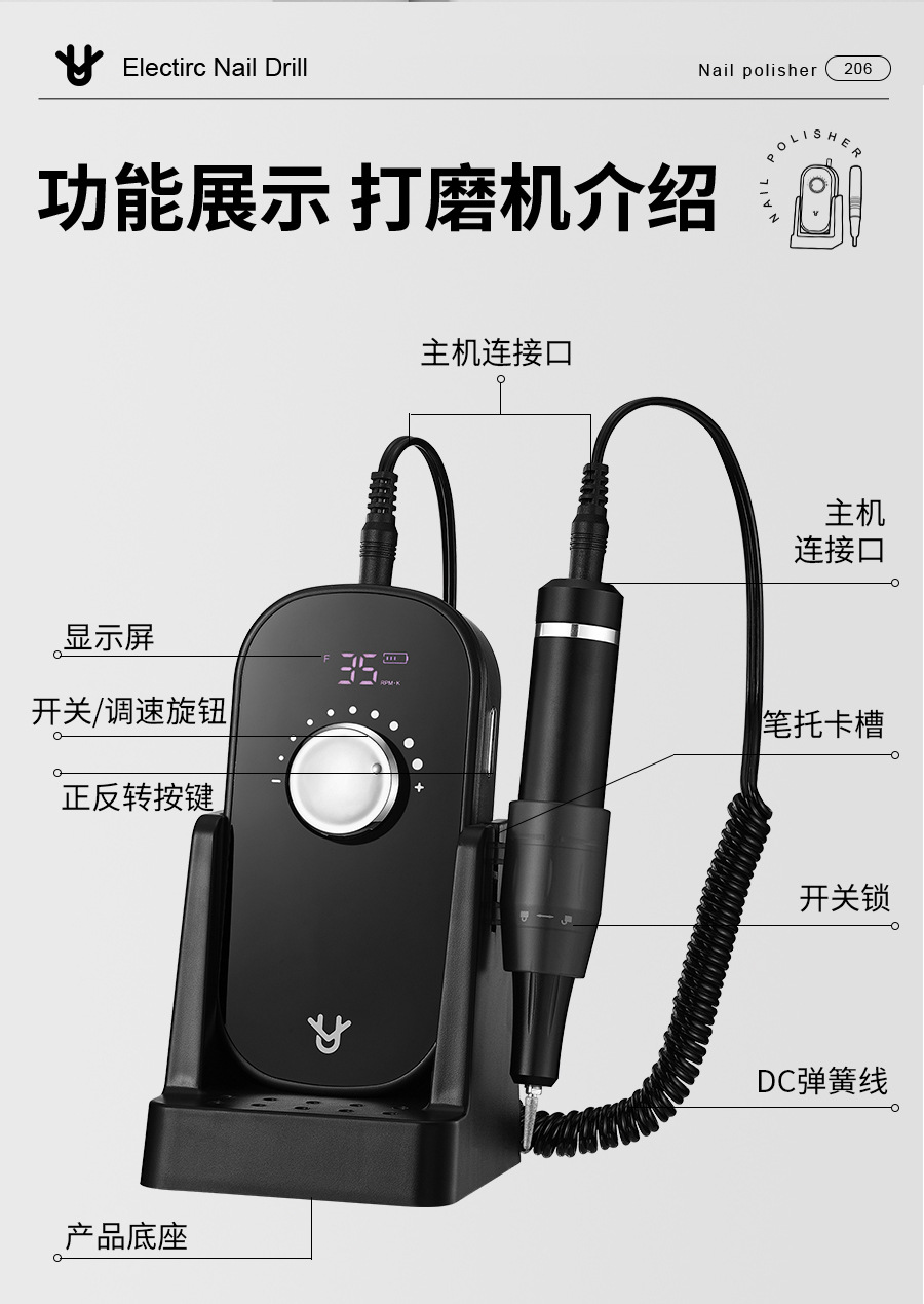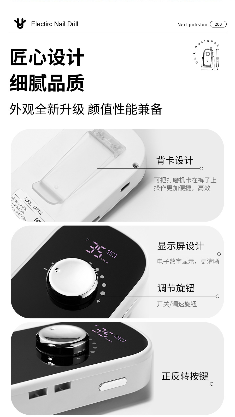 UV206美甲打磨机带底座充电磨甲卸甲美甲店跨境去死皮电动打磨机