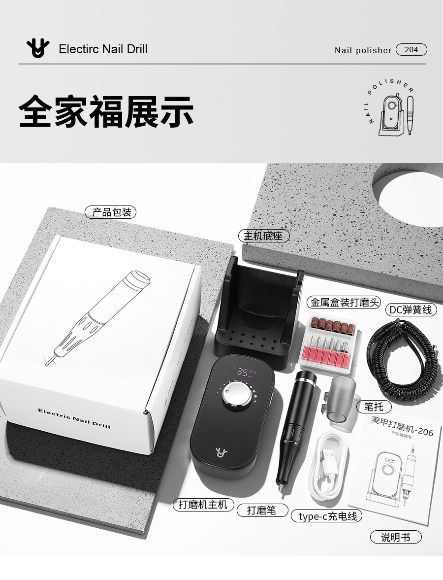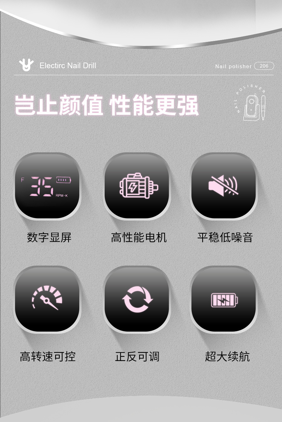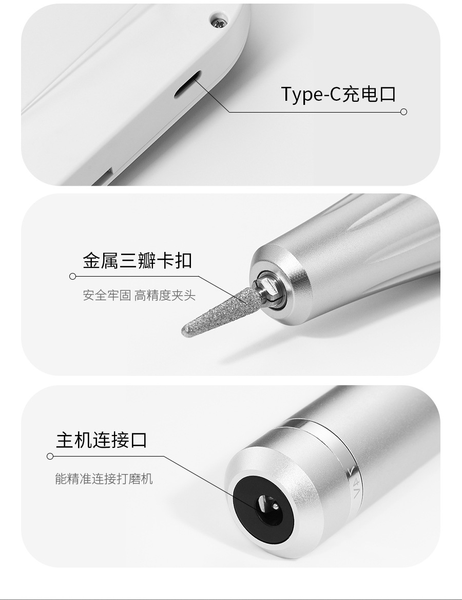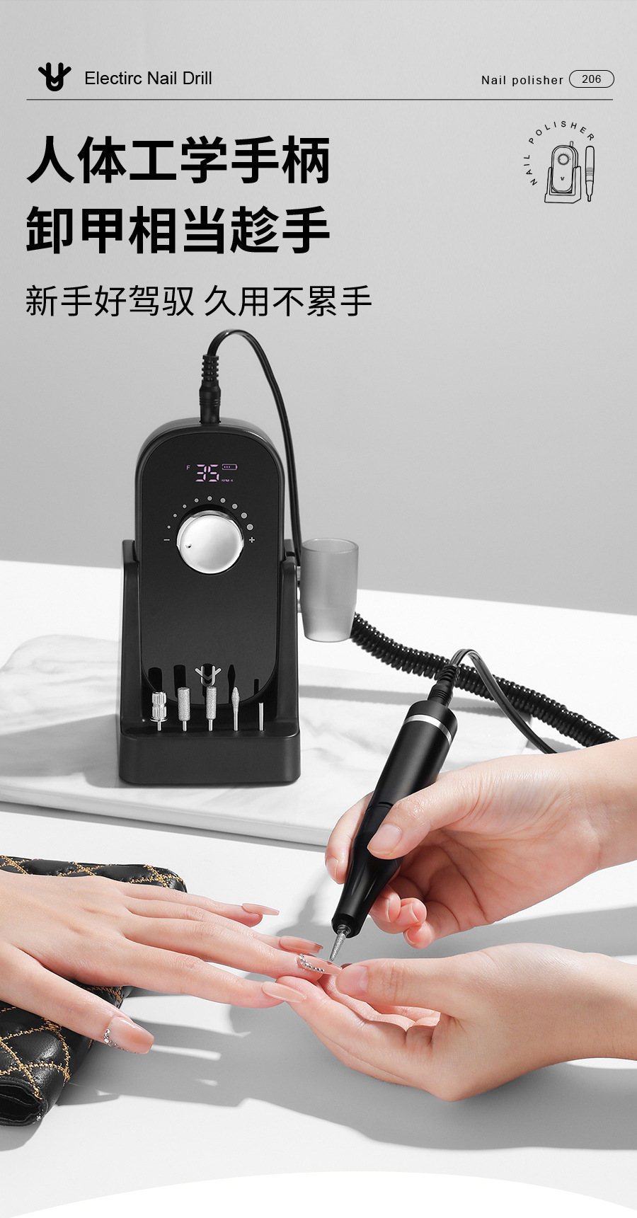 UV206美甲打磨机带底座充电磨甲卸甲美甲店跨境去死皮电动打磨机