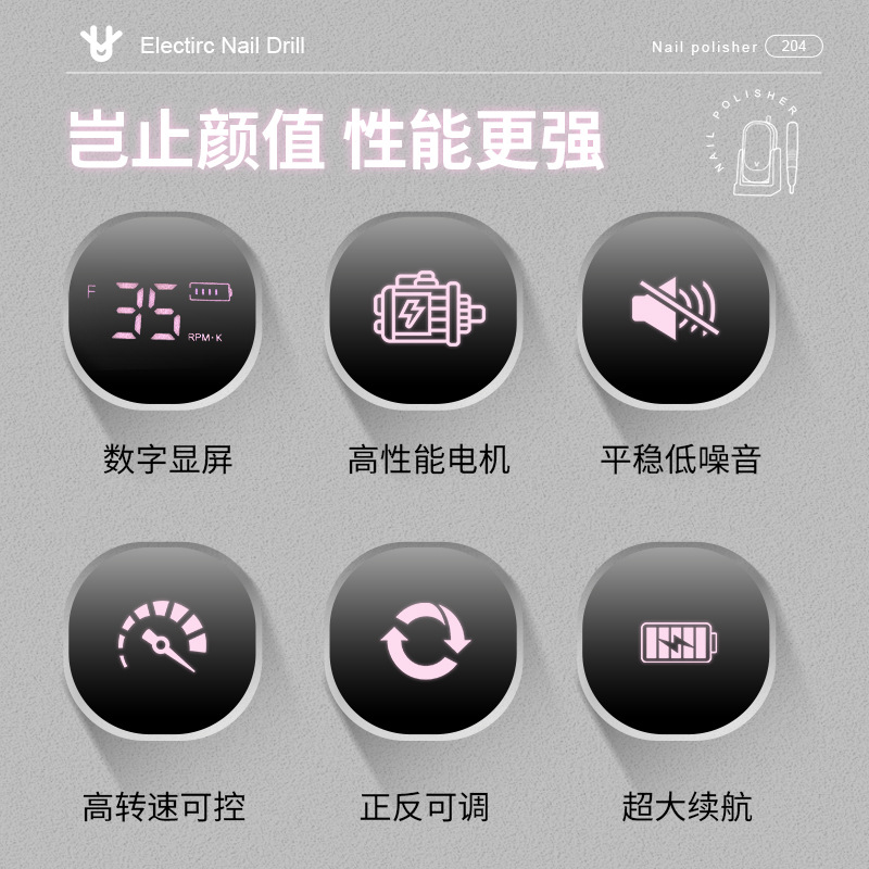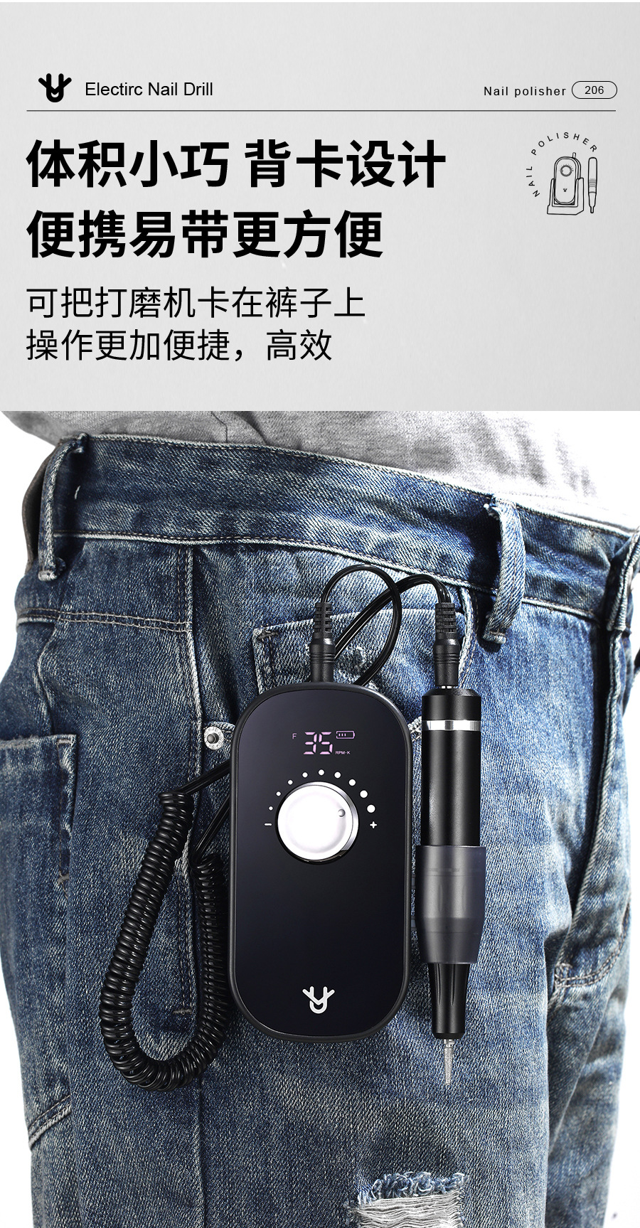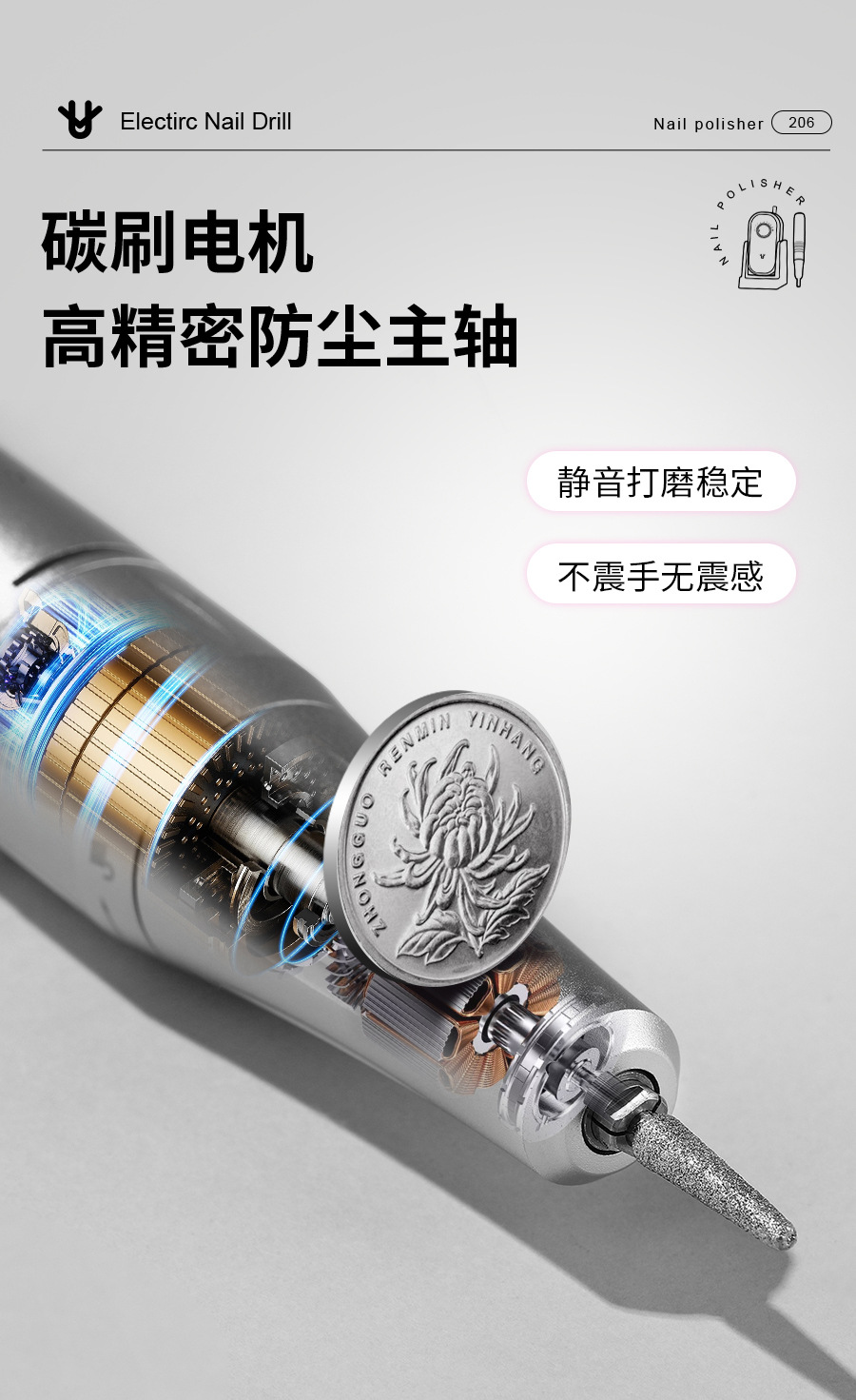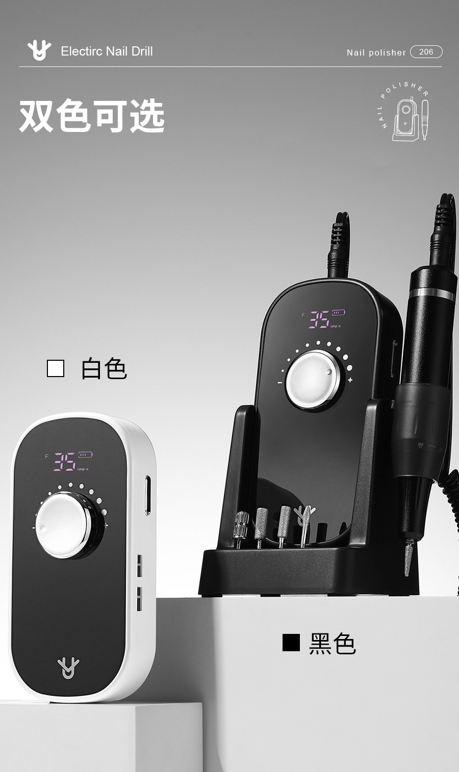 UV206美甲打磨机带底座充电磨甲卸甲美甲店跨境去死皮电动打磨机