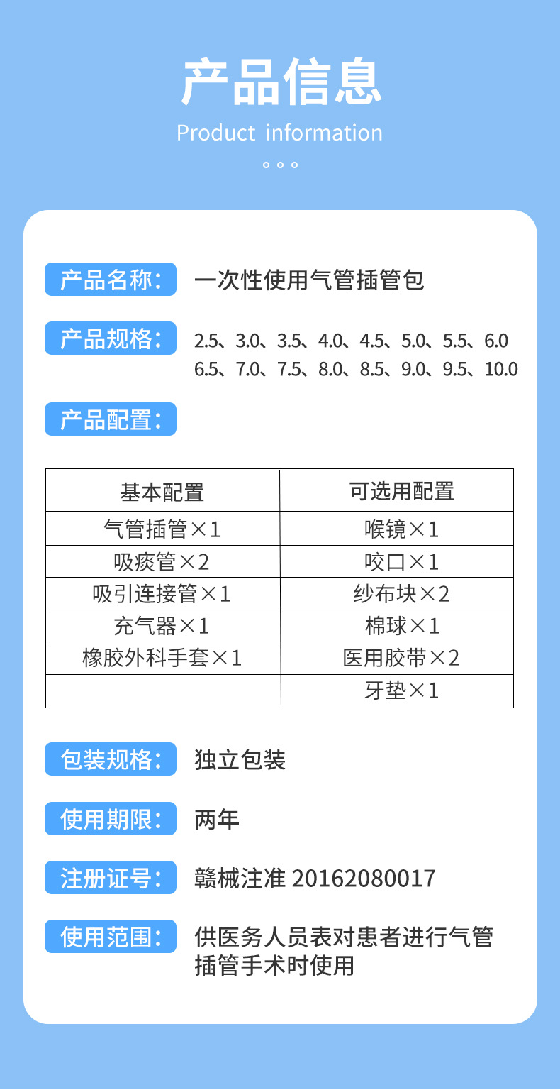 专供出口一次性使用气管插管包套装麻醉包普通型带囊导管灭菌级