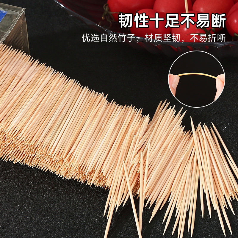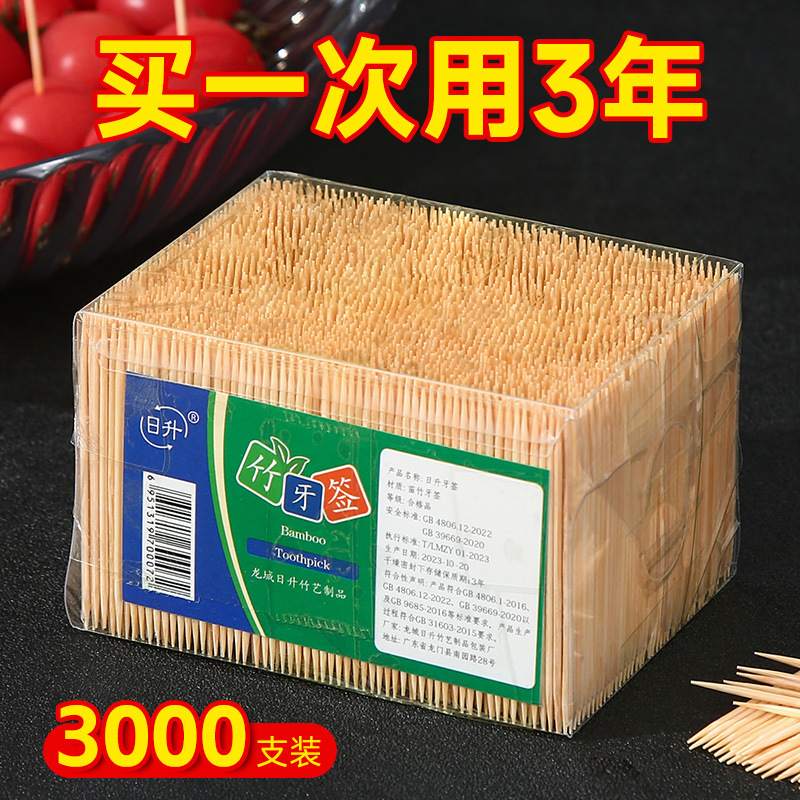 3000支竹牙签一次性双头尖超细牙签筒牙签家用酒店商用专用牙签盒
