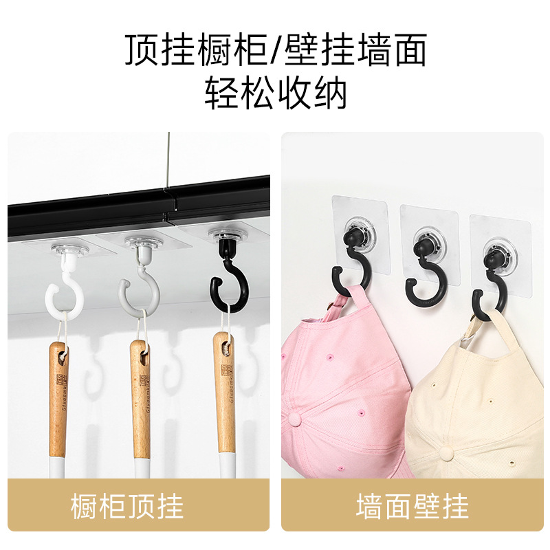 厨房挂钩免打孔顶吊壁挂厨具锅铲勺子刀具收纳旋转挂钩可旋转挂架