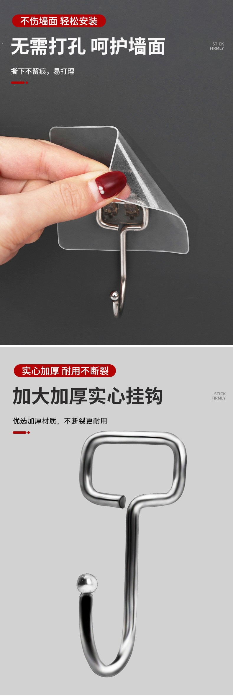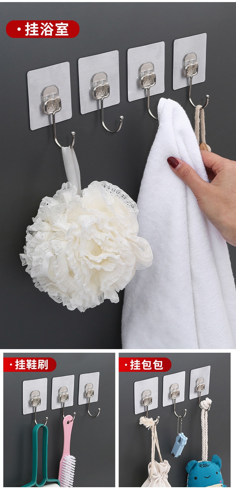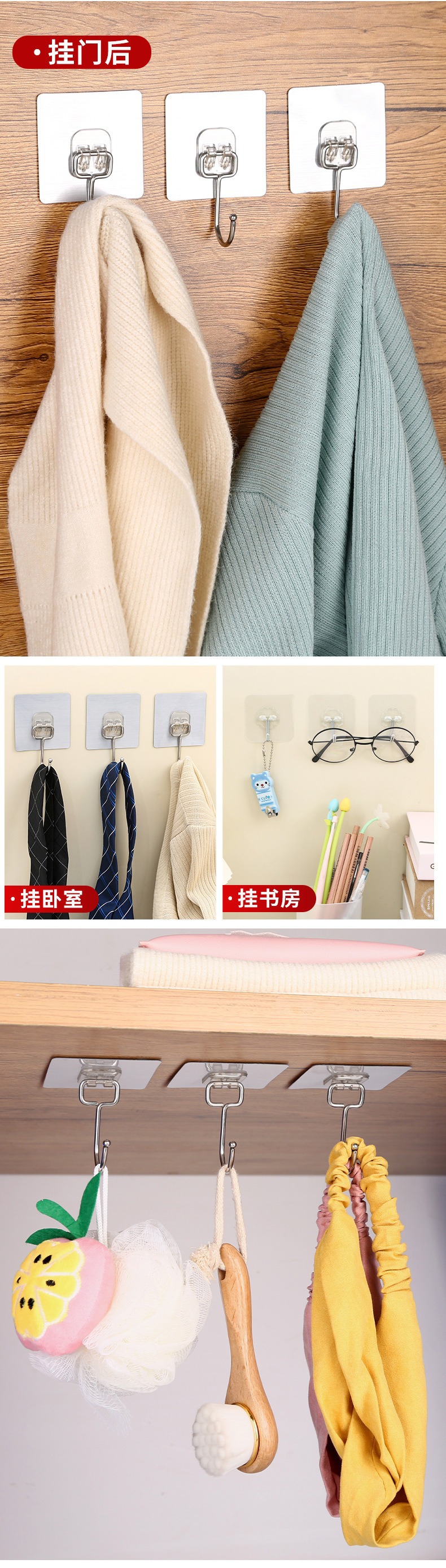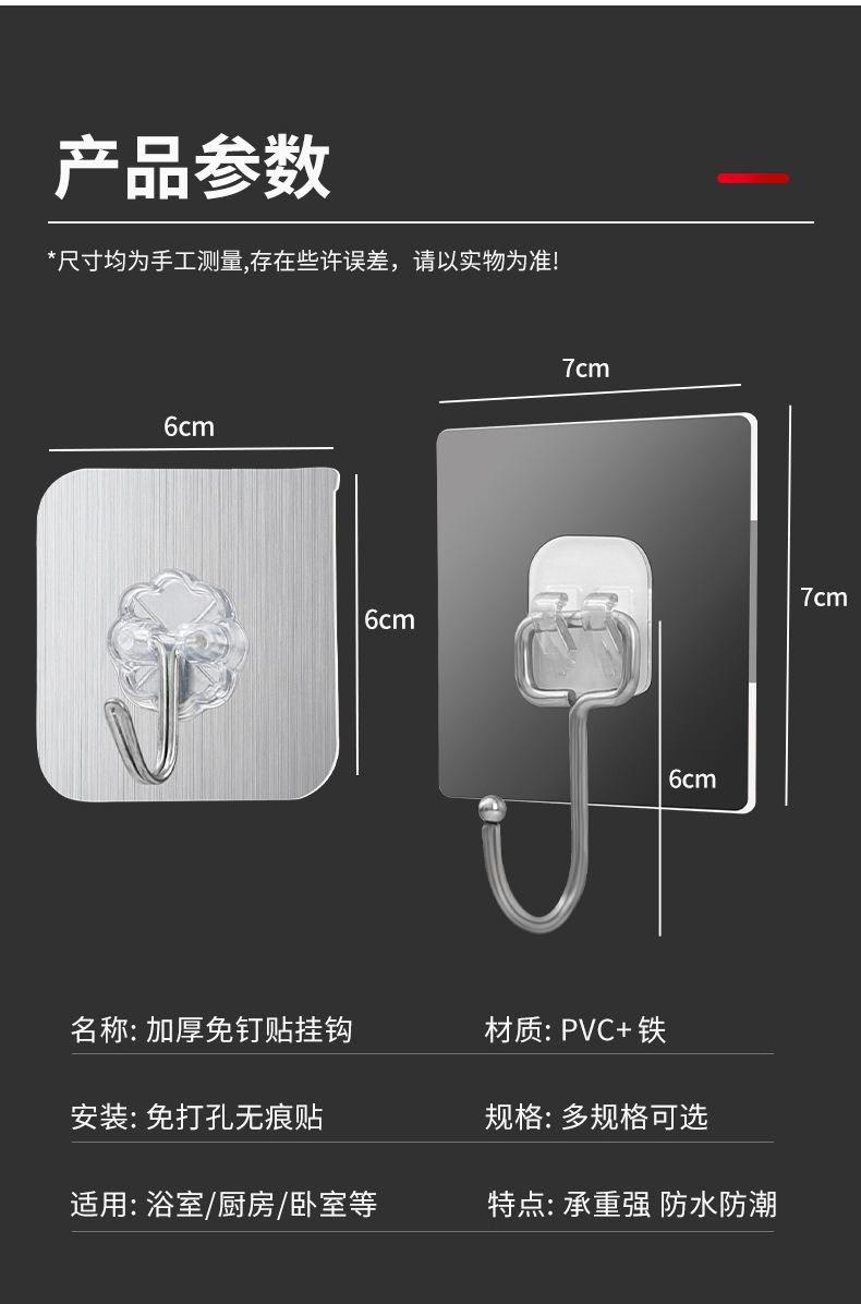 挂钩强力粘胶贴墙壁透明挂钩免打孔挂钩无痕强力承重浴室厨房粘钩