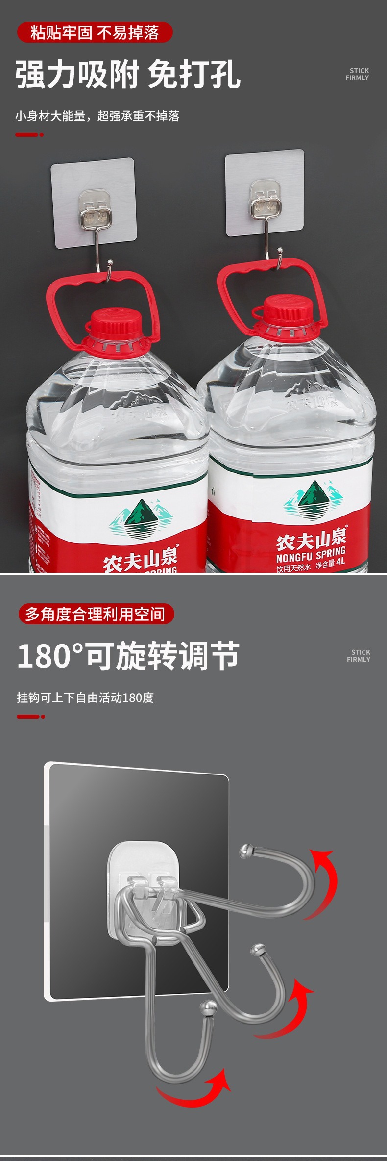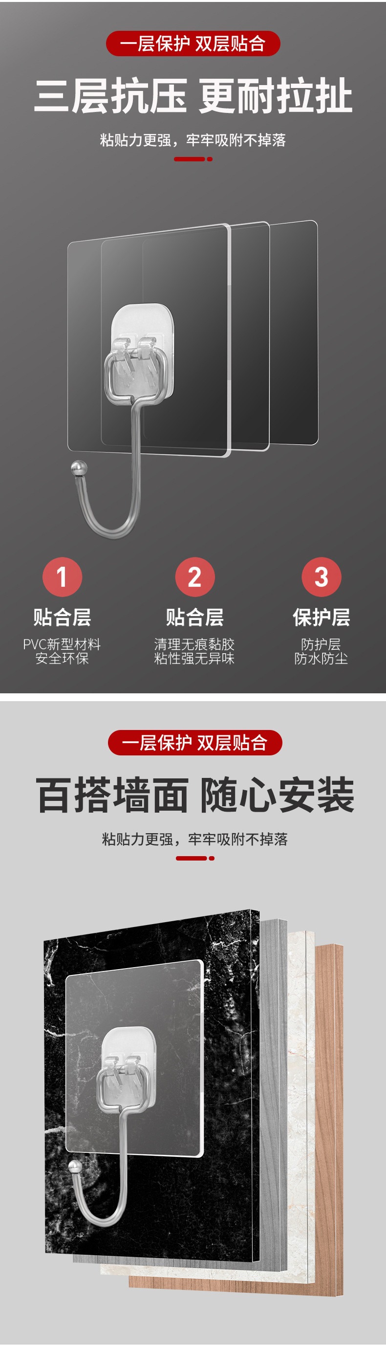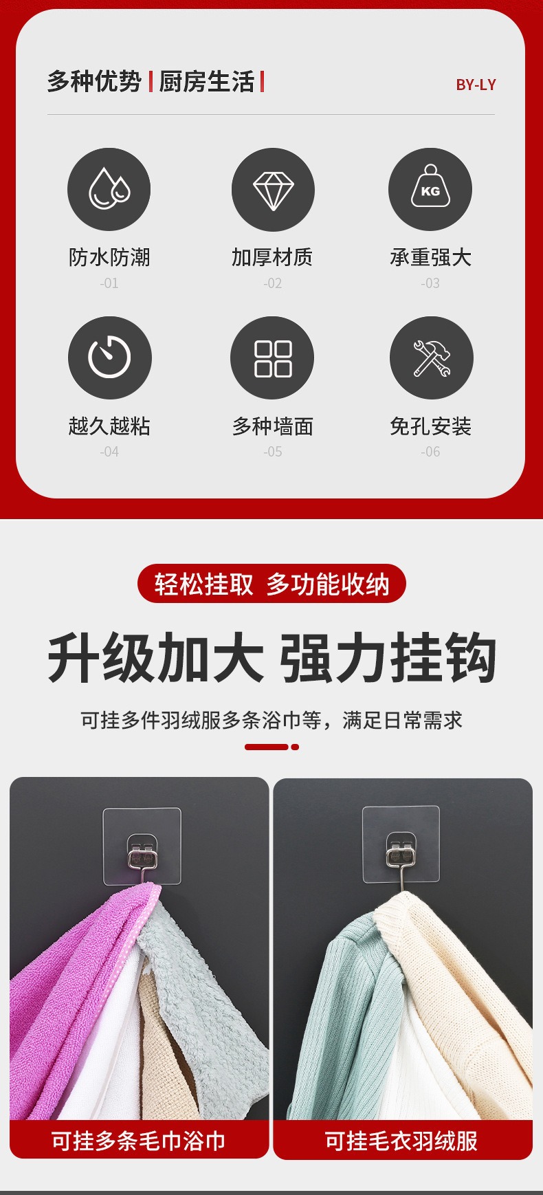 挂钩强力粘胶贴墙壁透明挂钩免打孔挂钩无痕强力承重浴室厨房粘钩