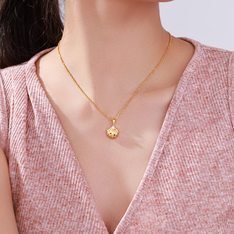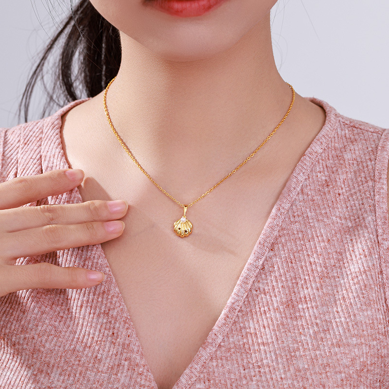 旭平首饰 时尚合金电镀24k金色仿珍珠小众设计精致贝壳项链吊坠女