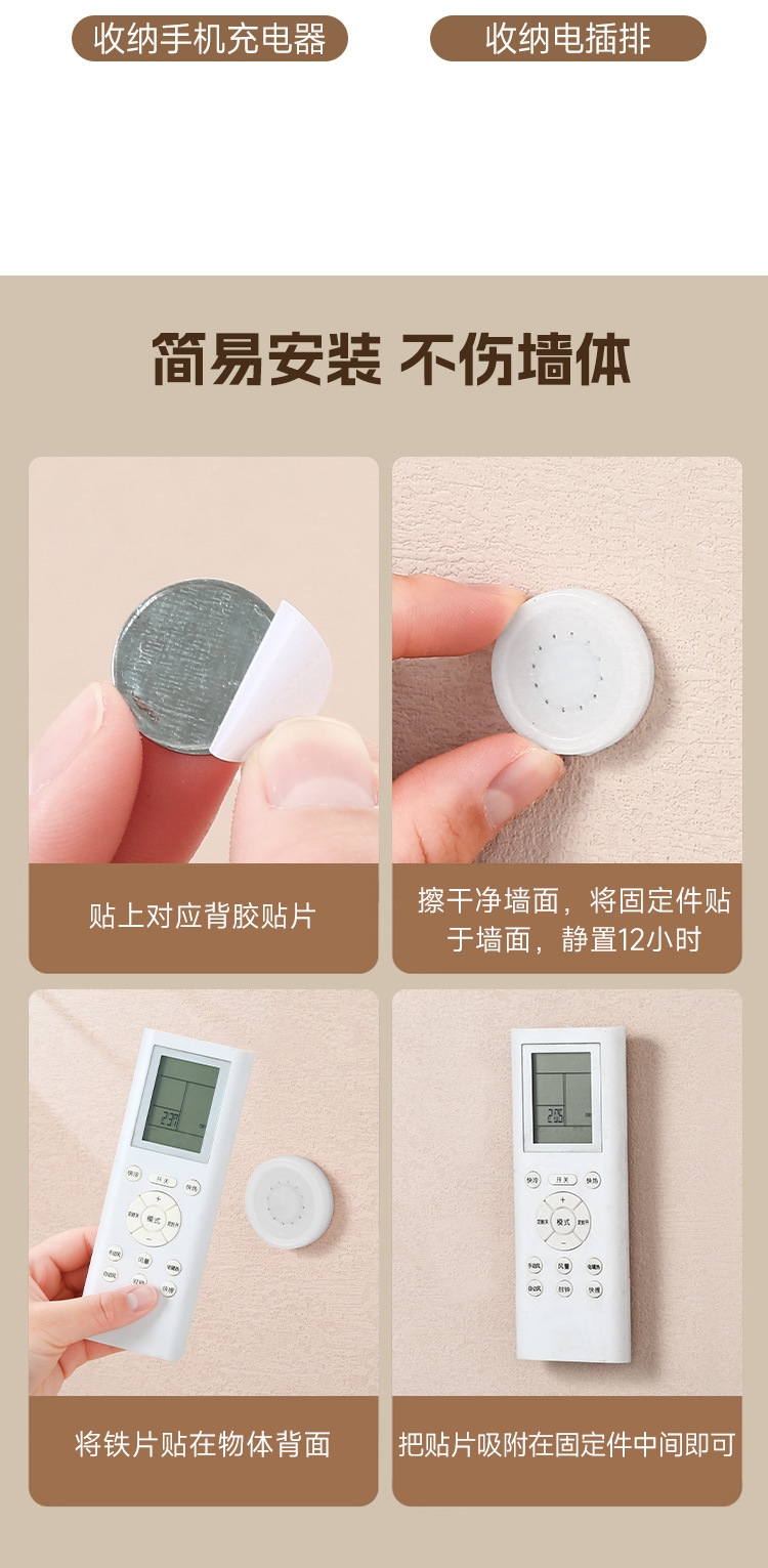 遥控器磁吸贴收纳上墙免打孔壁挂强力磁片插线板固定器子母扣挂钩