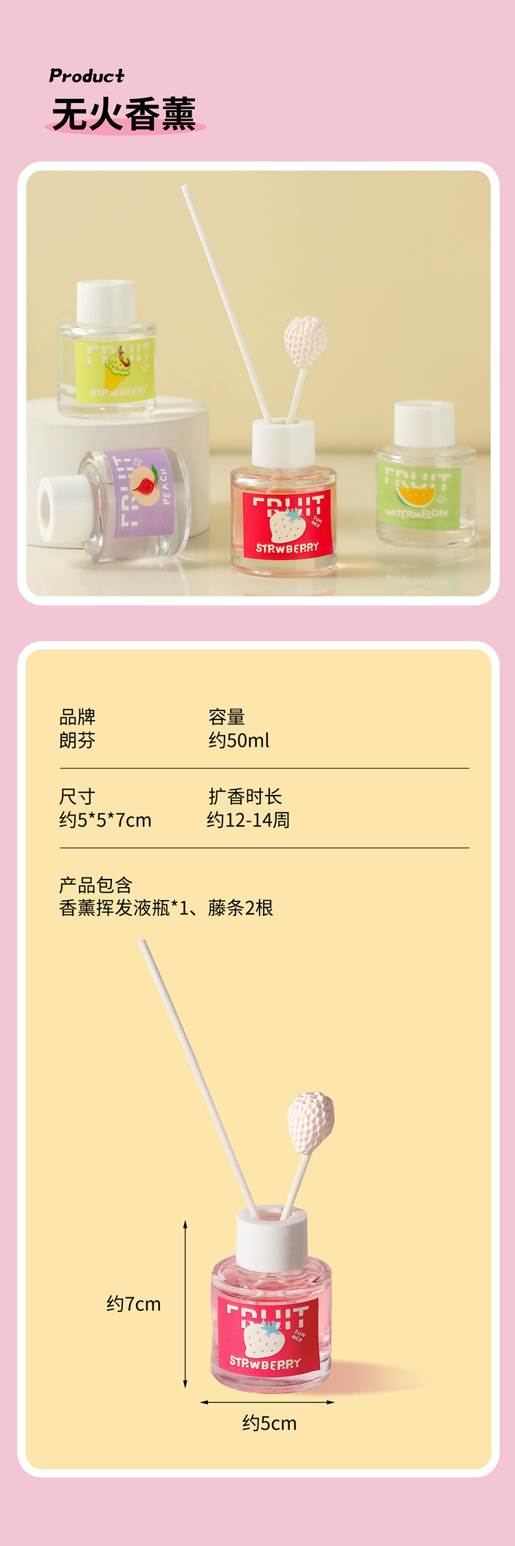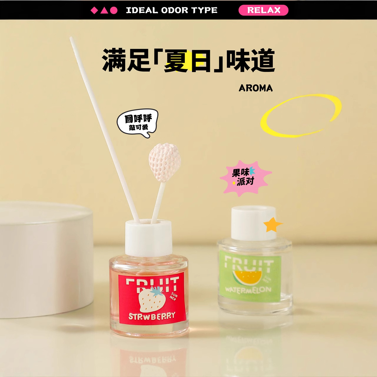 夏日水果香薰少女心可爱香薰摆件空气清新藤条香薰趣味香薰伴手礼