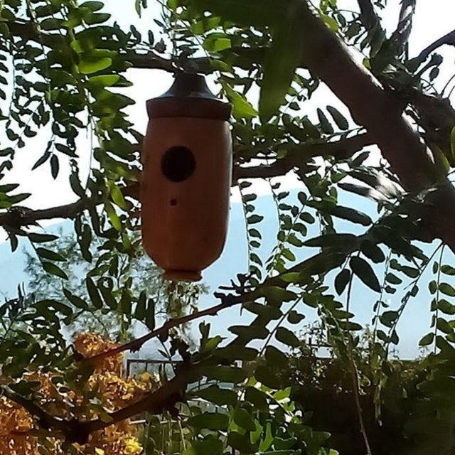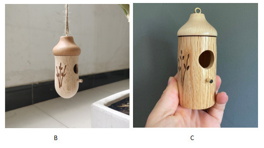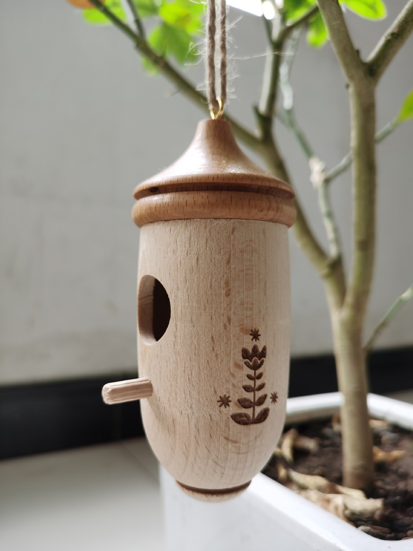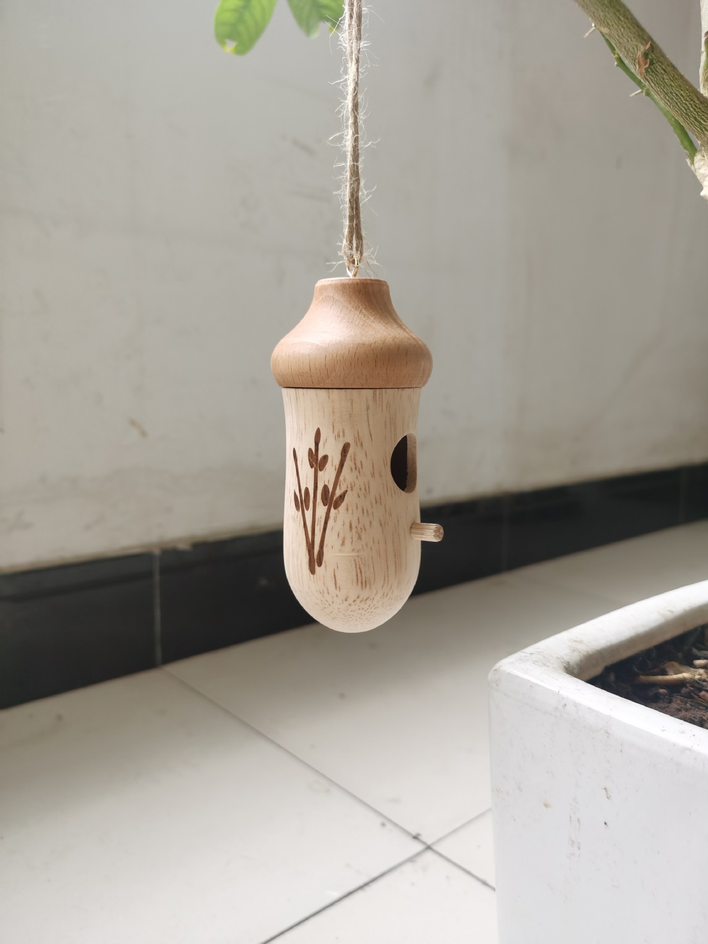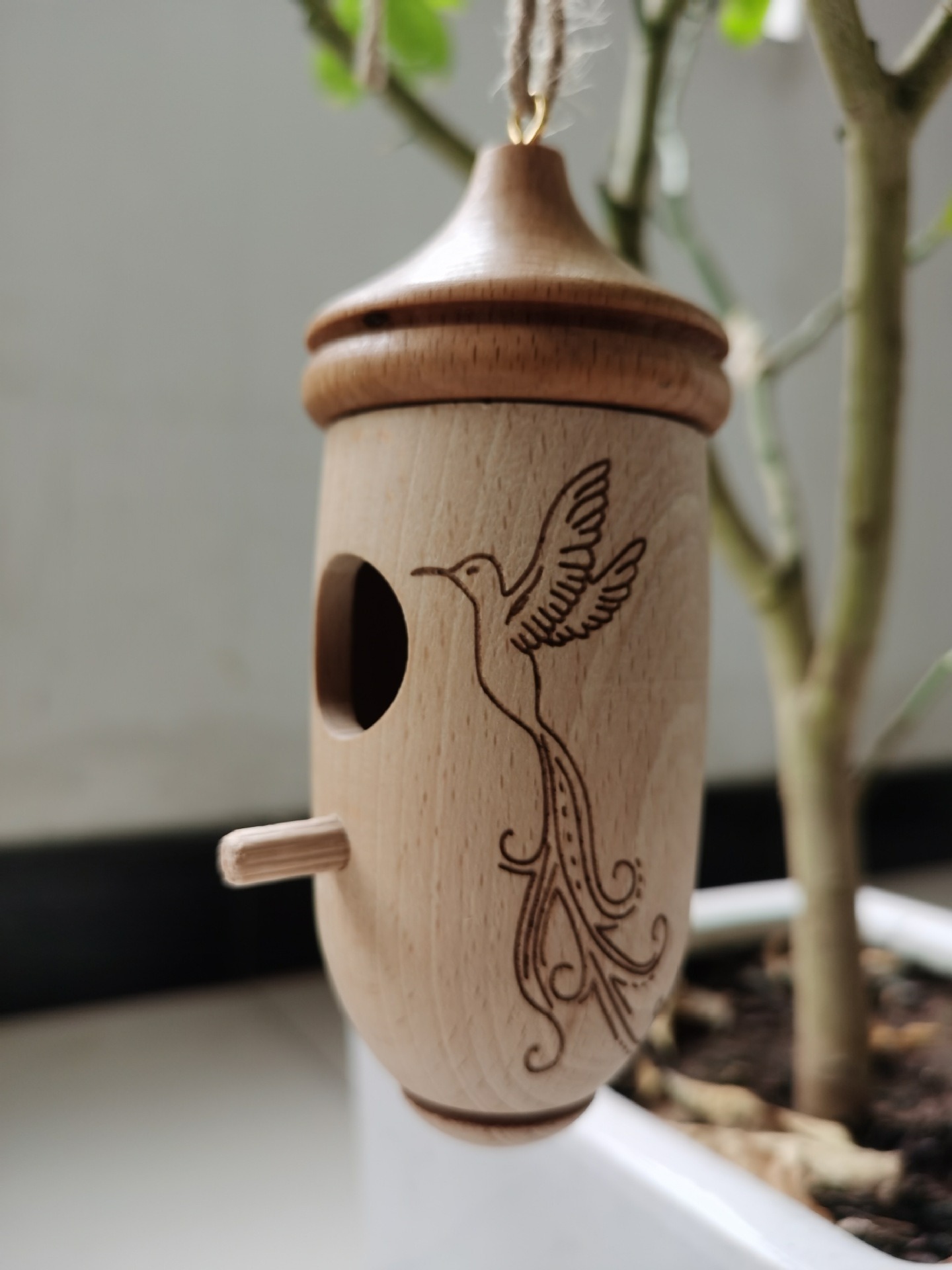 跨境新款创意户外用品庭院木质工艺品蜂鸟喂食器悬挂式鸟类投食器