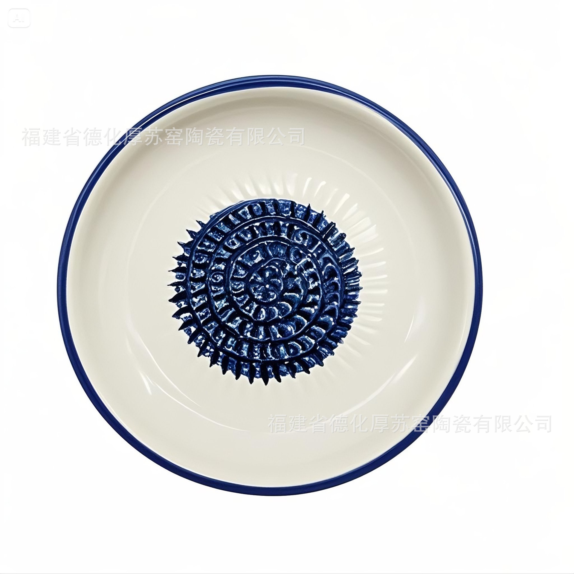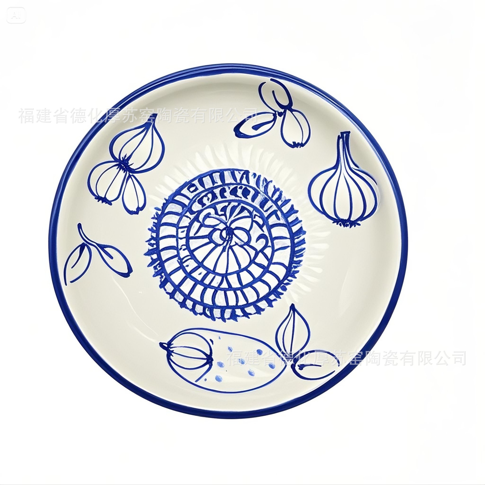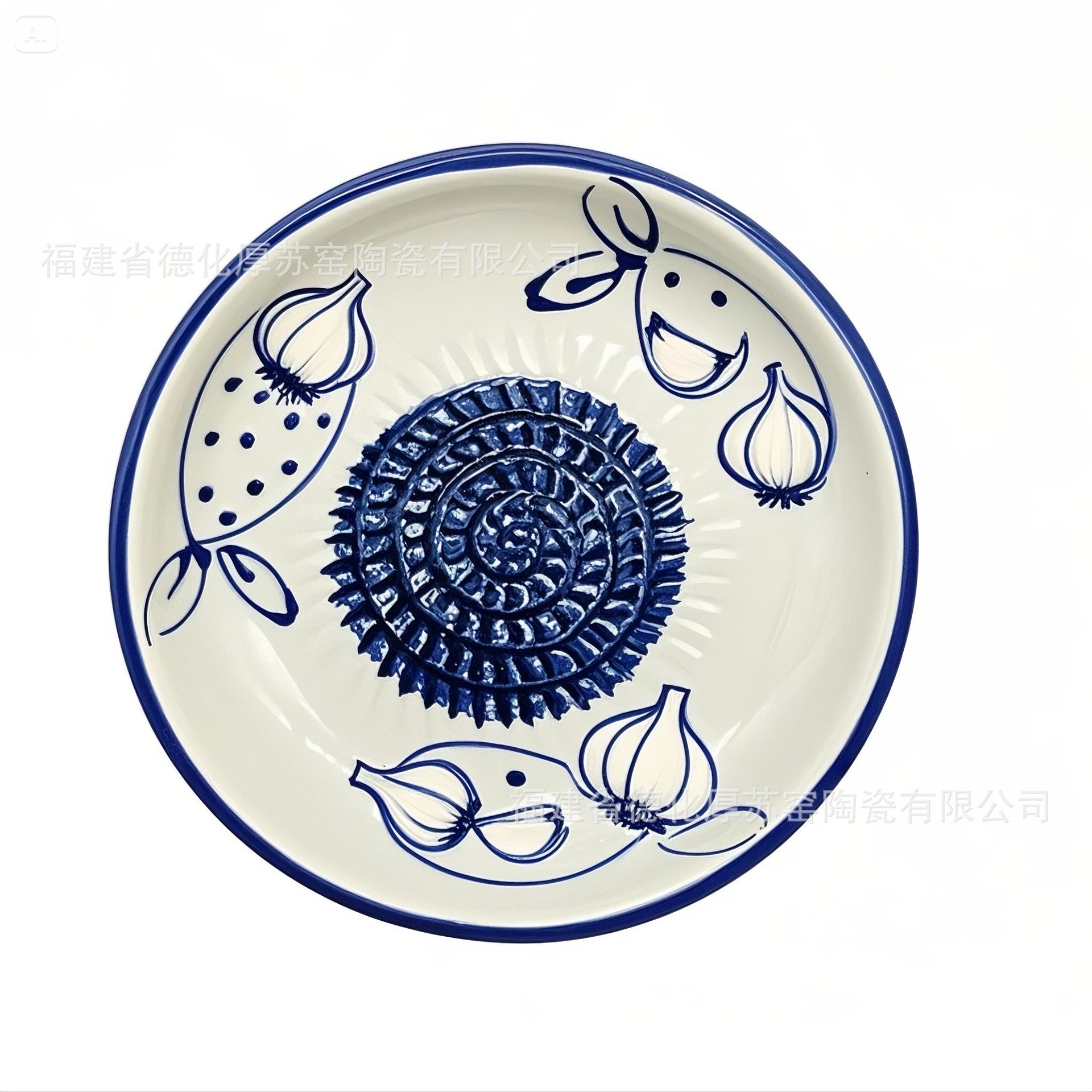 定制大蒜logo陶瓷捣蒜器外贸出口生姜大蒜刨丝器浮雕锯齿蒜泥盘
