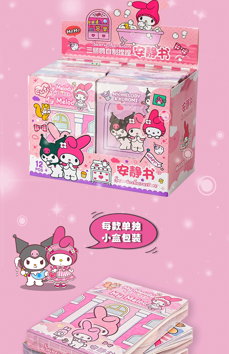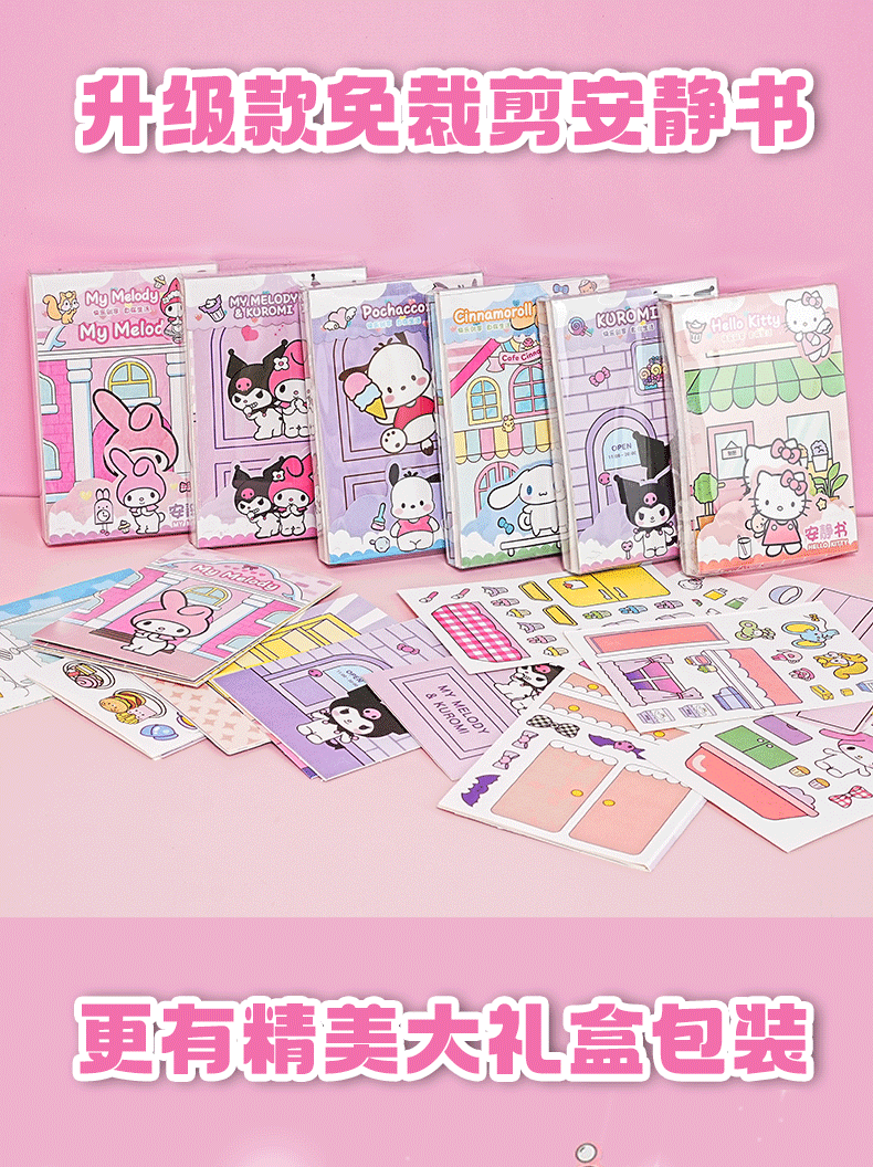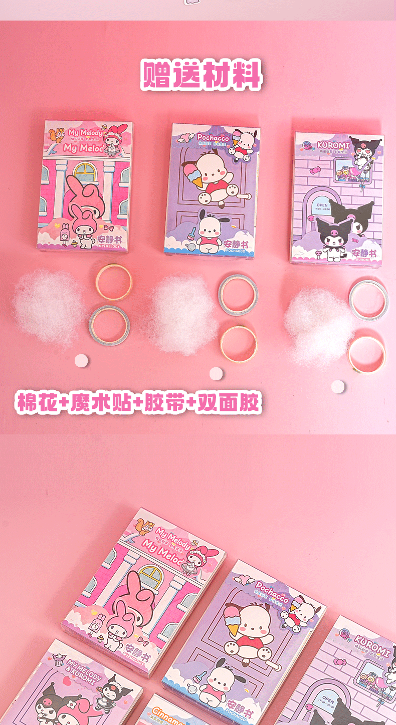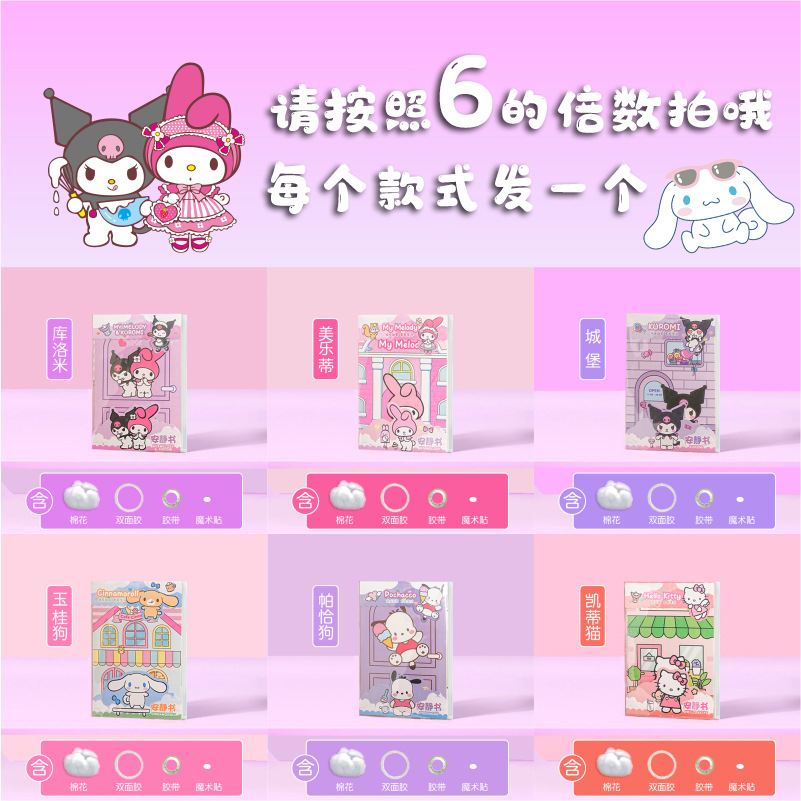 【跨境专供】安静书diy三丽鸥免剪裁库洛米美乐蒂玩具书自制全套