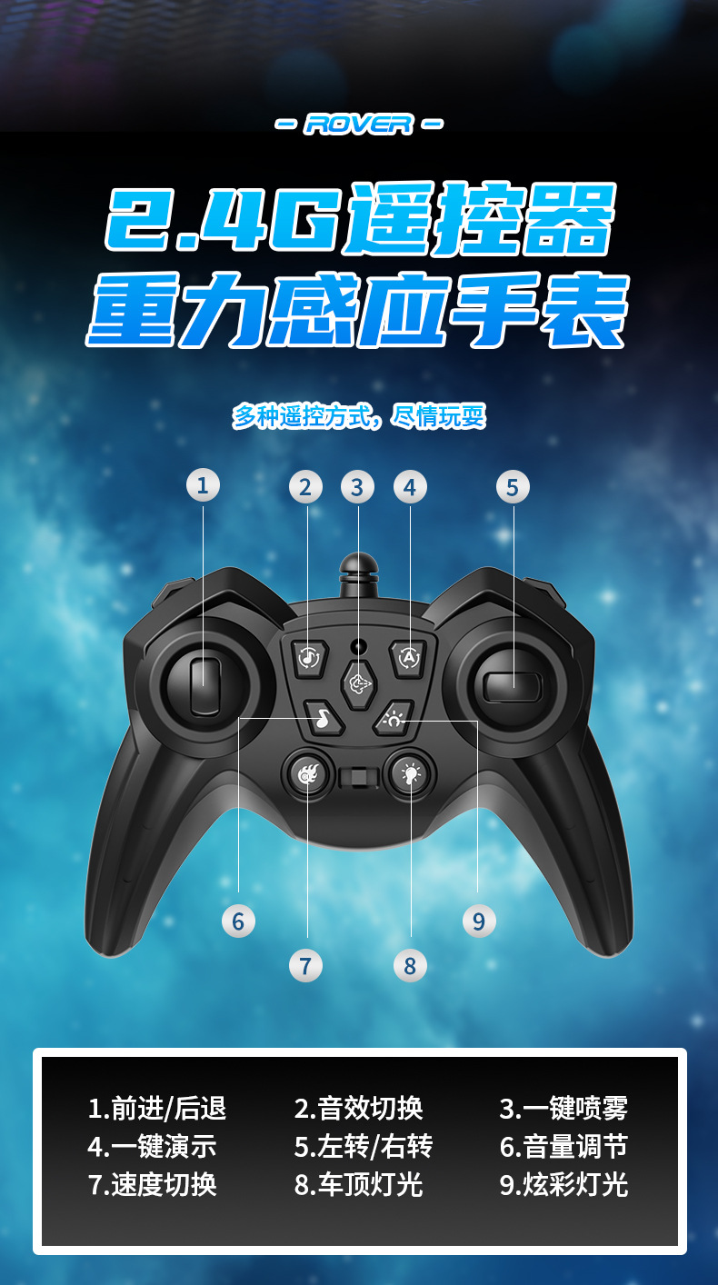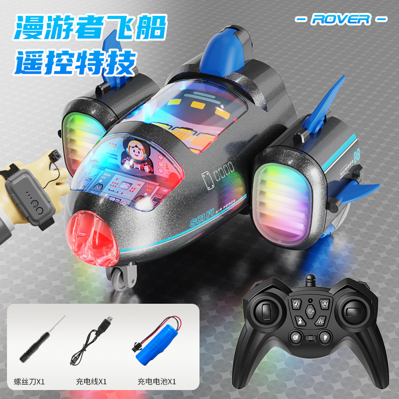 儿童手势感应遥控车翻滚特技灯光喷雾火箭飞船男孩玩具礼物批发
