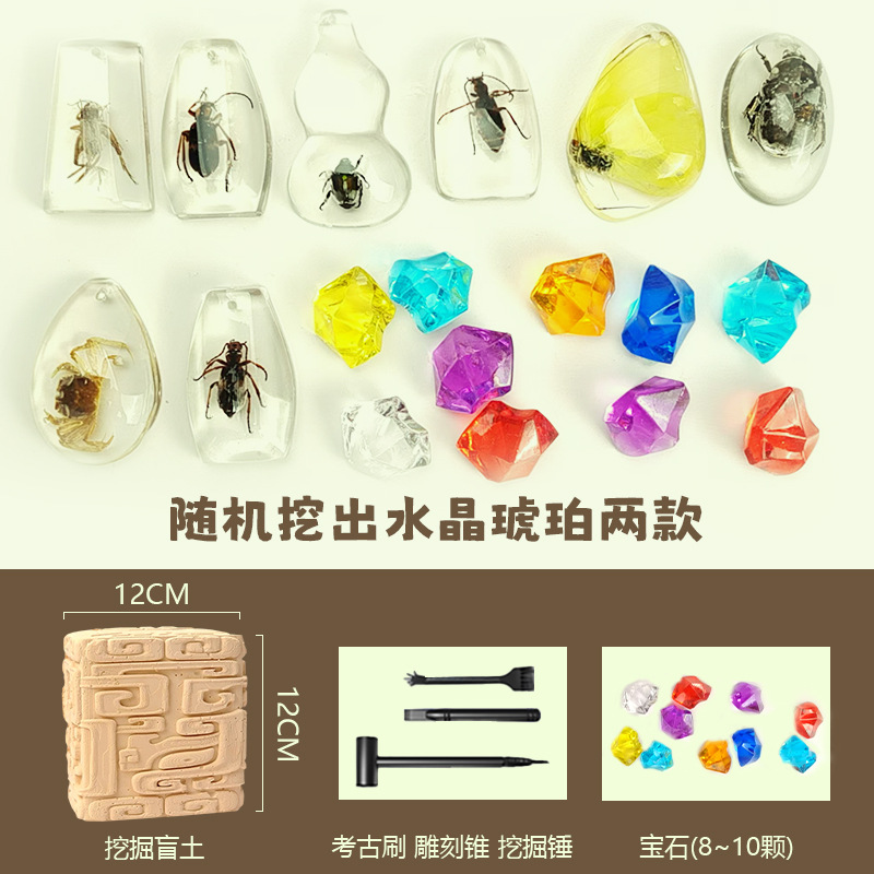 儿童考古挖掘玩具化石标本琥珀昆虫精灵盲盒男女孩手工寻宝石宝藏