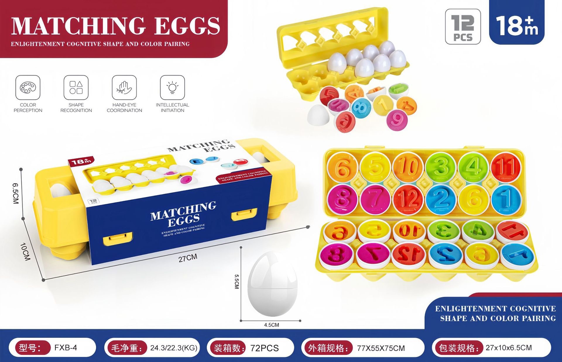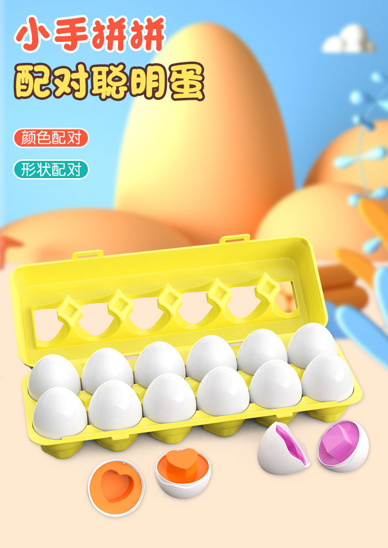 跨境早教配对聪明蛋宝宝颜色形状认知仿真鸡蛋益智儿童捏捏蛋玩具