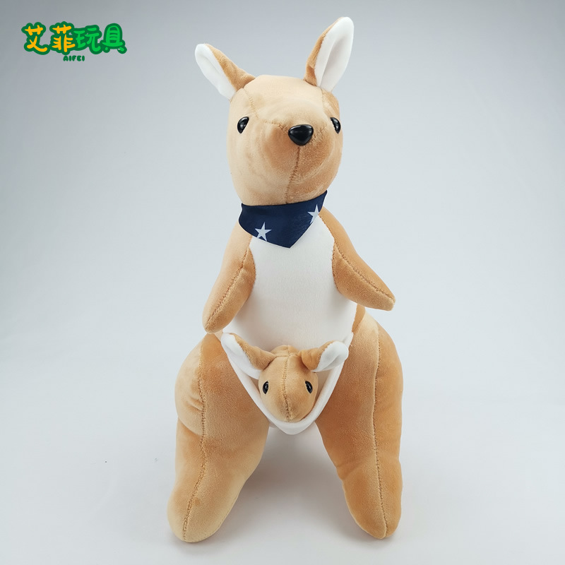 跨境批发新款系围巾母子袋鼠毛绒玩具可爱的30cm抓机娃娃毛绒公仔