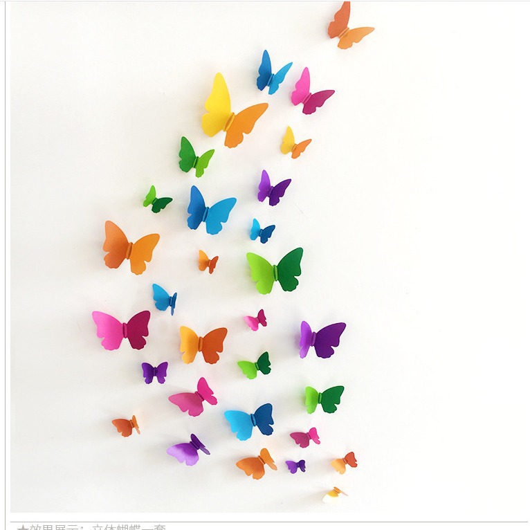3D仿真蝴蝶墙贴 卡装双面胶卧室客厅墙贴 塑料蝴蝶