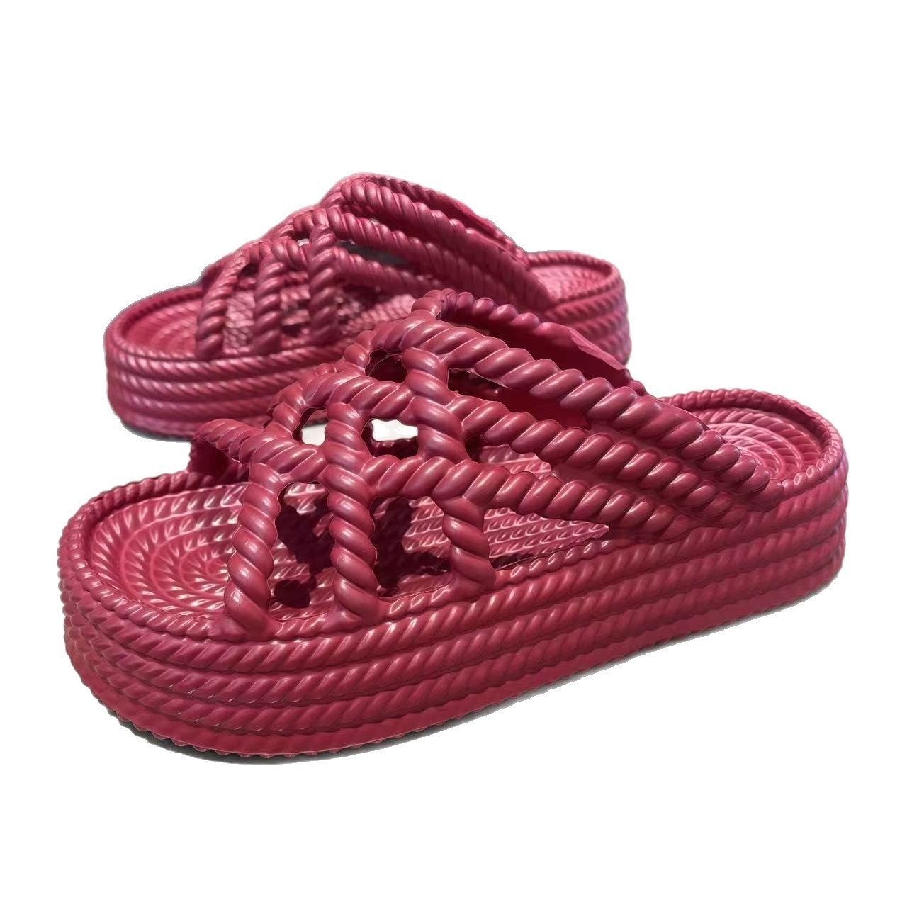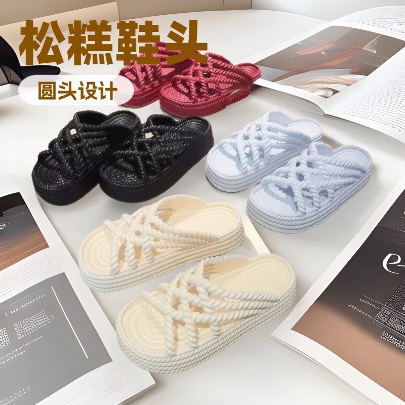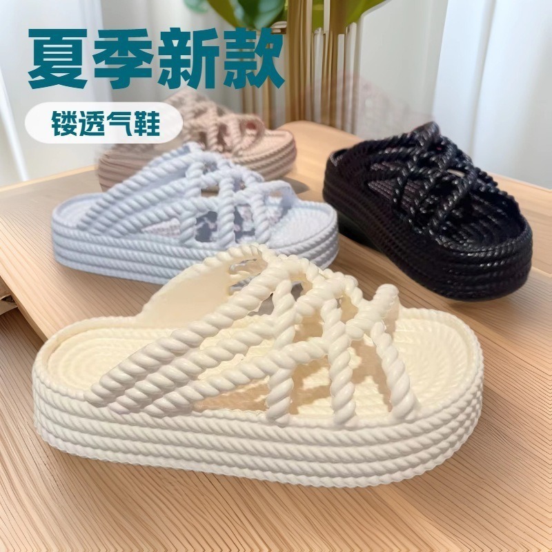 504-1仿编织平底厚底百搭沙滩罗马鞋