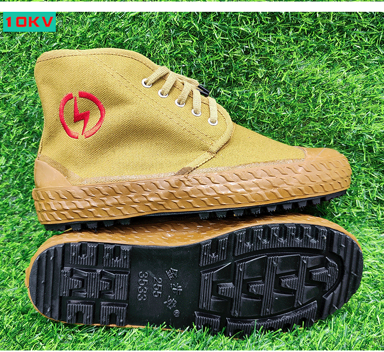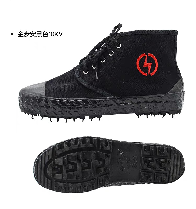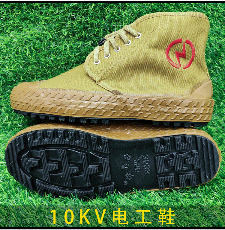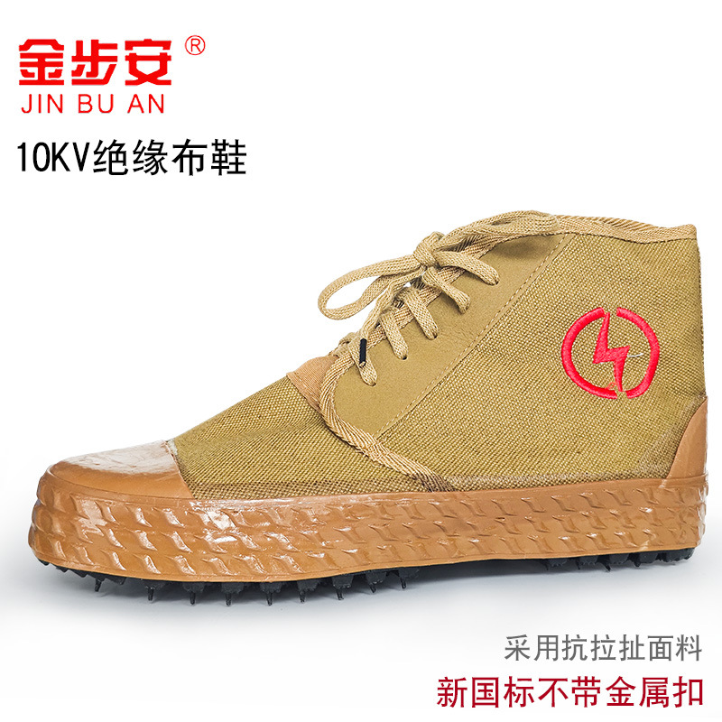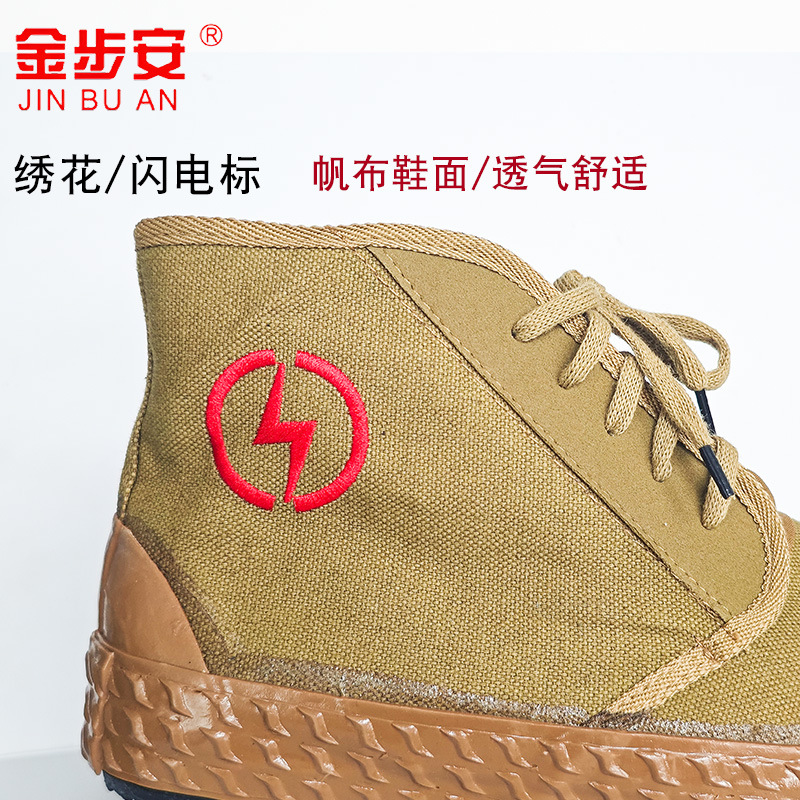 金步安10KV高压电工绝缘鞋帆布鞋军绿高邦橡胶工作劳保安全鞋防滑