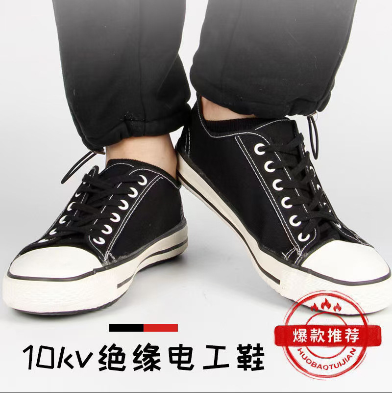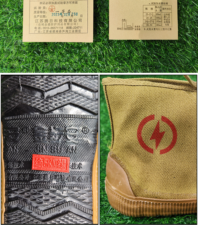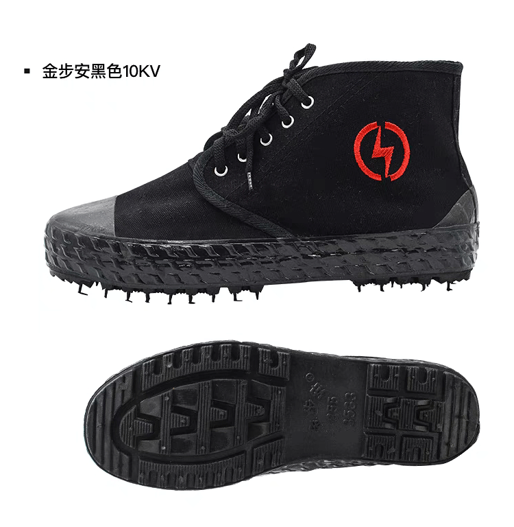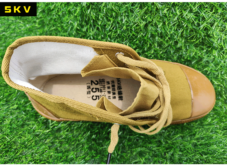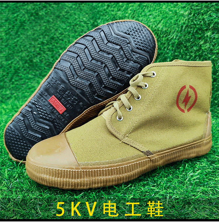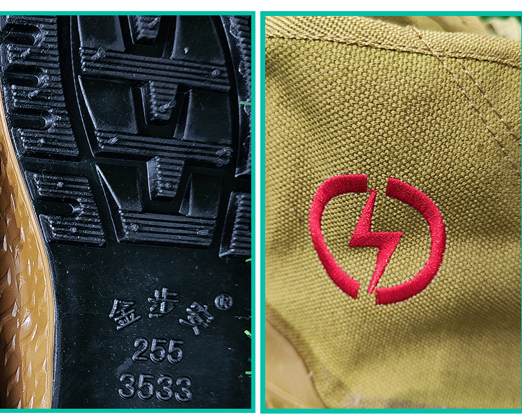 金步安10KV高压电工绝缘鞋帆布鞋军绿高邦橡胶工作劳保安全鞋防滑