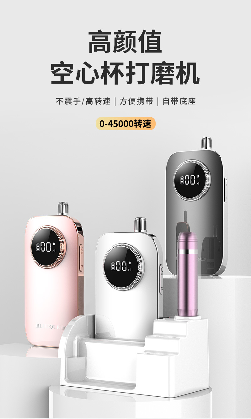 跨境新款空心杯美甲打磨机45000RPM便携式充蓄电指甲抛光卸甲器