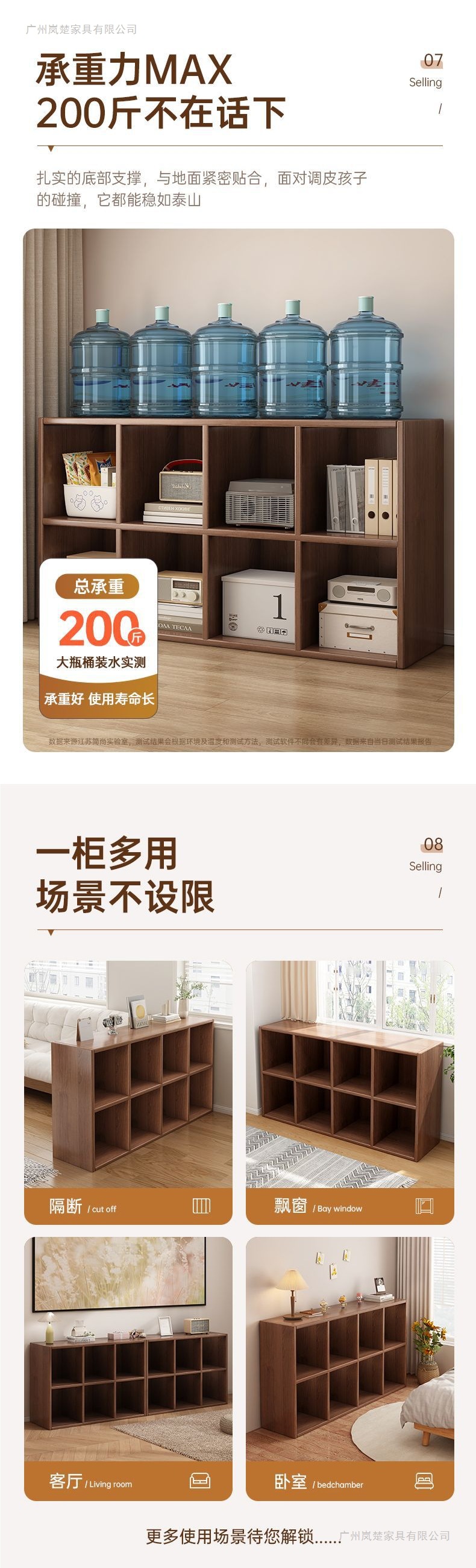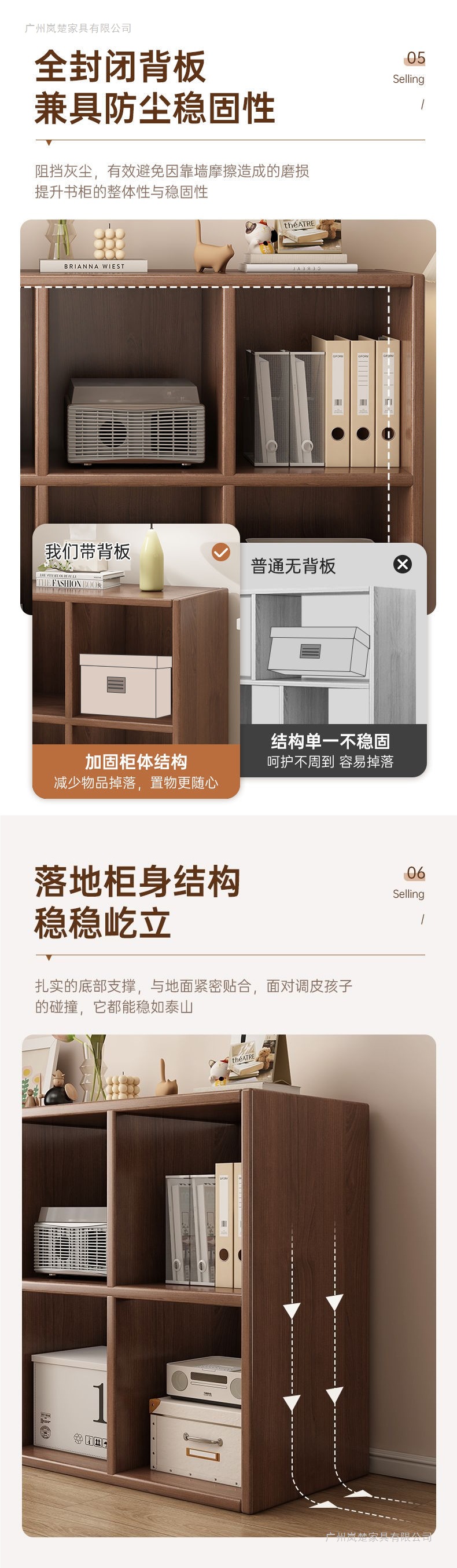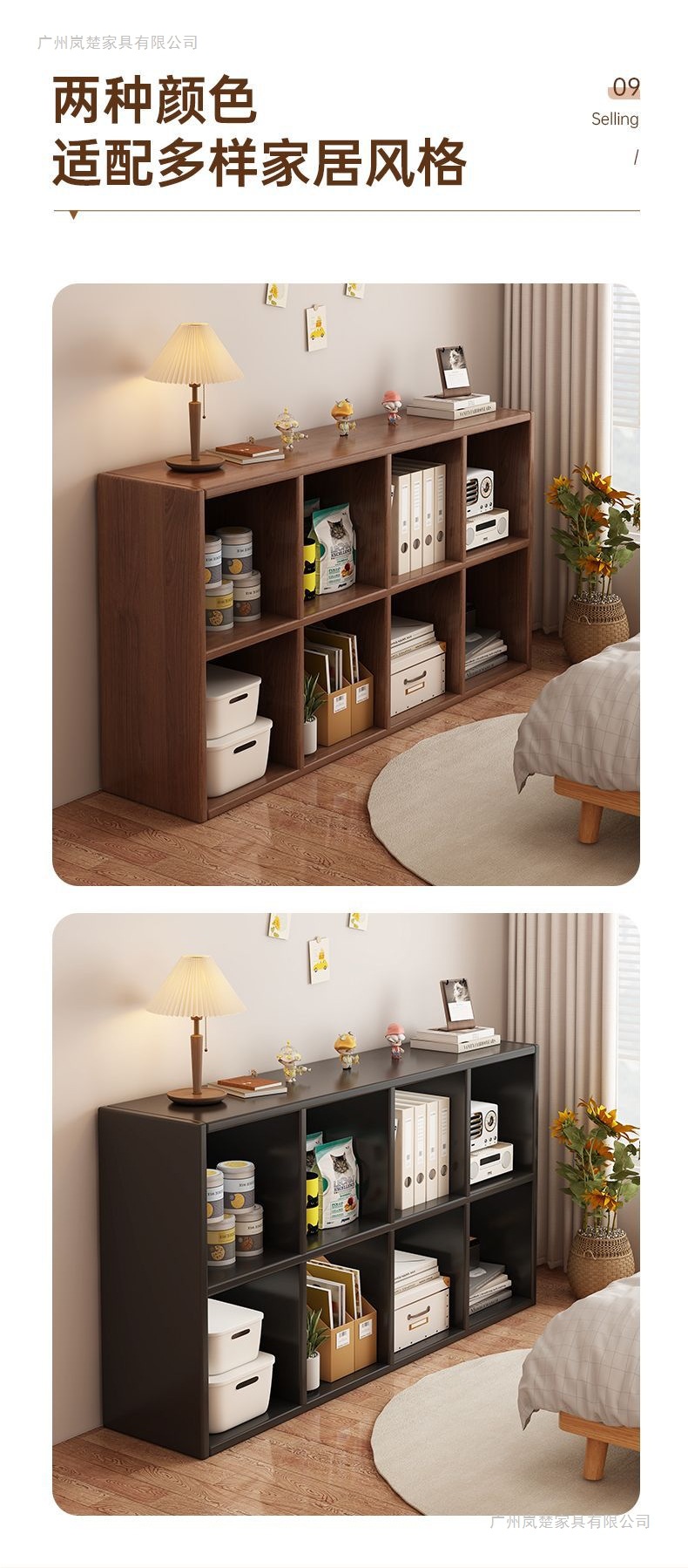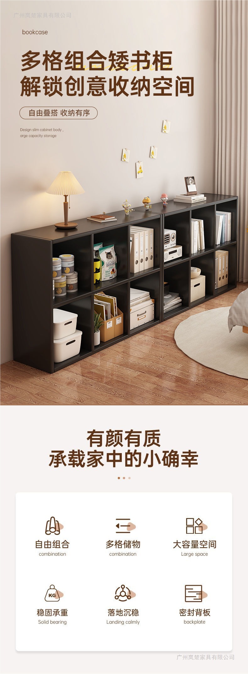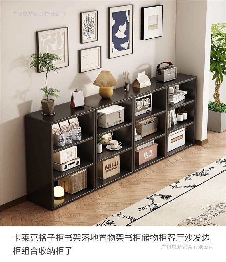 黑色书柜置物柜靠墙书架落地客厅自由组合八格柜家用收纳柜子