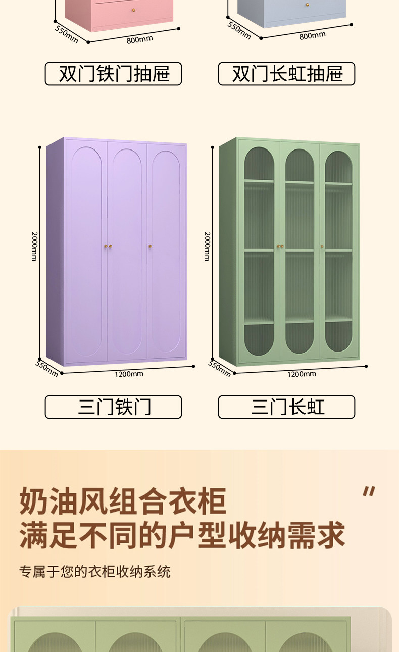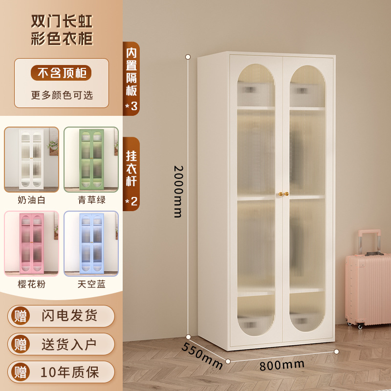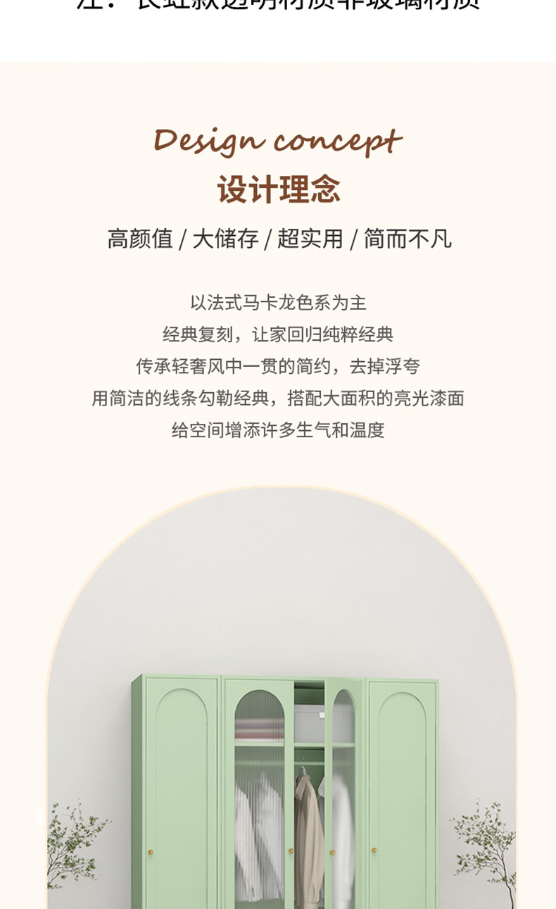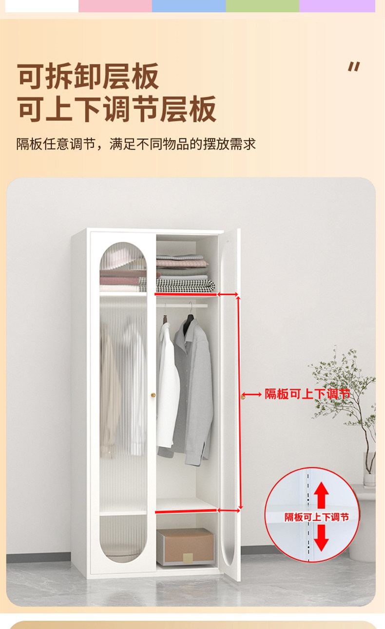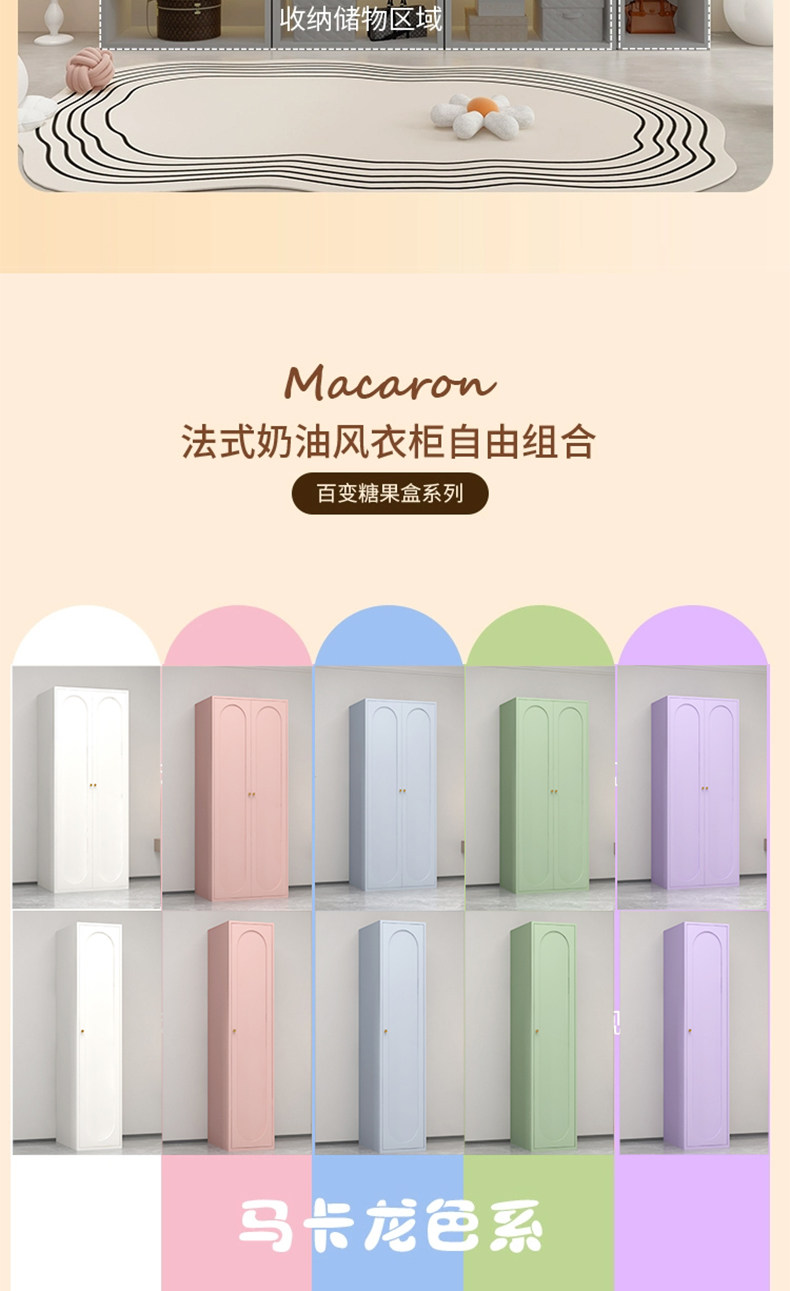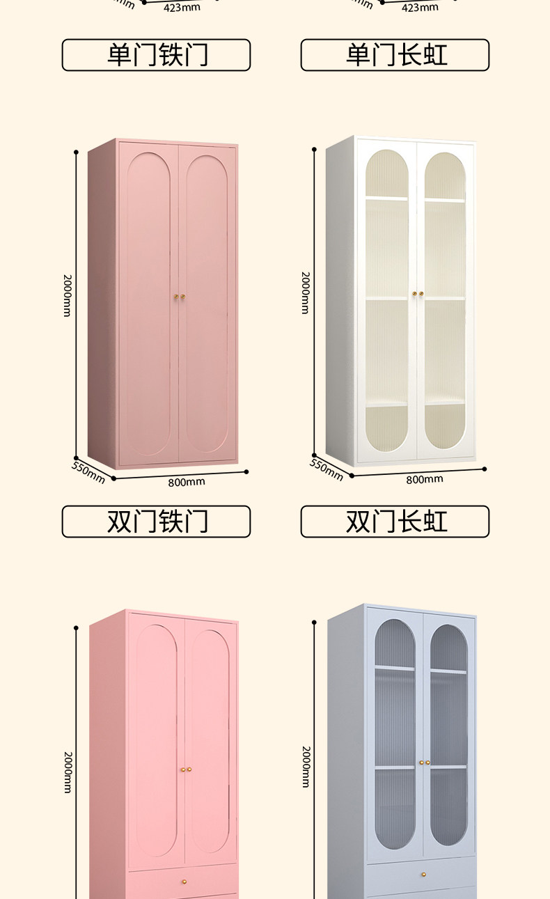 法式奶油风衣柜铁皮钢制衣柜儿童衣柜卧室家用无甲醛大容量储物柜