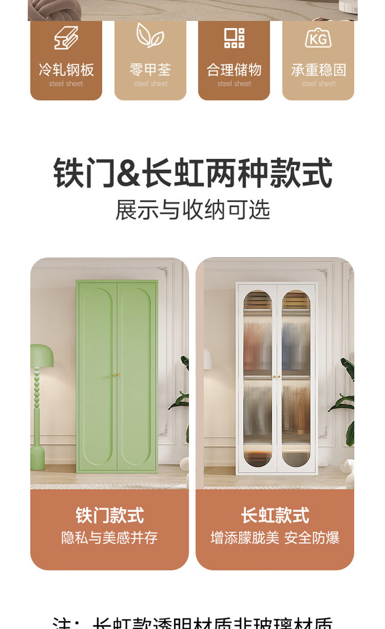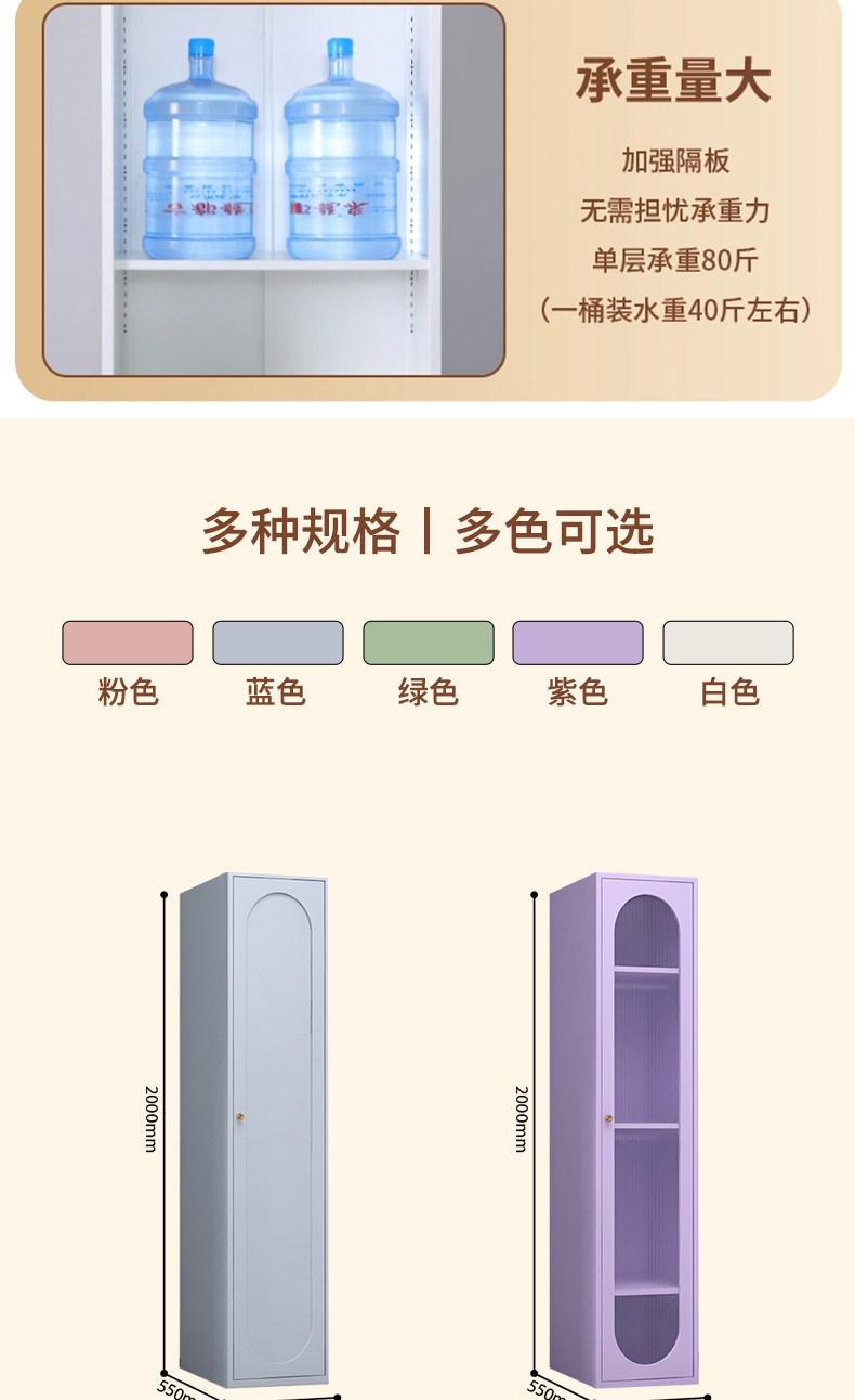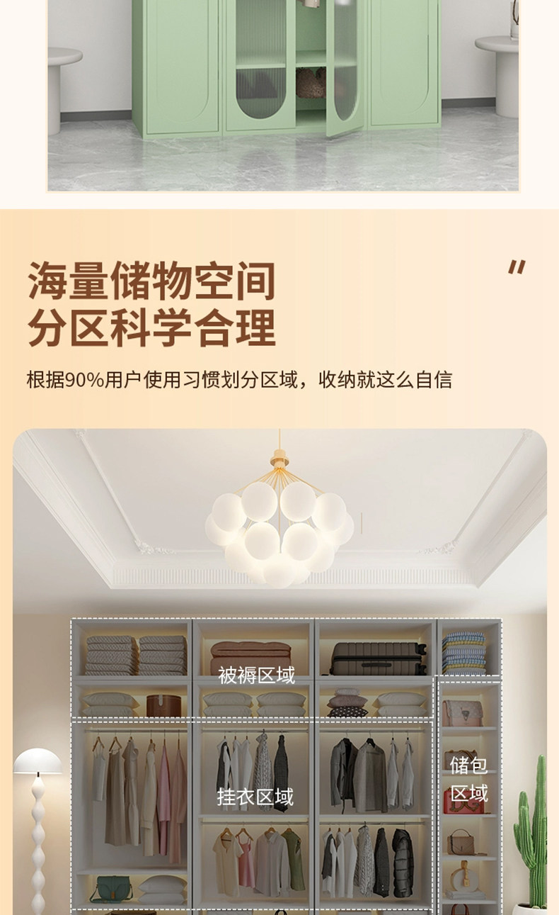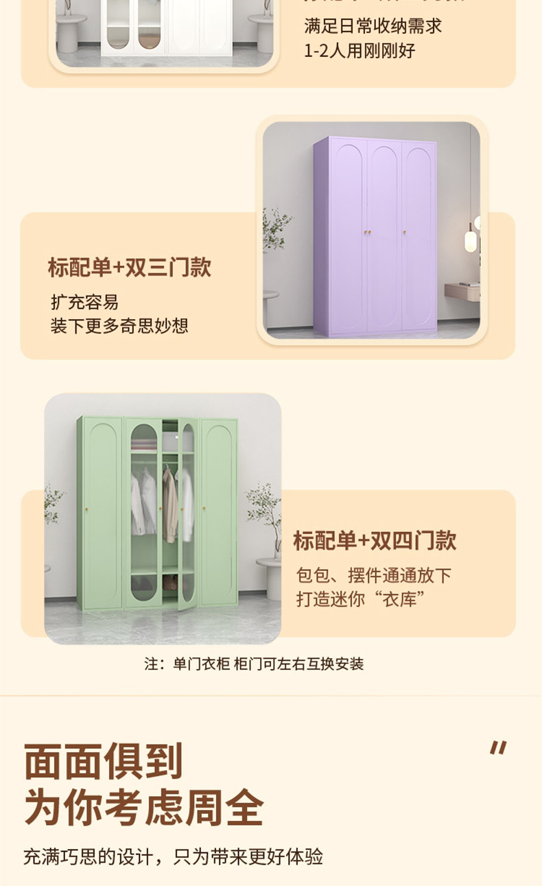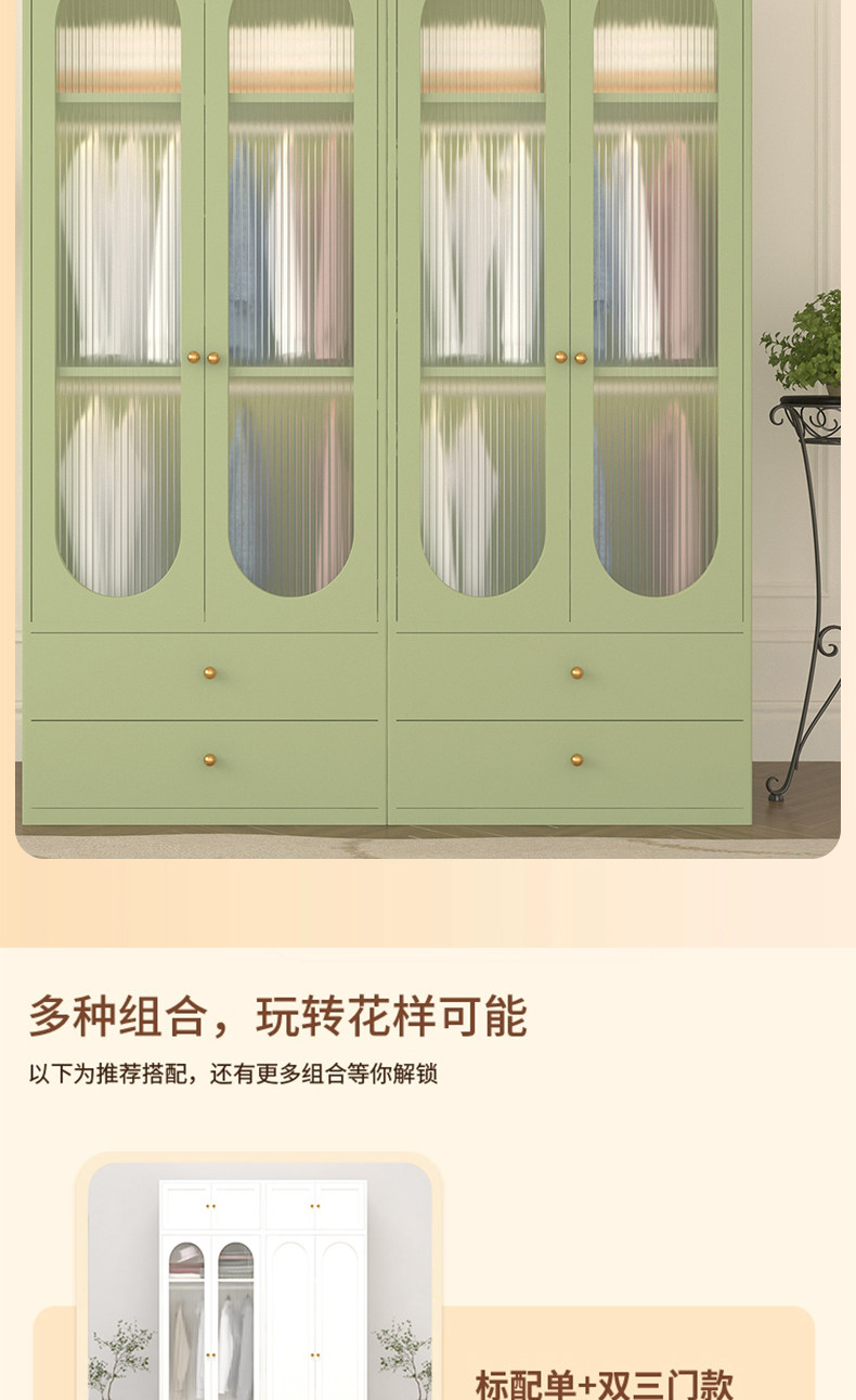 法式奶油风衣柜铁皮钢制衣柜儿童衣柜卧室家用无甲醛大容量储物柜