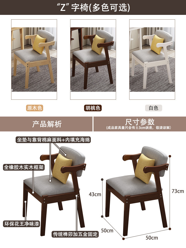 橡胶木椅子靠背北欧餐椅现代办公椅扶手椅家用书房学习桌椅批发
