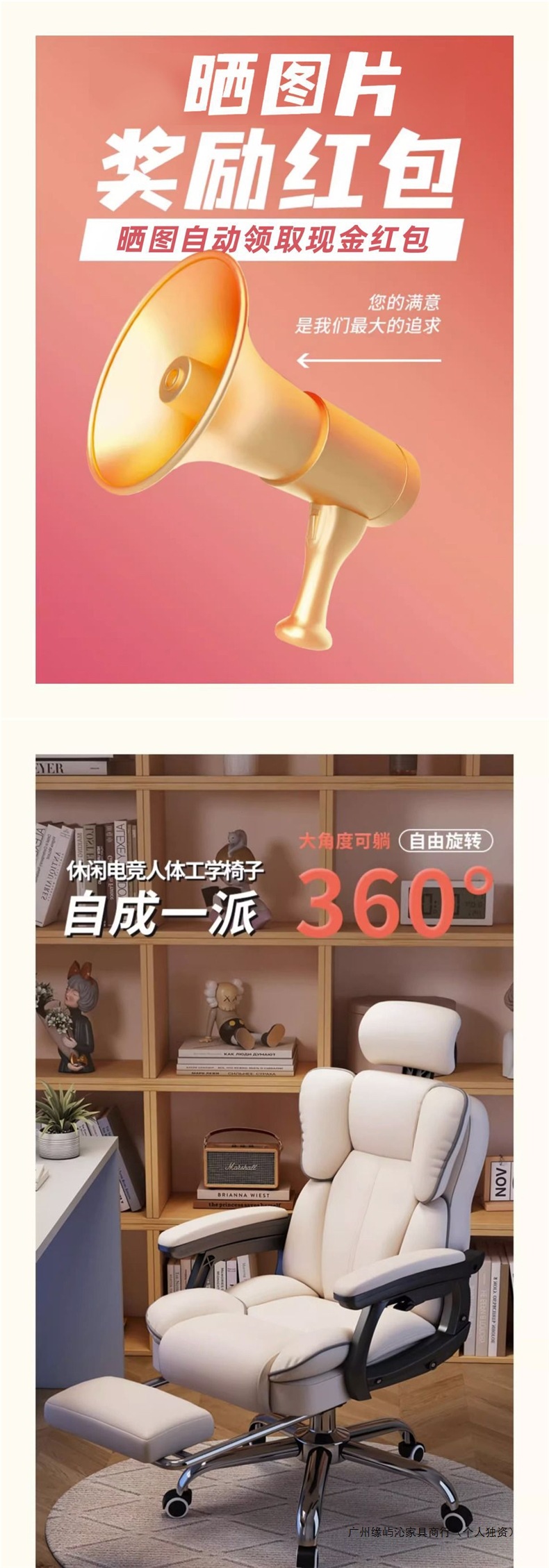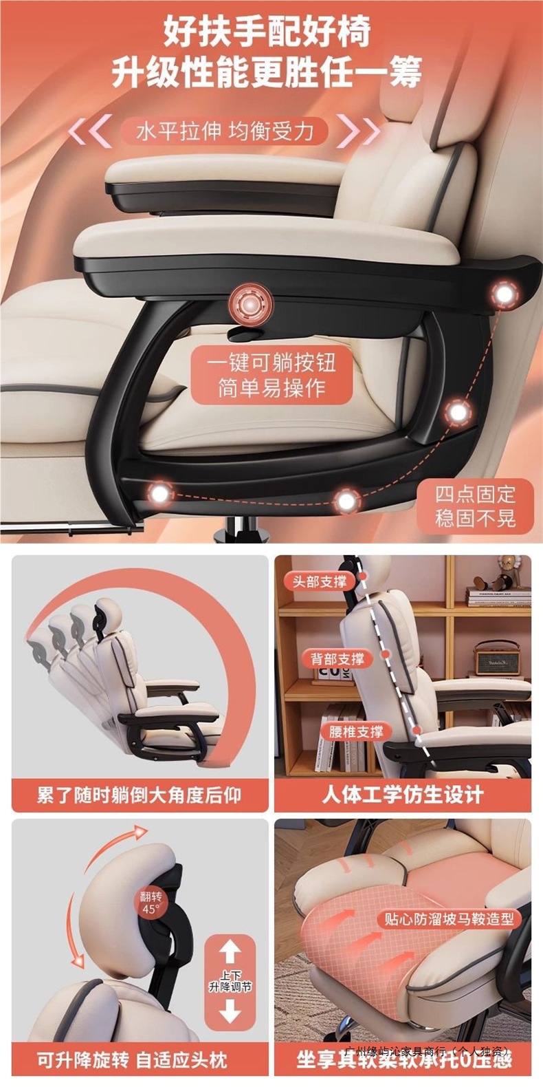 电脑椅家用可躺舒适久坐电竞椅靠背沙发椅子书桌宿舍直播学习转椅