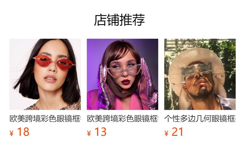新款欧美水钻眼镜框装饰品无镜片个性几何框架眼镜Eyeglass frame