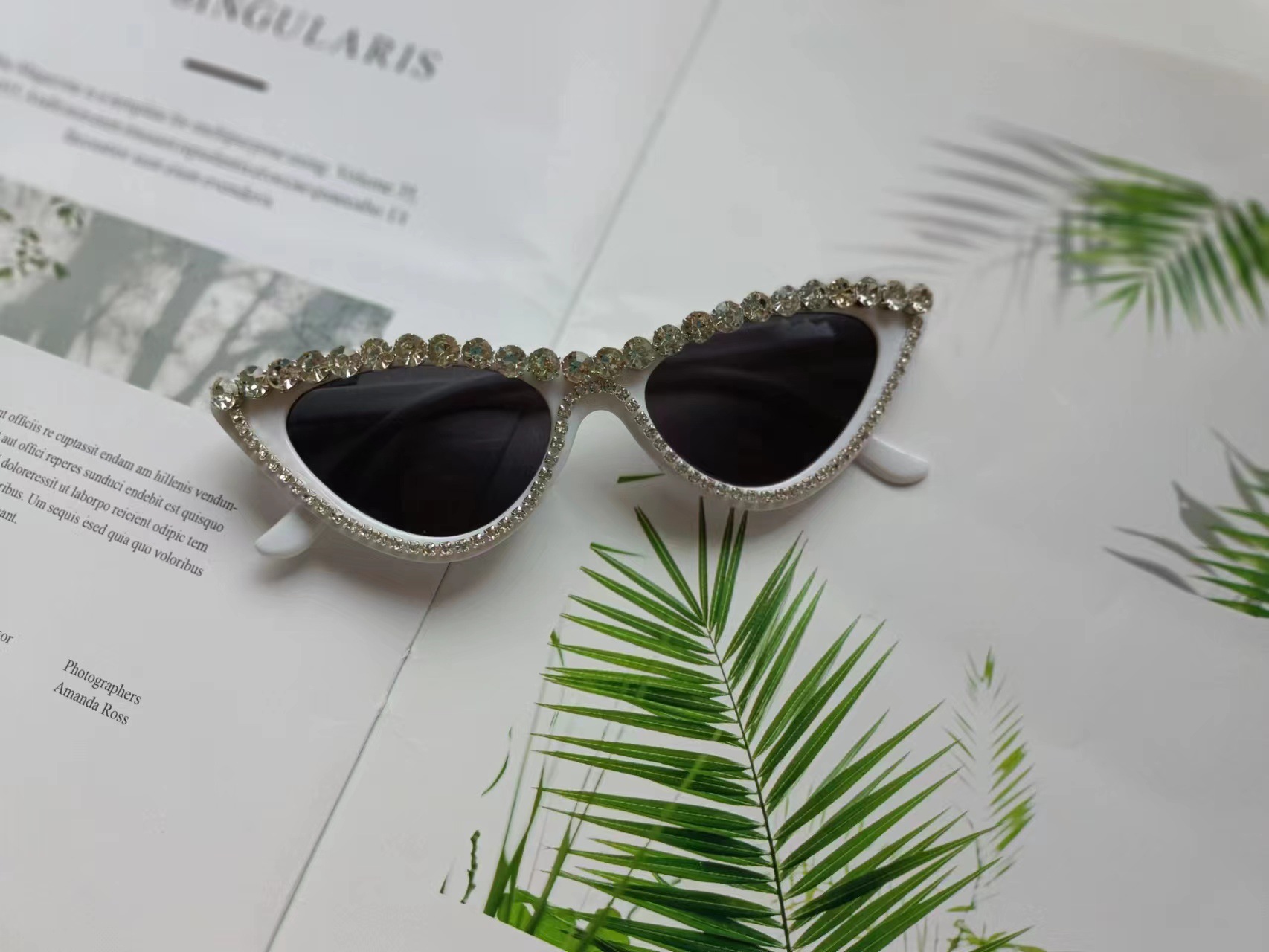 三角眼镜 复古时尚夸张带钻猫眼墨镜跨境猫眼贴钻太阳镜 欧美潮款