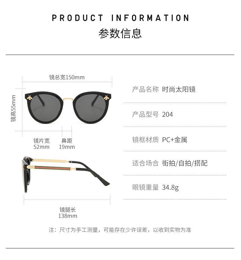 2022新款小蜜蜂太阳镜女士欧美时尚潮流三色墨镜网红同款太阳眼镜