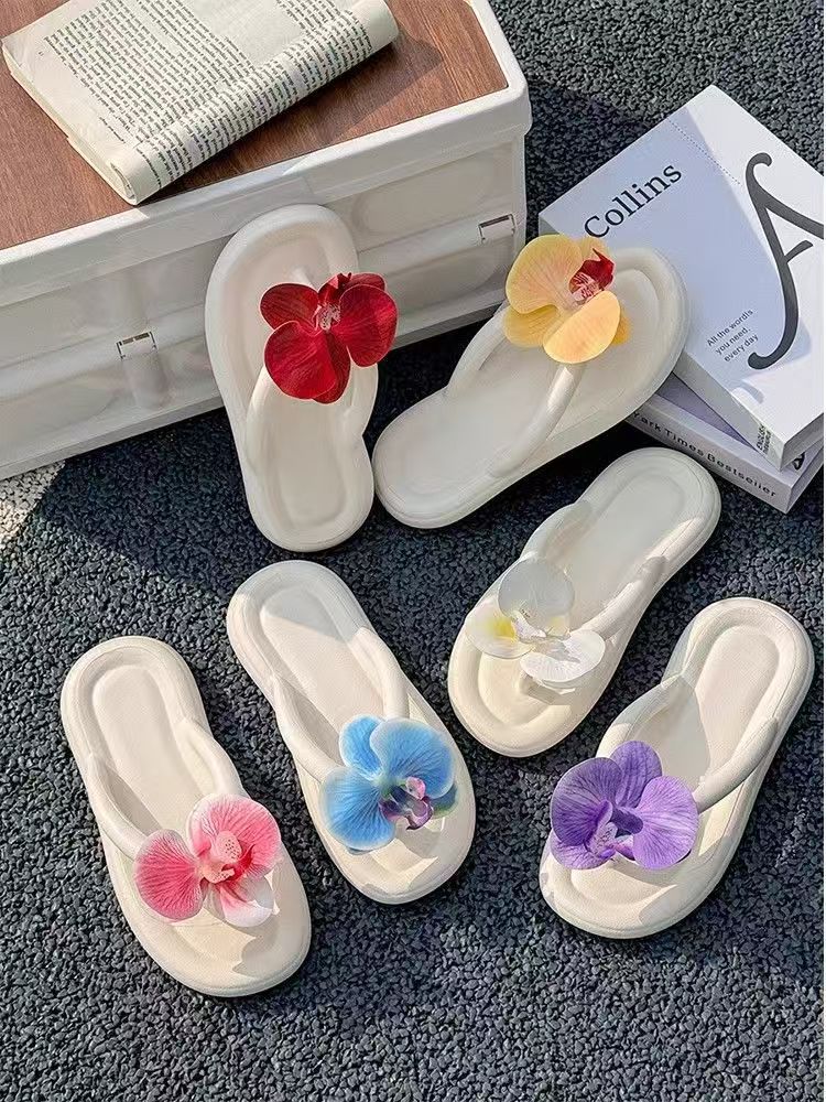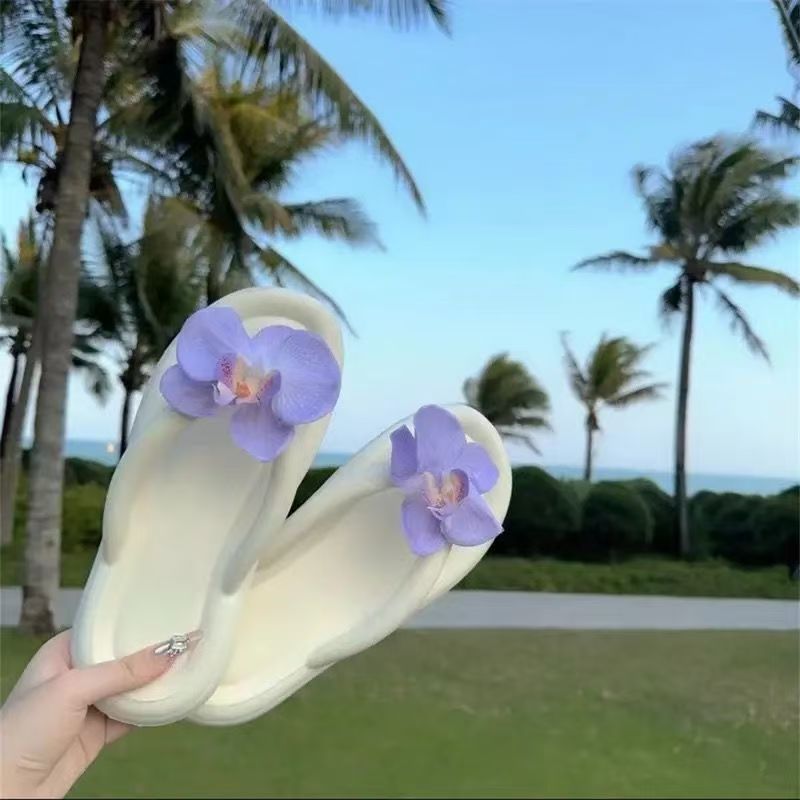 eva新款夏季时尚蝴蝶兰人字拖女外穿防滑夹脚沙滩海边平底拖鞋女
