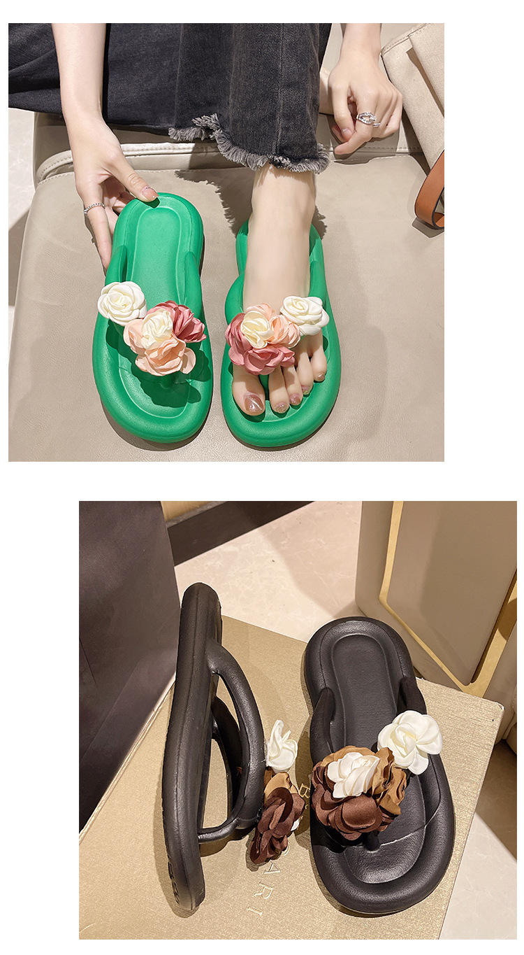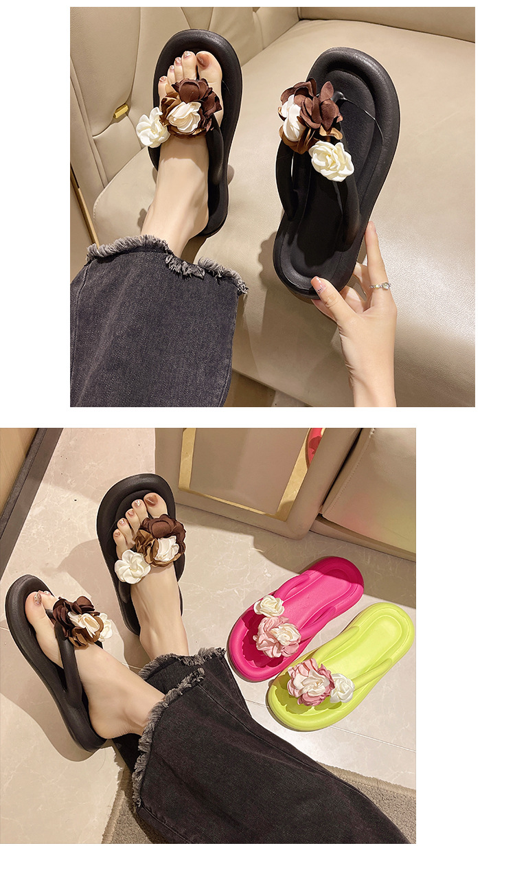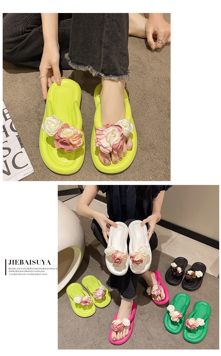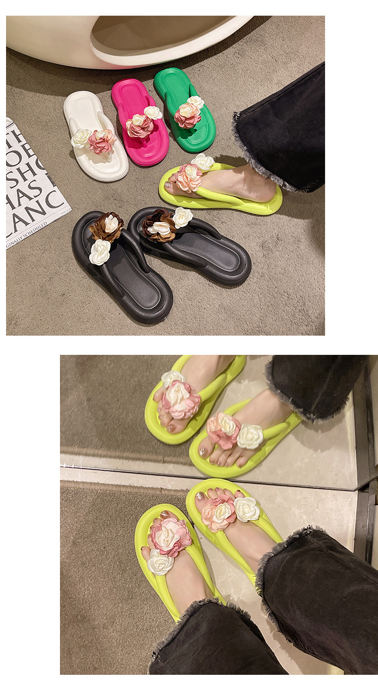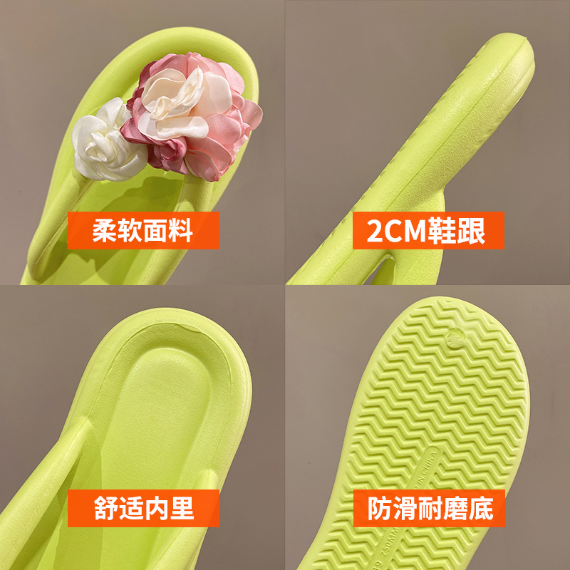 可爱夏季防滑拖鞋 时尚花朵人字拖鞋女 外穿防滑厚底沙滩凉拖鞋女