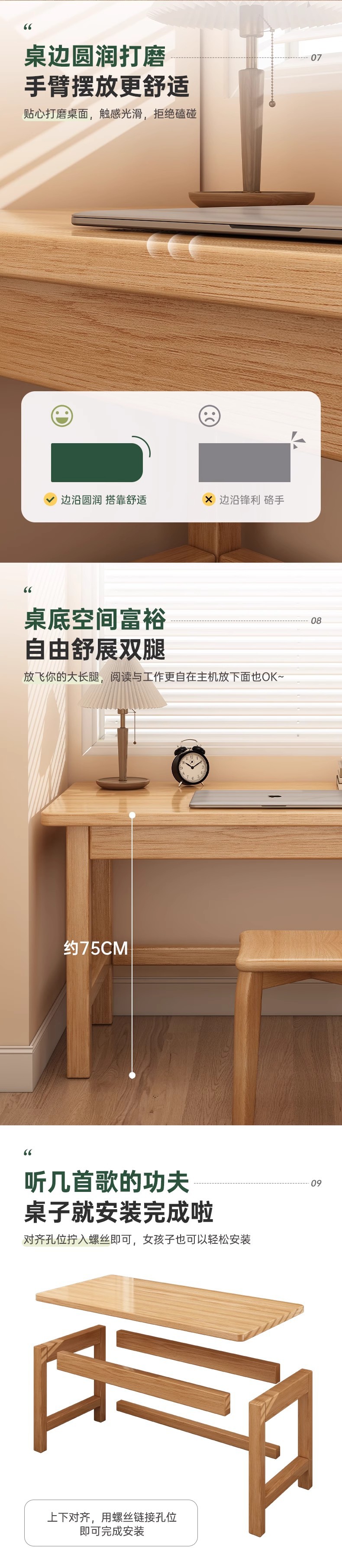 实木书桌成人家用工作台桌子简易卧室电脑桌学习写字桌书房办公桌