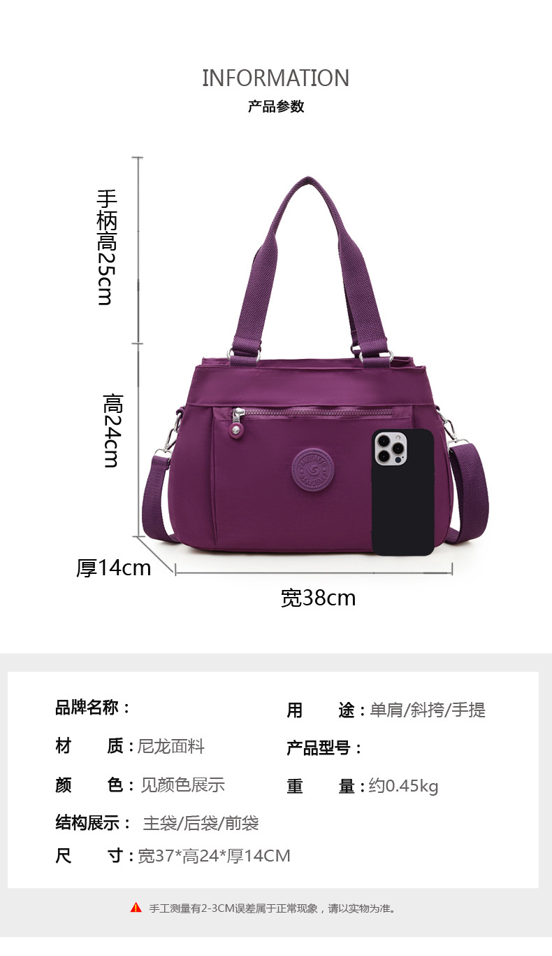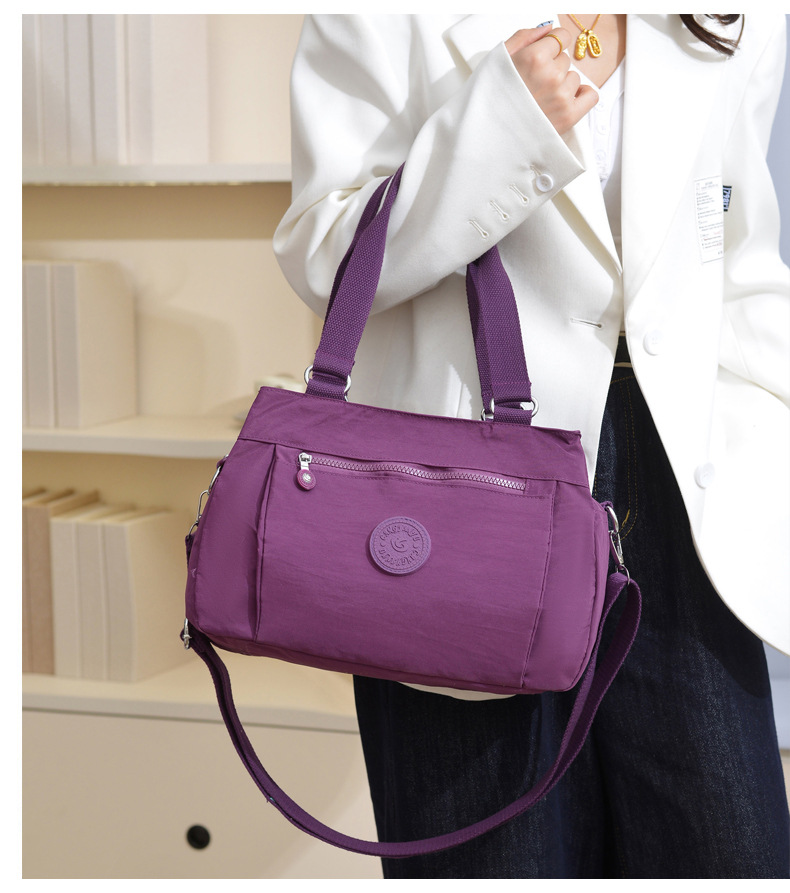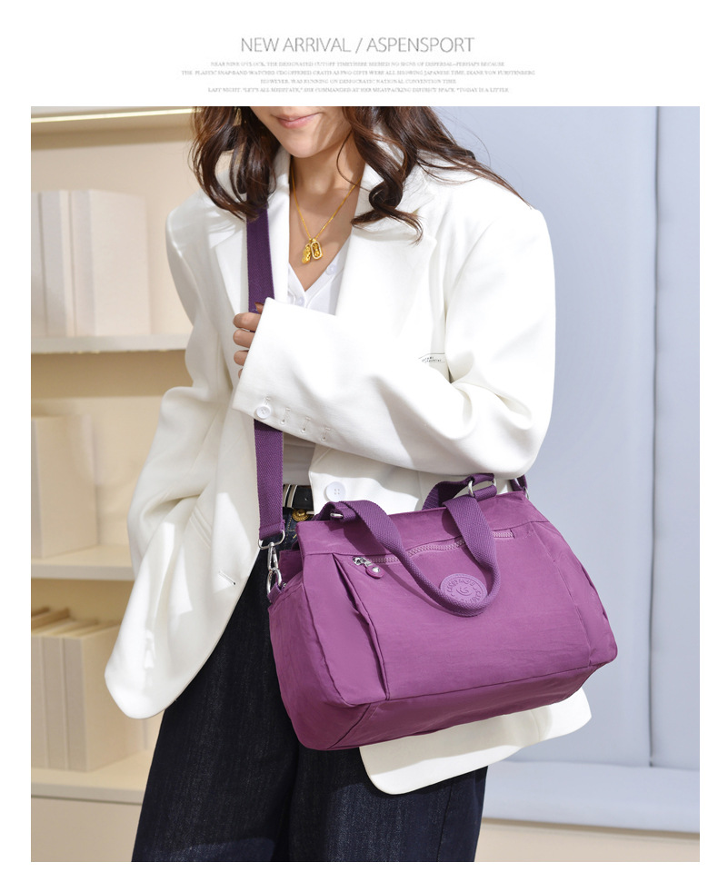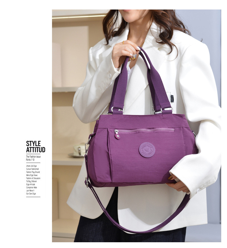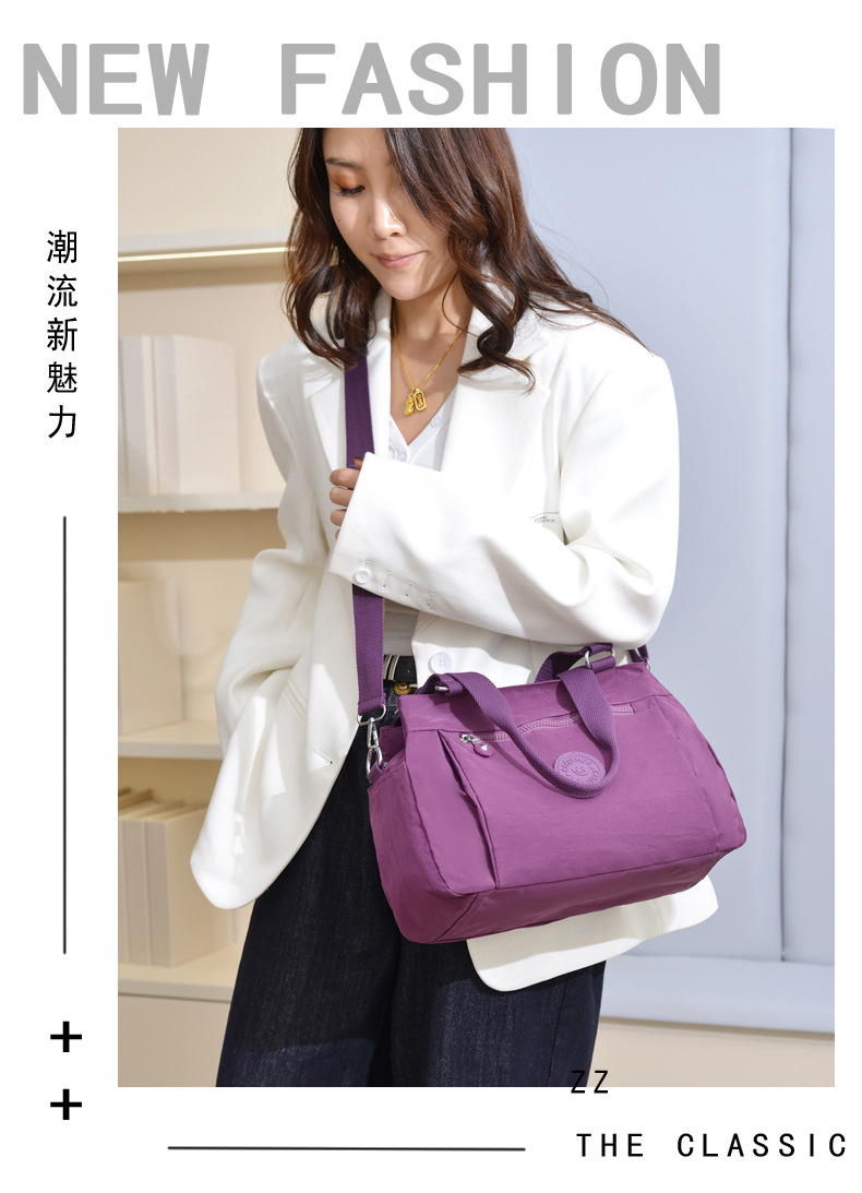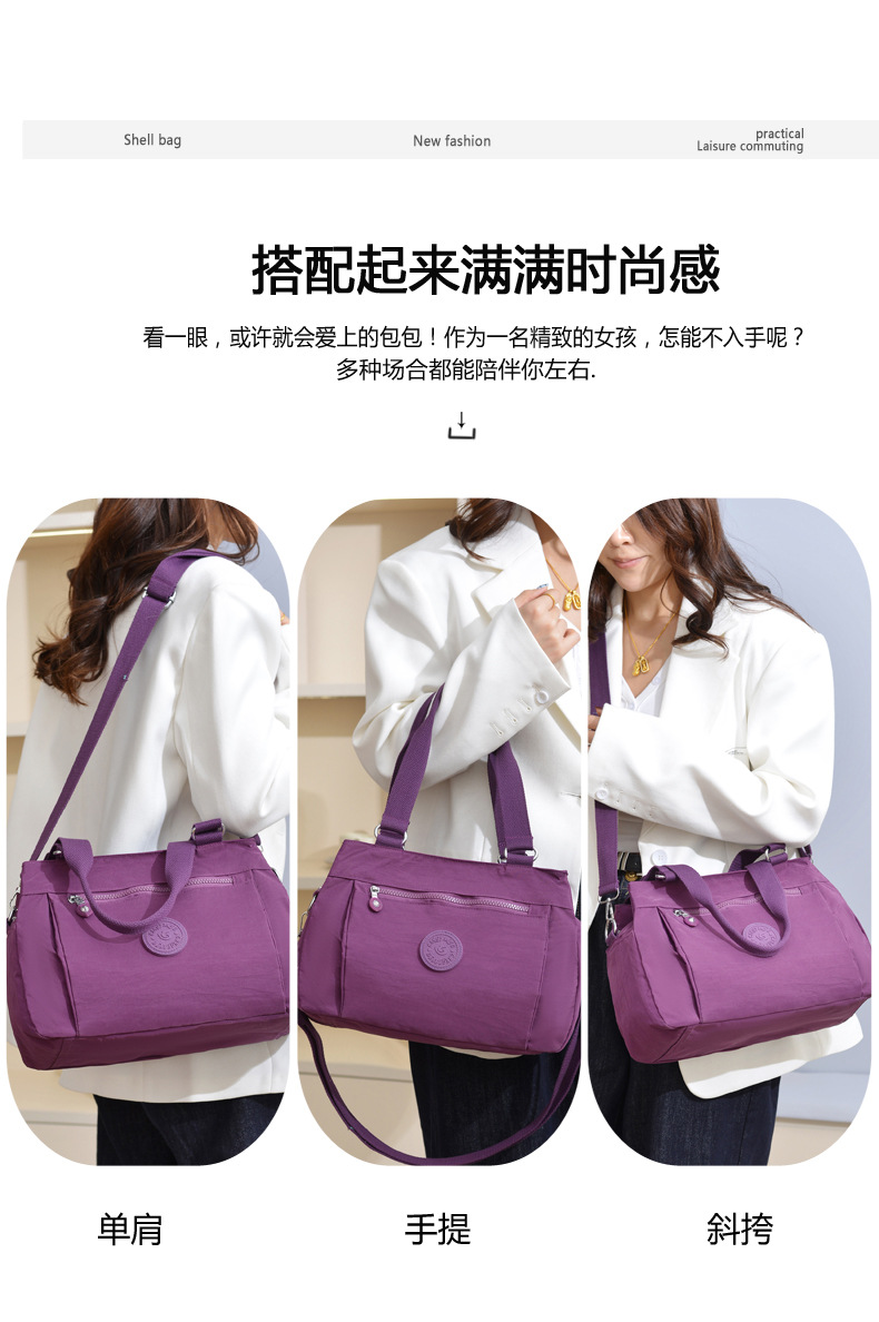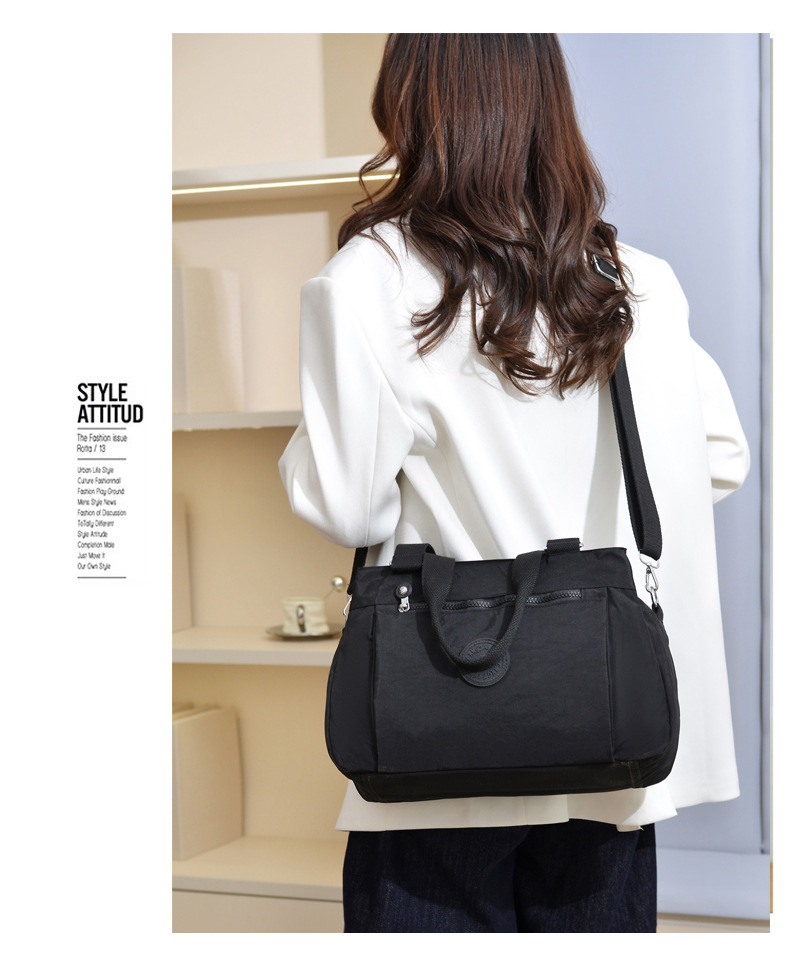 单肩包2025新款都市简约百搭尼龙布女大容量斜挎手提通勤包托特包