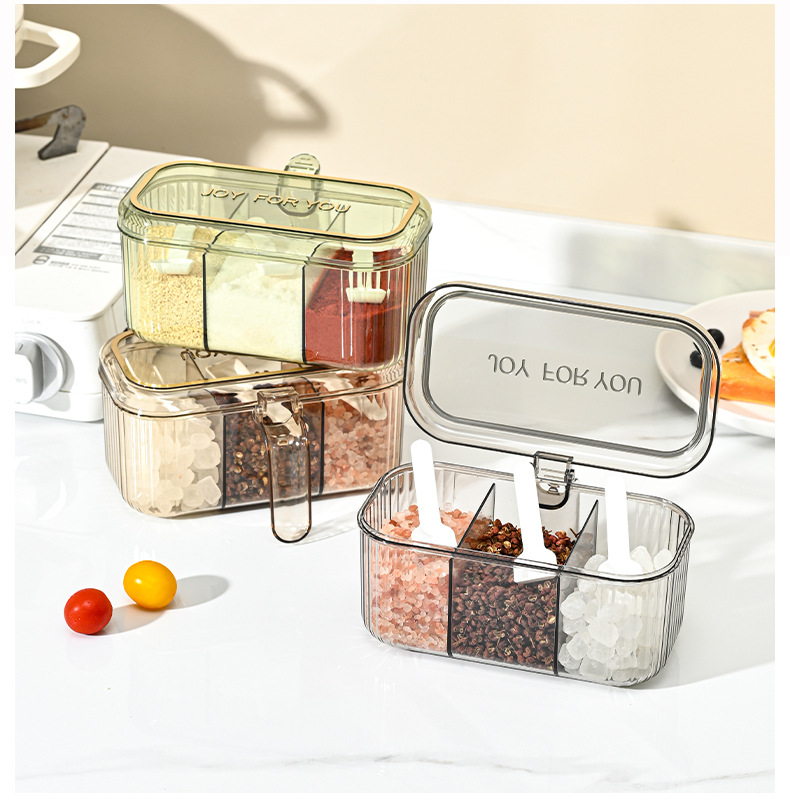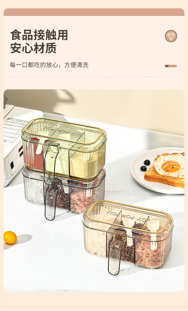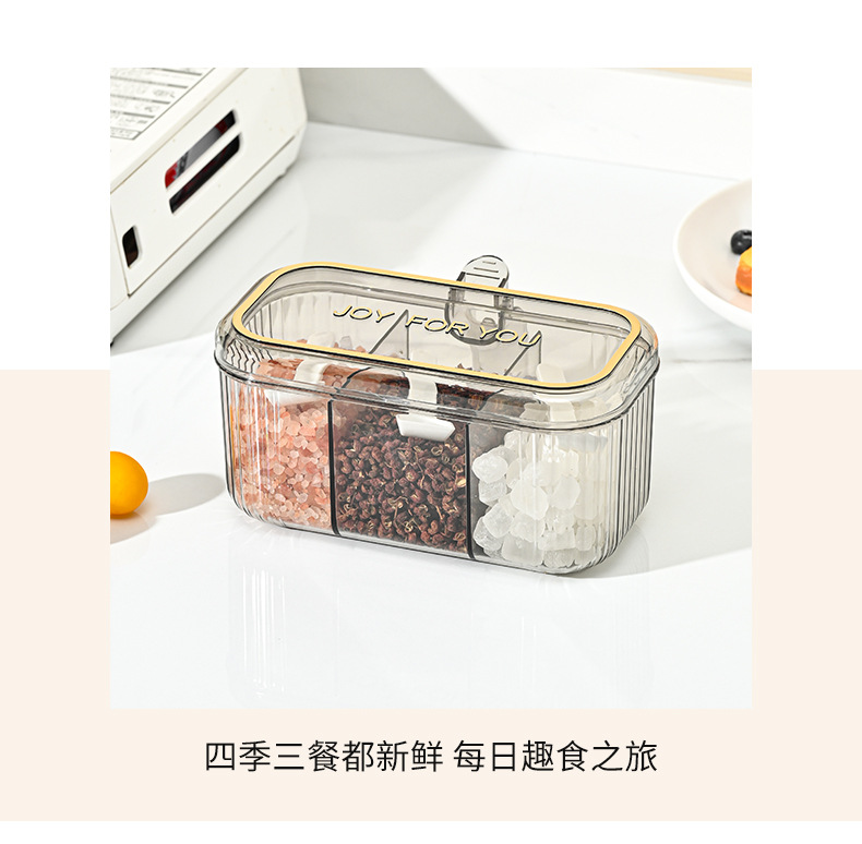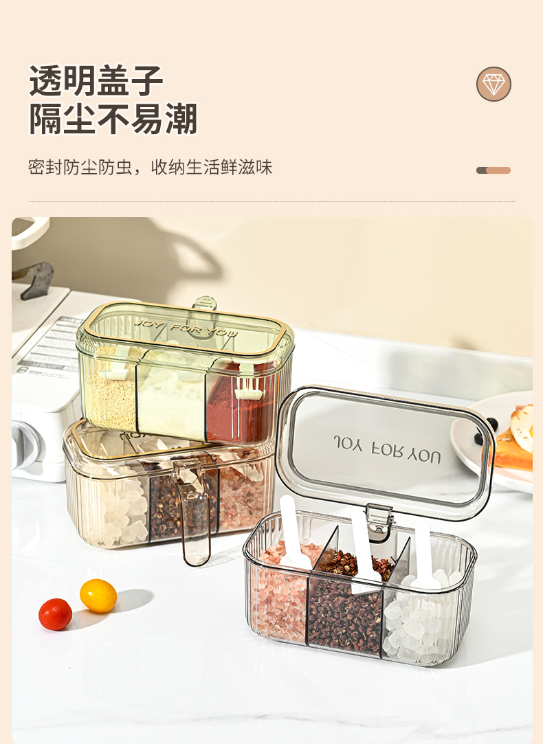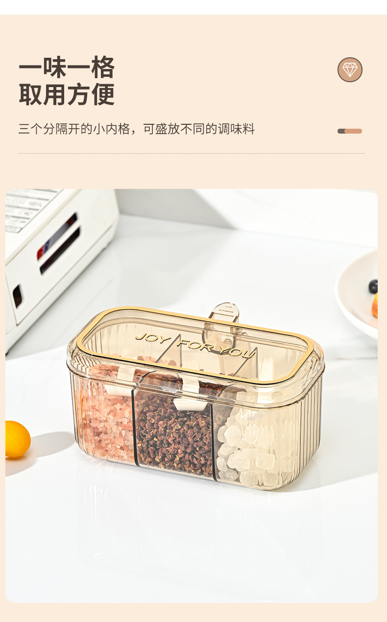 家用小清新分格盐味精鸡精佐料调料盒厨房三格调味盒有盖不串味