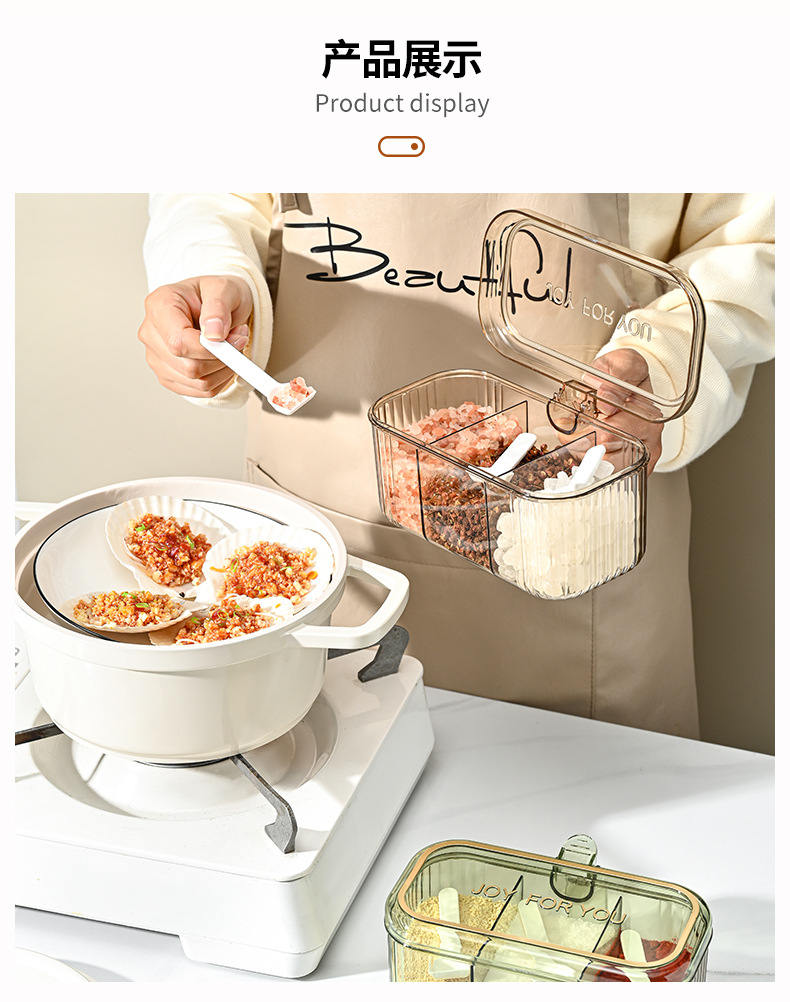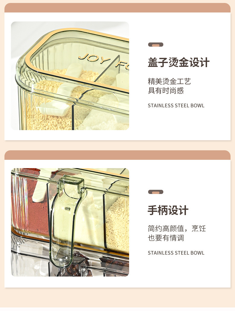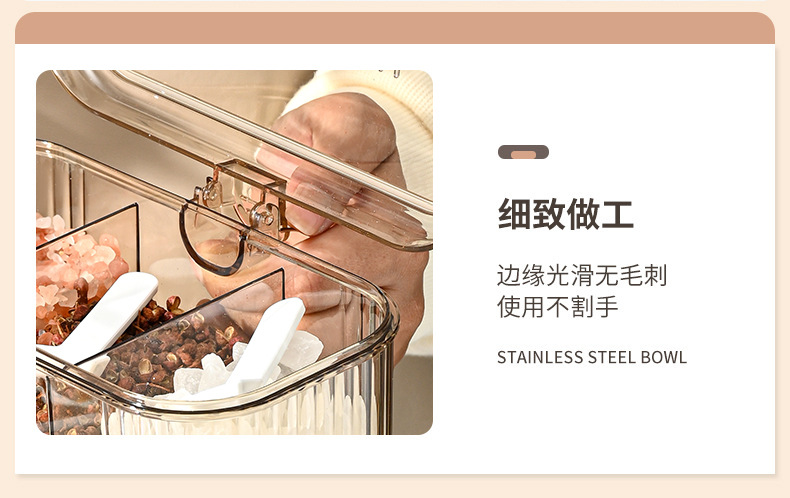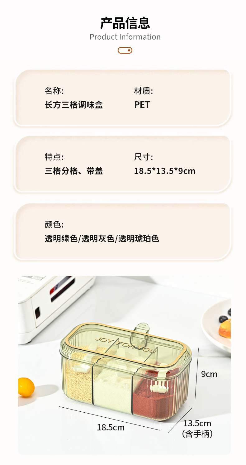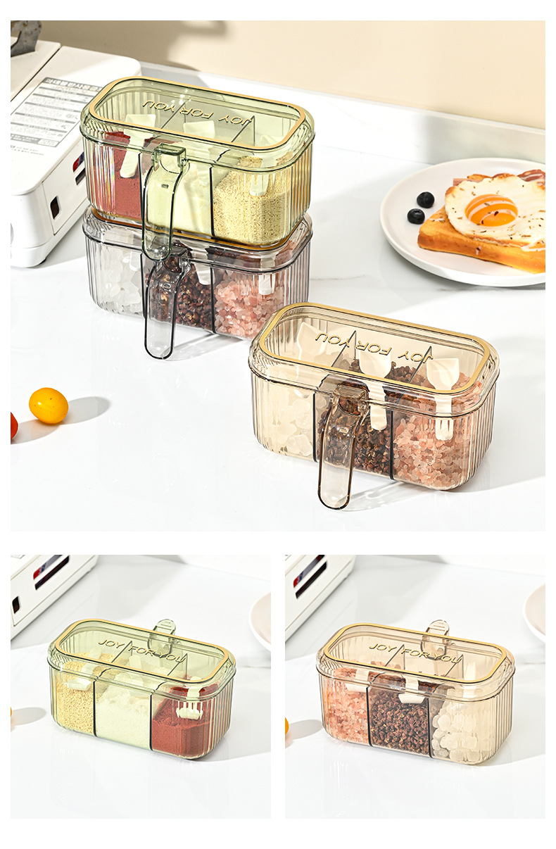 家用小清新分格盐味精鸡精佐料调料盒厨房三格调味盒有盖不串味