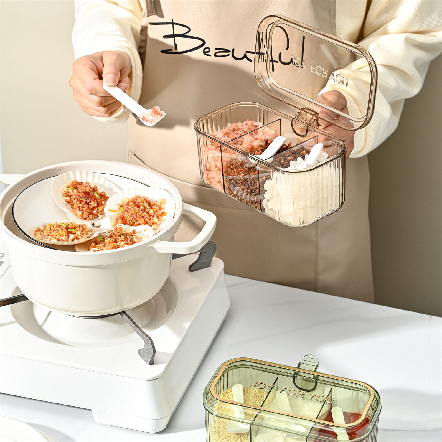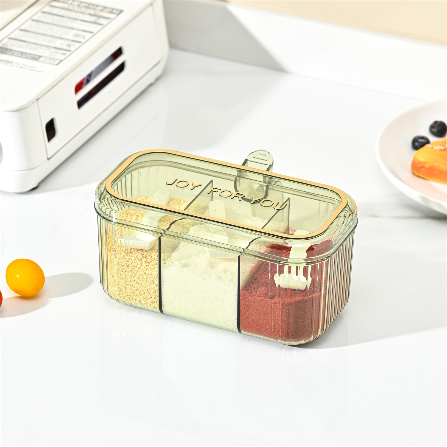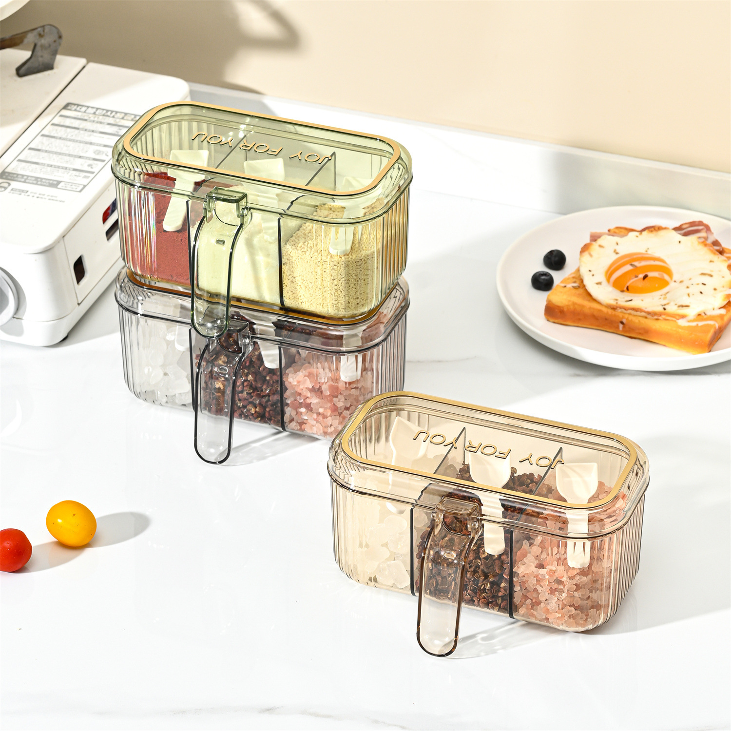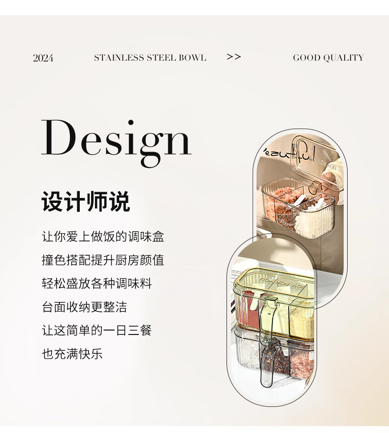 家用小清新分格盐味精鸡精佐料调料盒厨房三格调味盒有盖不串味