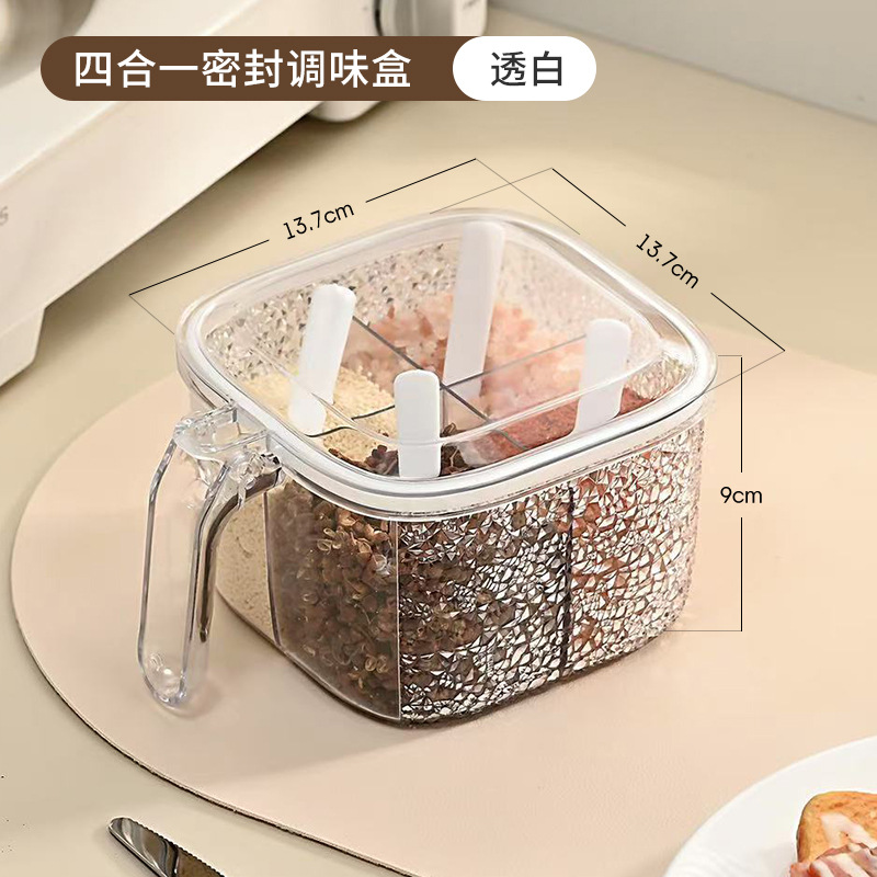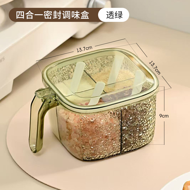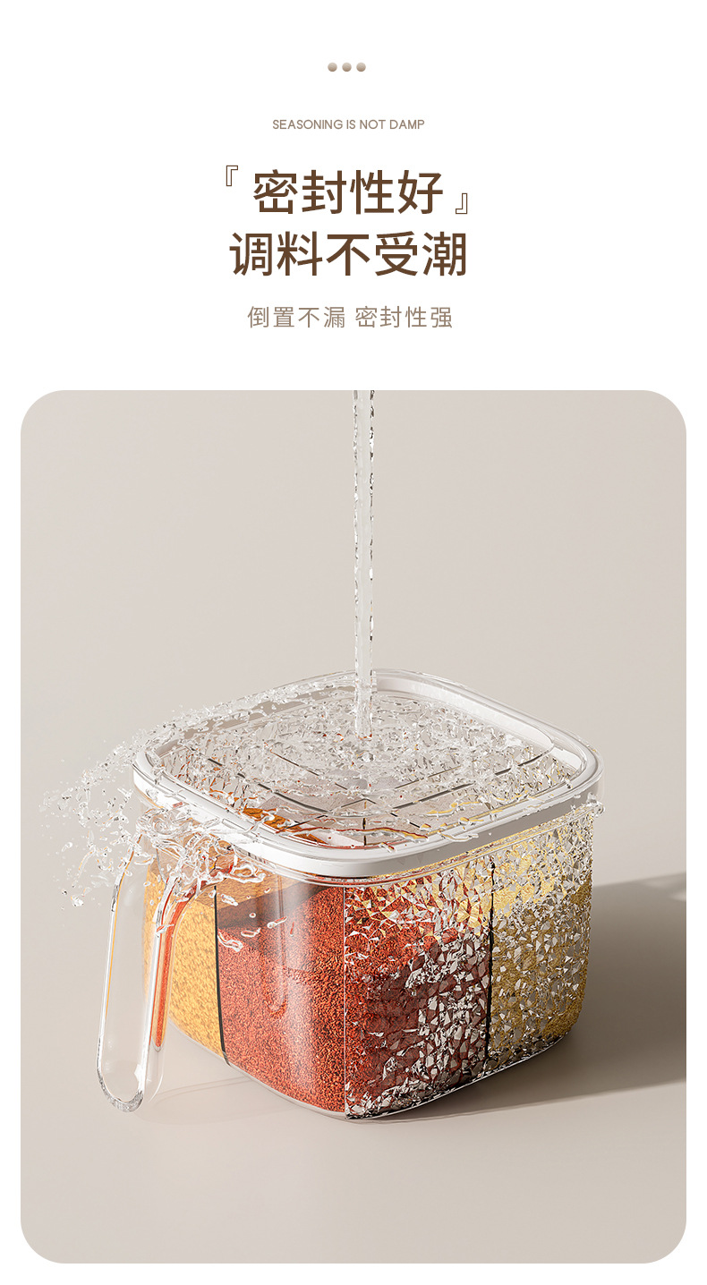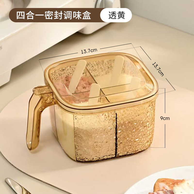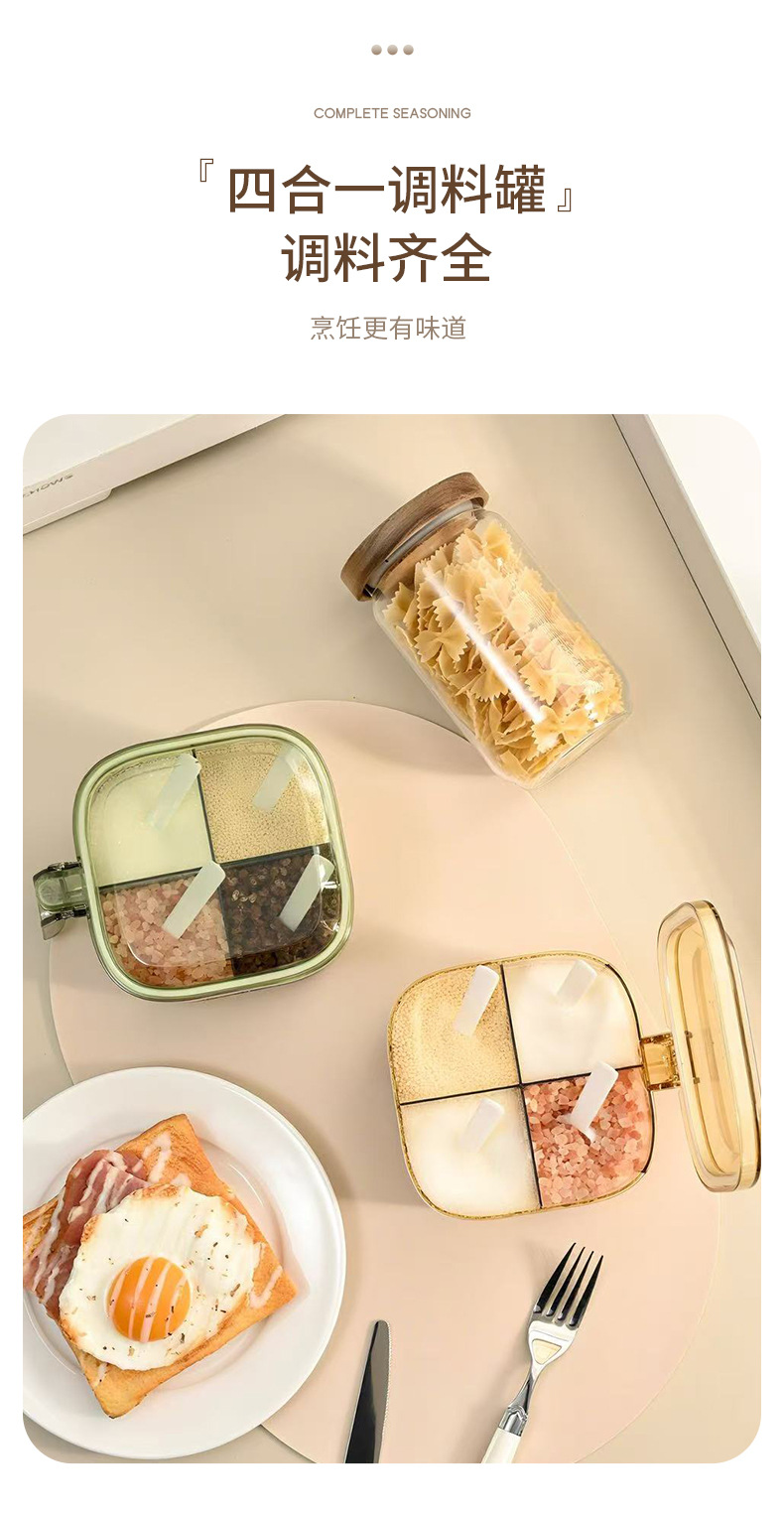 套装四合一盐调味罐调料盒家用厨房高端防潮湿调料罐一体多格组合