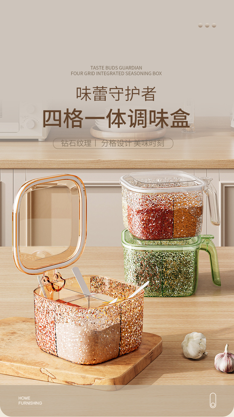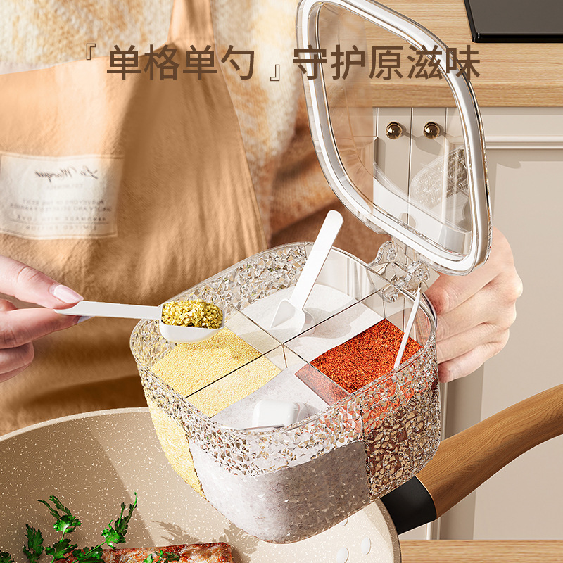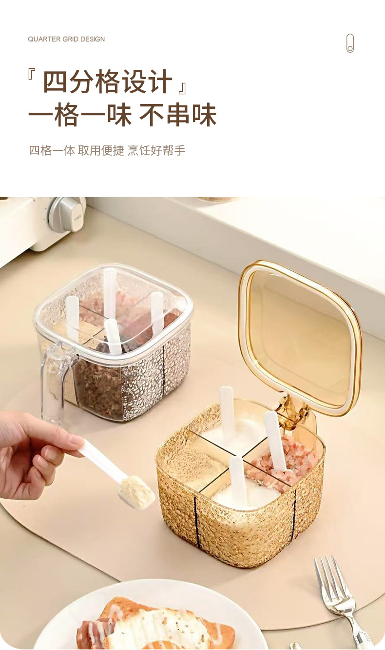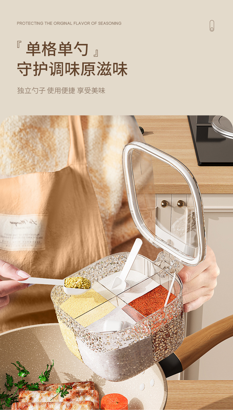 套装四合一盐调味罐调料盒家用厨房高端防潮湿调料罐一体多格组合