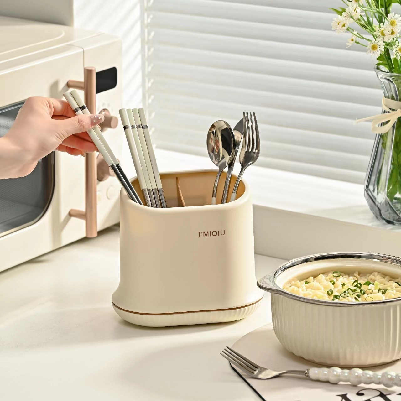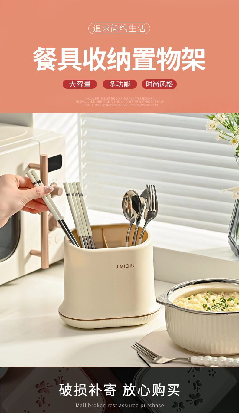 奶油ins风厨房多功能筷子筒家用可拆卸桌面刀叉勺餐具收纳置物架